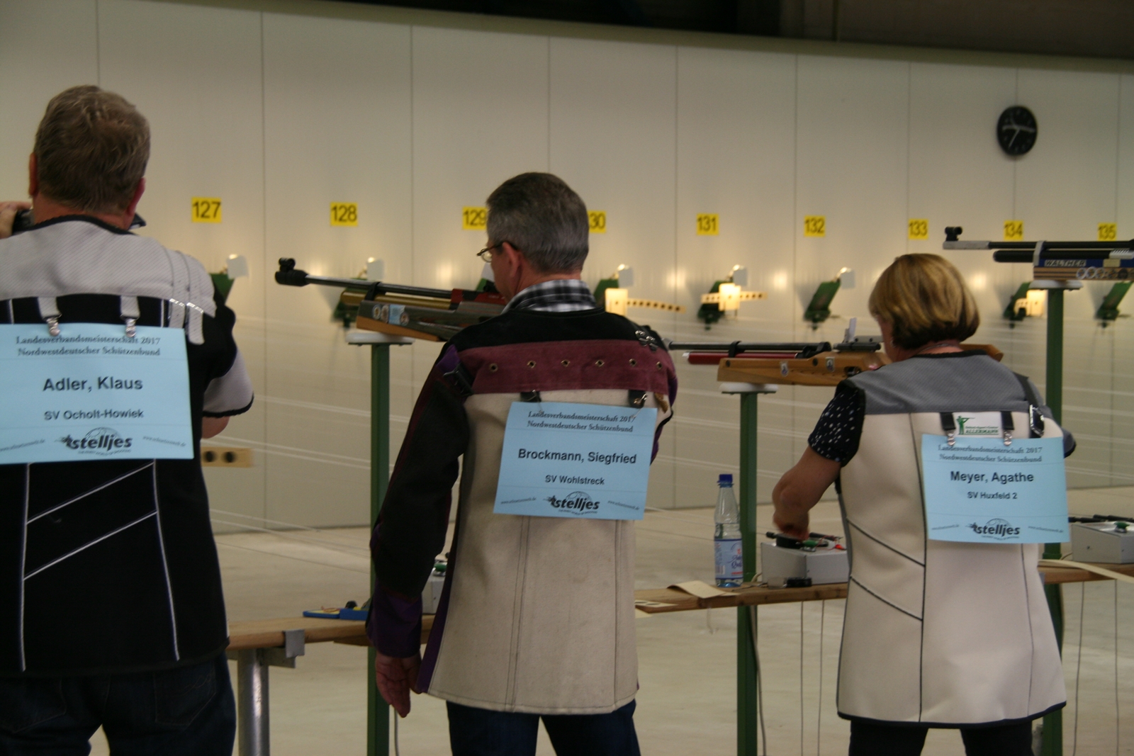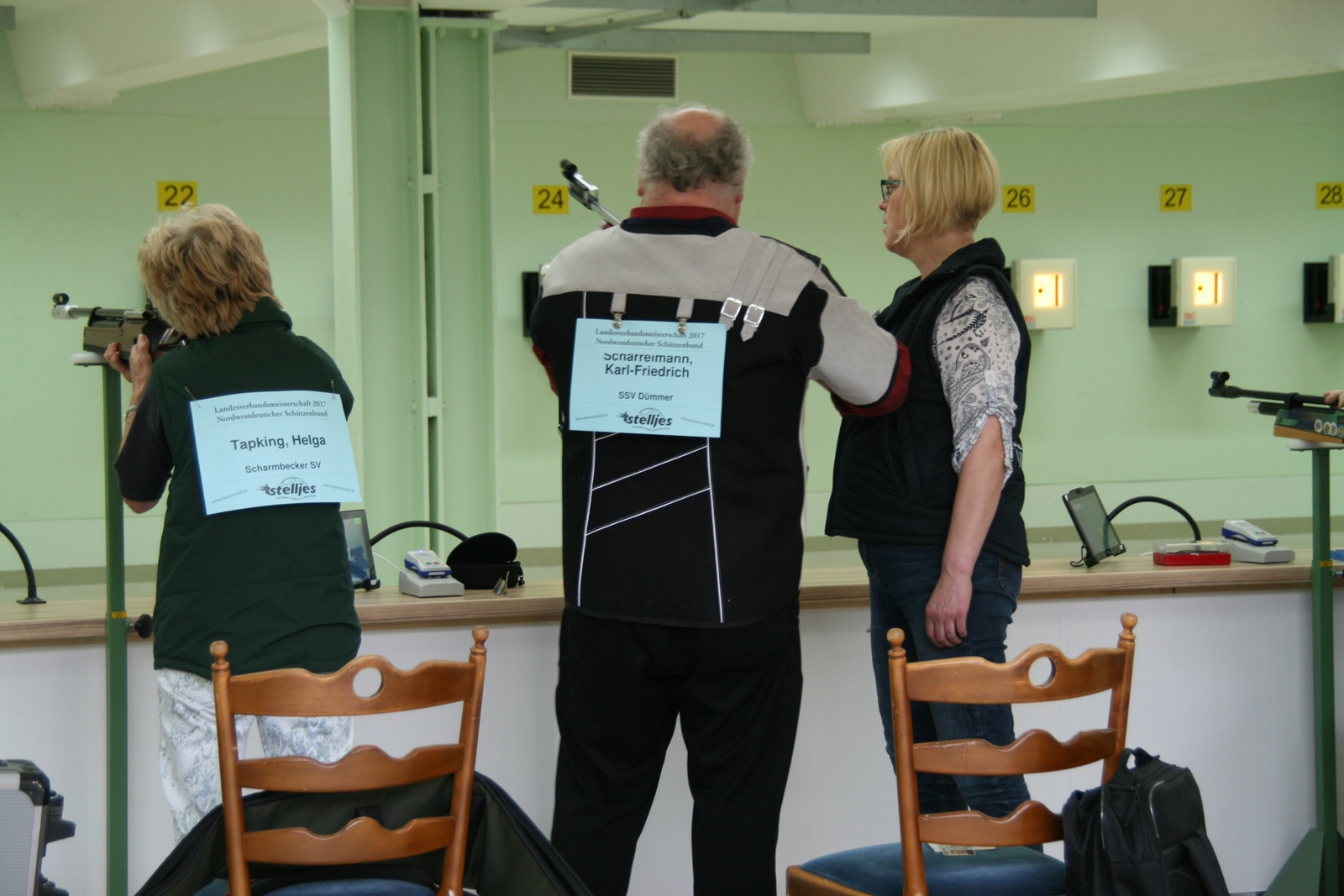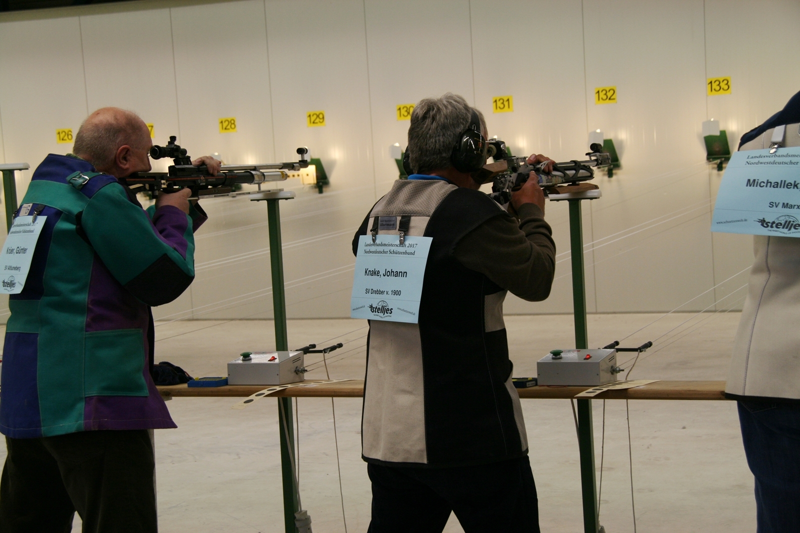 An der Disziplin Luftpistole Auflage in der Seniorenklasse A nahmen Uwe Luzniack und Wolfgang Schlötel von der SSV Dümmer teil. Uwe erzielte 287,4 Ringe, der 11. Platz wurde es, Wolfgang war mit 270,7 Ringen auf Rang 25 "dabei" von 27 Teilnehmern. Bei den Senioren B wurde Hermann Winkelmann-Bünte vom SV Rehden mit 289,6 Ringen 9. von 28 Teilnehmern.