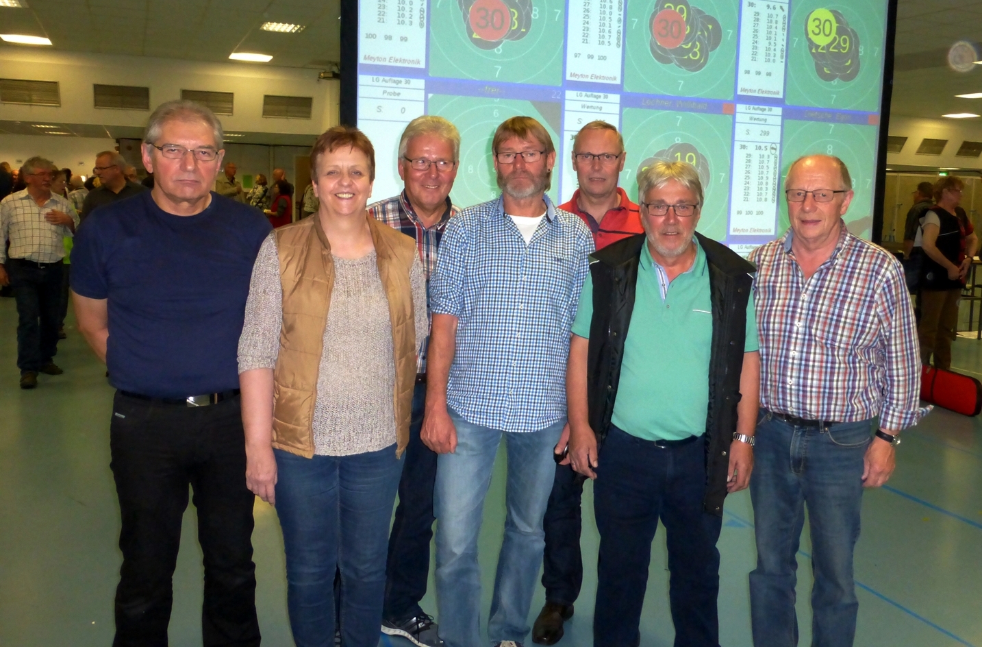 Hier die "Sonntagsschützen": Herbert Vordohre, Rosemarie Fortmann, Betreuer "Kalle" Brandt, Uwe Bergmann, Jürgen Harzmeier, Johann Knake, und Helmut Riedemann.