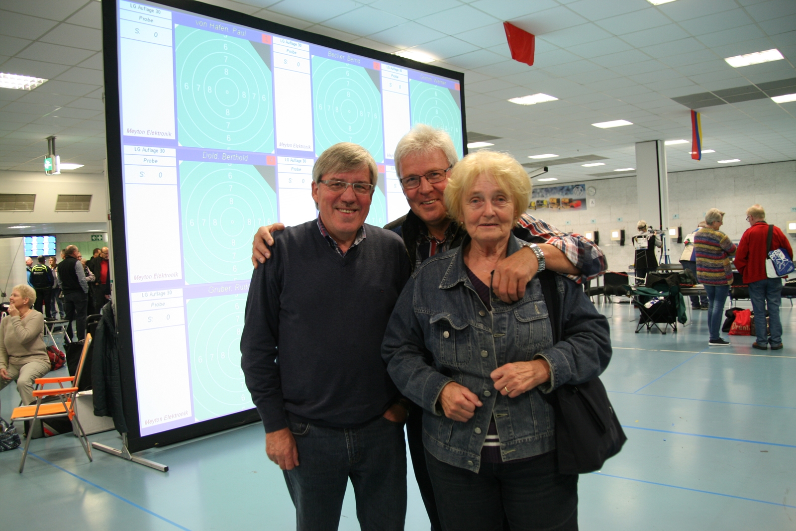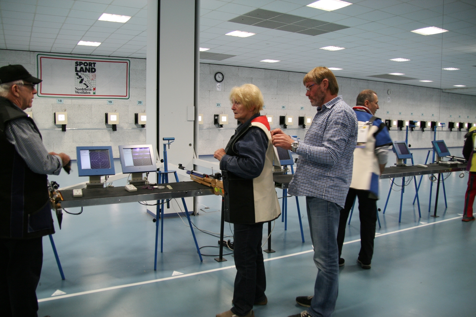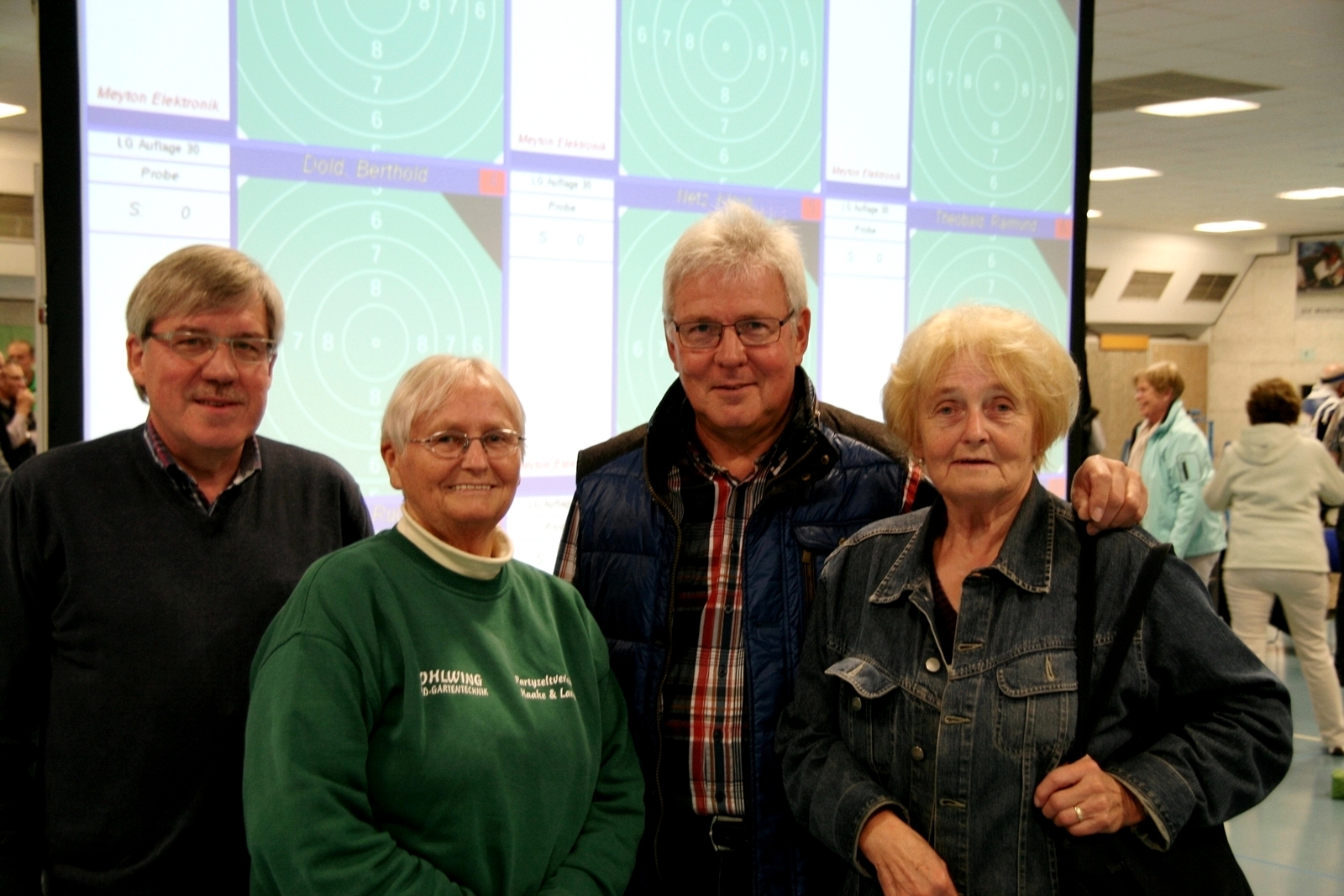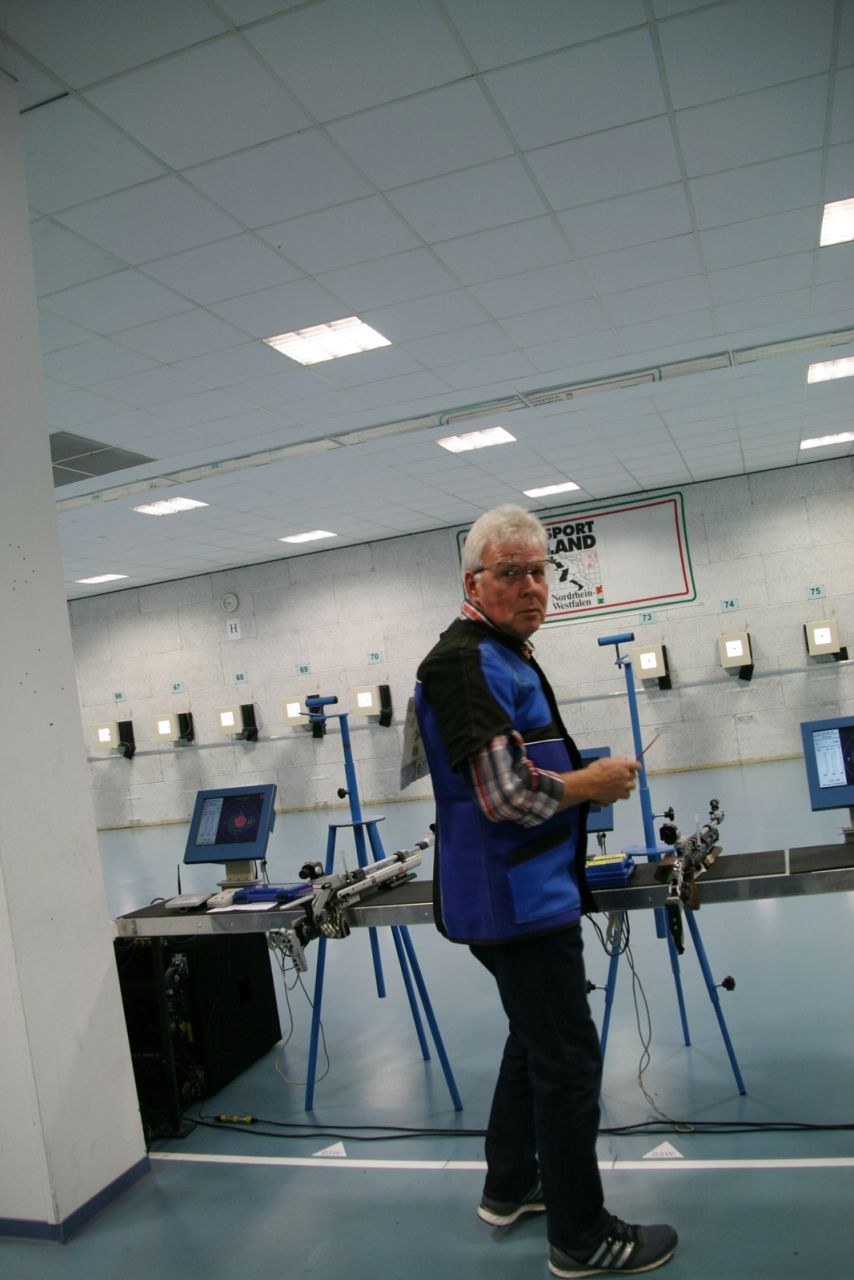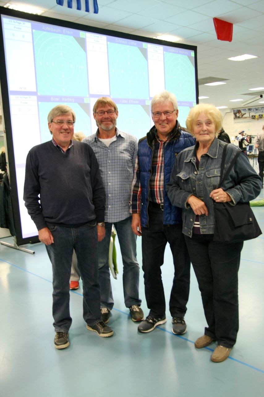 Inge Lübbers, Karl-Heinz Brandt, Hermann Winkelmann-Bünte und Marianne Vallan waren die ersten Starter am Samstagmittag, Gisela Pick und Gerlinde Ahlers hatten ihren Start um 16:10 Uhr. Inge Lübbers wurde von Uwe Bergmann betreut und sie nahm seine Ratschläge gern an. Mit den Serien 97, 100 und 98 kam sie auf hervorragende 295 Ringe und reihte sich unter 81 Teilnehmerinnen in der Seniorenklasse C auf Rang 34 ein. Glückwunsch Inge! Zur gleichen Zeit schossen Karl-Heinz Brandt und Hermann Winkelmann-Bünte in Seniorenklasse B. „Kalle“ Brandt war mit den ersten beiden 100ter Serien gut im Rennen, aber in der letzten Serie hatten sich plötzlich zwei Neunen „eingeschlichen“, natürlich war er darüber nicht erfreut. So kam er mit 298 Ring auf Platz 77 von 297 Teilnehmern. Hermann Winkelmann-Bünte hätte auch gern mehr als 293 Ringe gehabt, so nahm er am Ende Rang 242 ein. In der Mannschaftswertung hatten sie 886 Ringe, wurden damit 62. von 117 Mannschaften. Marianne Vallan kam mit den Serien 94, 95 und 97 auf 286 Ring, sie hatte sich eigentlich eine „9“ in der Mitte gewünscht, aber es gibt ja im nächsten Jahr wieder die Gelegenheit sich bei der Landesverbandsmeisterschaft für „Dortmund“ zu qualifizieren.