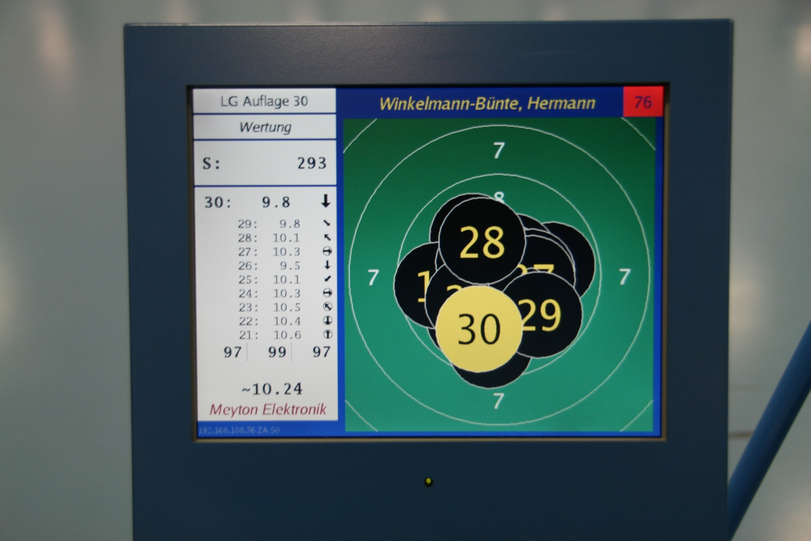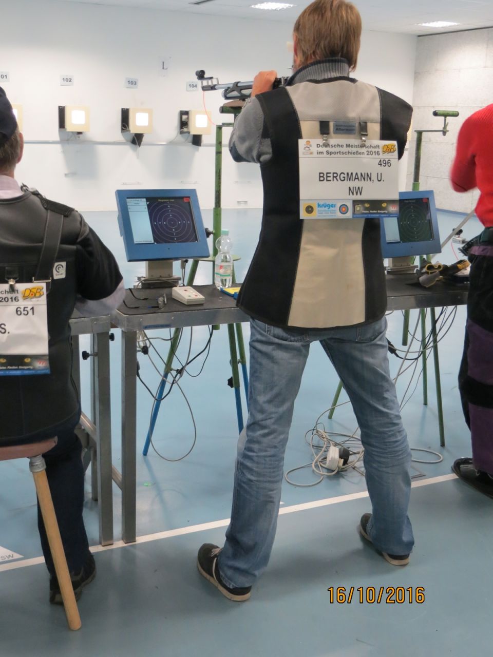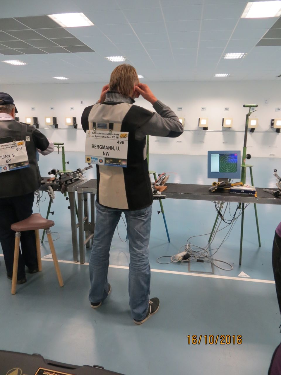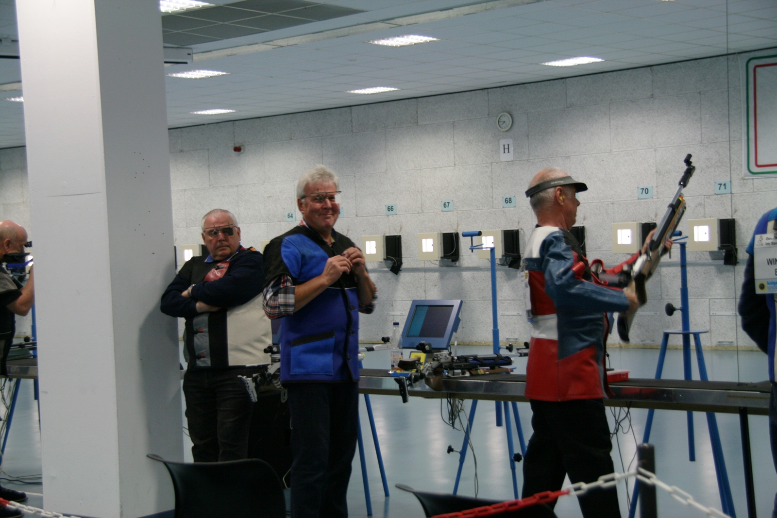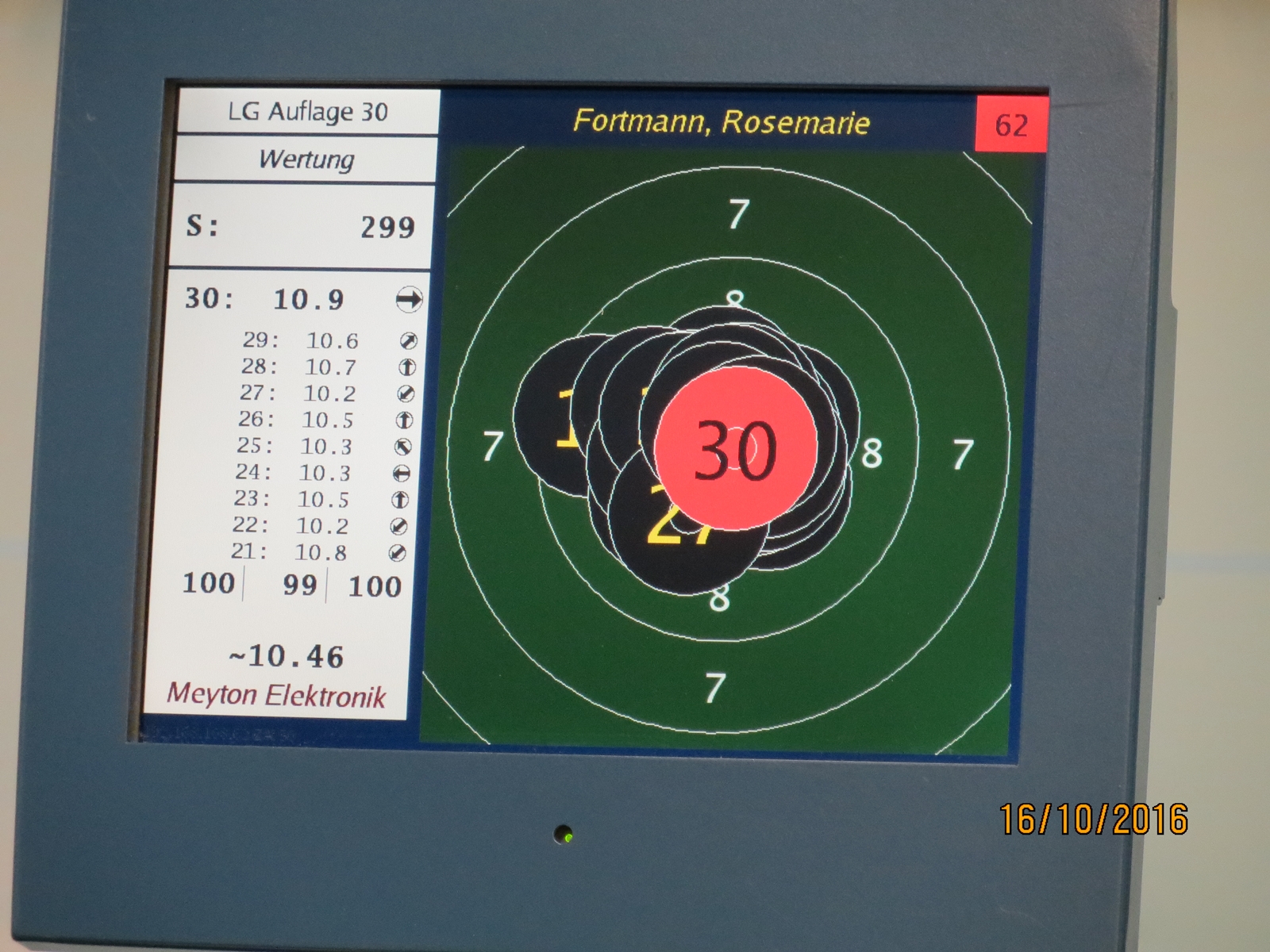 Inge Lübbers, Karl-Heinz Brandt, Hermann Winkelmann-Bünte und Marianne Vallan waren die ersten Starter am Samstagmittag, Gisela Pick und Gerlinde Ahlers hatten ihren Start um 16:10 Uhr. Inge Lübbers wurde von Uwe Bergmann betreut und sie nahm seine Ratschläge gern an. Mit den Serien 97, 100 und 98 kam sie auf hervorragende 295 Ringe und reihte sich unter 81 Teilnehmerinnen in der Seniorenklasse C auf Rang 34 ein. Glückwunsch Inge! Zur gleichen Zeit schossen Karl-Heinz Brandt und Hermann Winkelmann-Bünte in Seniorenklasse B. „Kalle“ Brandt war mit den ersten beiden 100ter Serien gut im Rennen, aber in der letzten Serie hatten sich plötzlich zwei Neunen „eingeschlichen“, natürlich war er darüber nicht erfreut. So kam er mit 298 Ring auf Platz 77 von 297 Teilnehmern. Hermann Winkelmann-Bünte hätte auch gern mehr als 293 Ringe gehabt, so nahm er am Ende Rang 242 ein. In der Mannschaftswertung hatten sie 886 Ringe, wurden damit 62. von 117 Mannschaften. Marianne Vallan kam mit den Serien 94, 95 und 97 auf 286 Ring, sie hatte sich eigentlich eine „9“ in der Mitte gewünscht, aber es gibt ja im nächsten Jahr wieder die Gelegenheit sich bei der Landesverbandsmeisterschaft für „Dortmund“ zu qualifizieren.