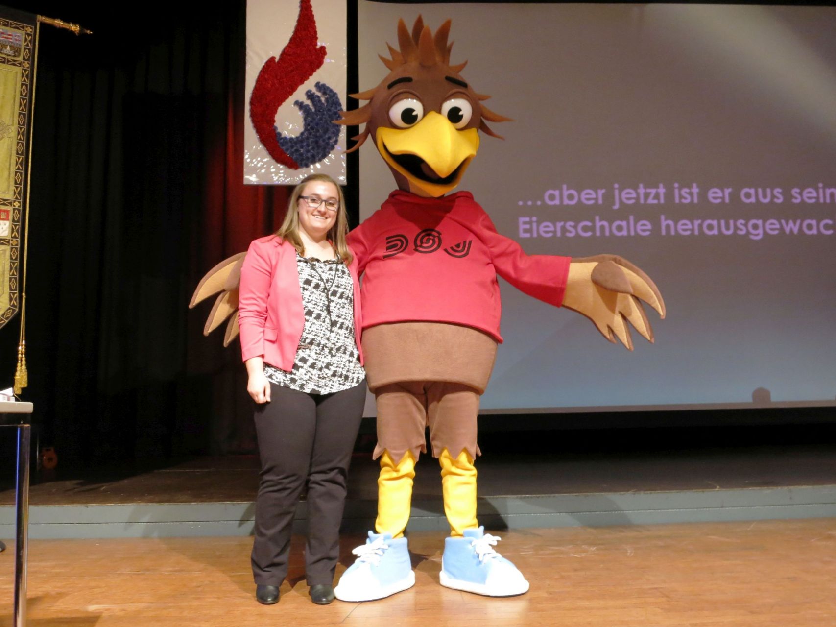 Als vielbeklatschter Beitrag der Deutschen Schützenjugend kam der neue „Shooty“ auf die Bühne. Das Wappentier des Schützennachwuchses, so Bundesjugendsprecherin Carina Sauerwald, sei nun endgültig aus der Eierschale herausgewachsen.