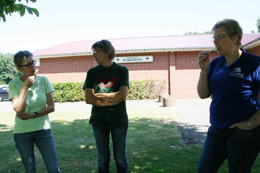 Ursel Vallan vom SV von 1848 Sulingen hätte natürlich auch noch ein paar Ringe mehr gehabt (571), ihr lediertes Handgelenk hat ihr danach weh getan, aber wie das so geht weiß man ja. Karin Husmann kam auch schwer ins "Rennen", nach der 99ger Serie hat ihr Arm "schlapp" gemacht, die Entzündung im Ellenbogen brachte sich wieder "schön" in Erinnerung, 565 Ringe waren da grad so drin. Mein - Marianne Vallan SV von 1848 Sulingen - Ergebnis von 561 Ringe ist auch noch "ausbaufähig", den 4. Platz nahmen wir in der Mannschaftswertung ein.