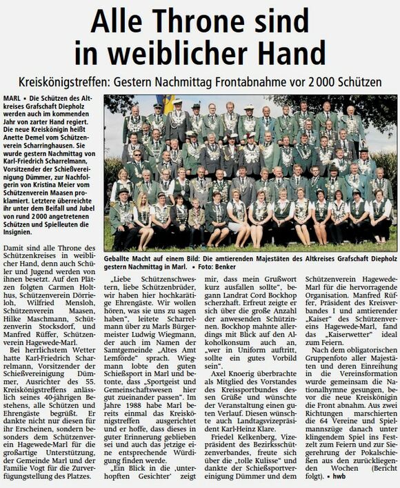 Dieser Bericht der Kreiszeitung macht es deutlich: das Schützenwesen lebt und wird in dieser Form nun schon zum 55. Mal, seit dem 6. Mai 1959 in Sulingen, im Altkreis Grafschaft Diepholz durchgeführt.