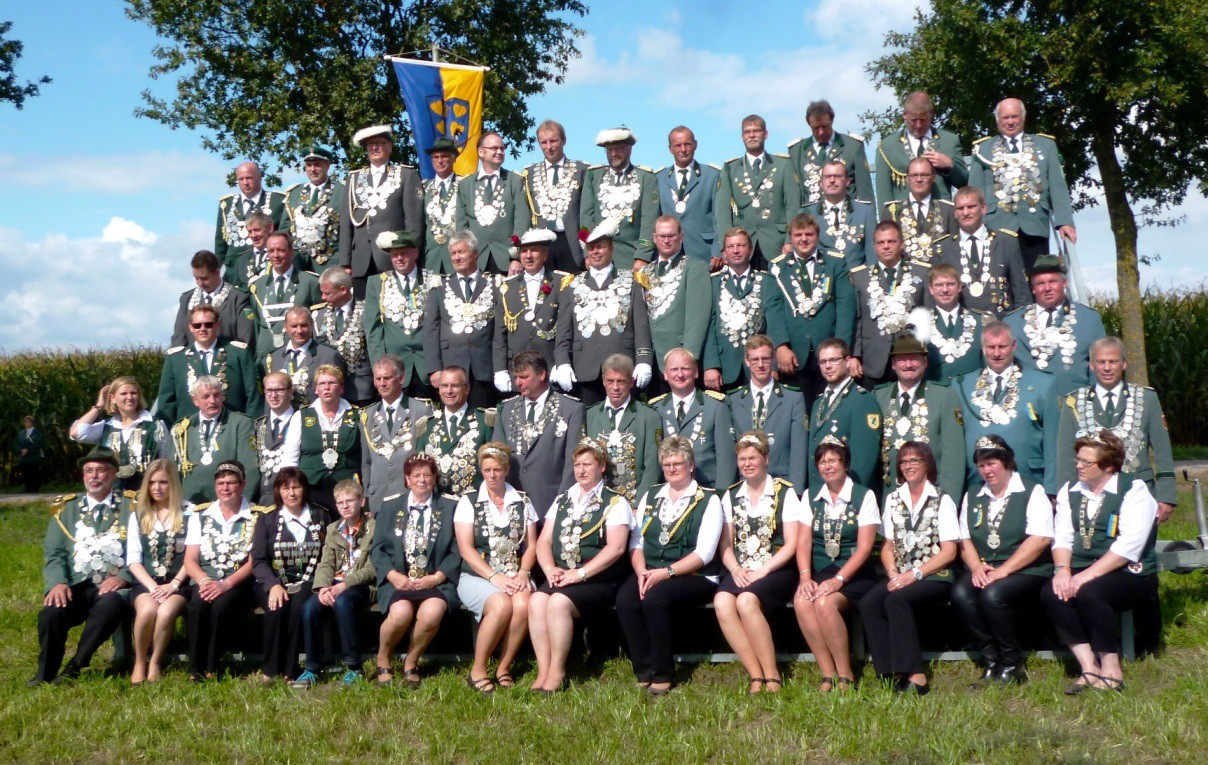 Vor der Proklamation der neuen Kreismajestät, stellten sich 59 Königinnen und Könige auf der Foto-Tribüne auf. (Foto: M.Immoor)