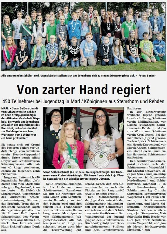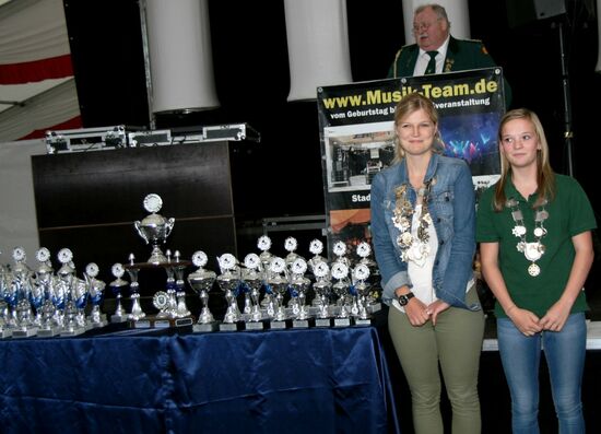 Jugendkönigin Jana Wortmann (SV Gaue) und Schülerkönigin Kira Simon (SV Barenburg), hatten kurz vor der Proklamation der neuen KKT-Majestäten ihren letzten "Auftritt" als KKT-Königinnen.