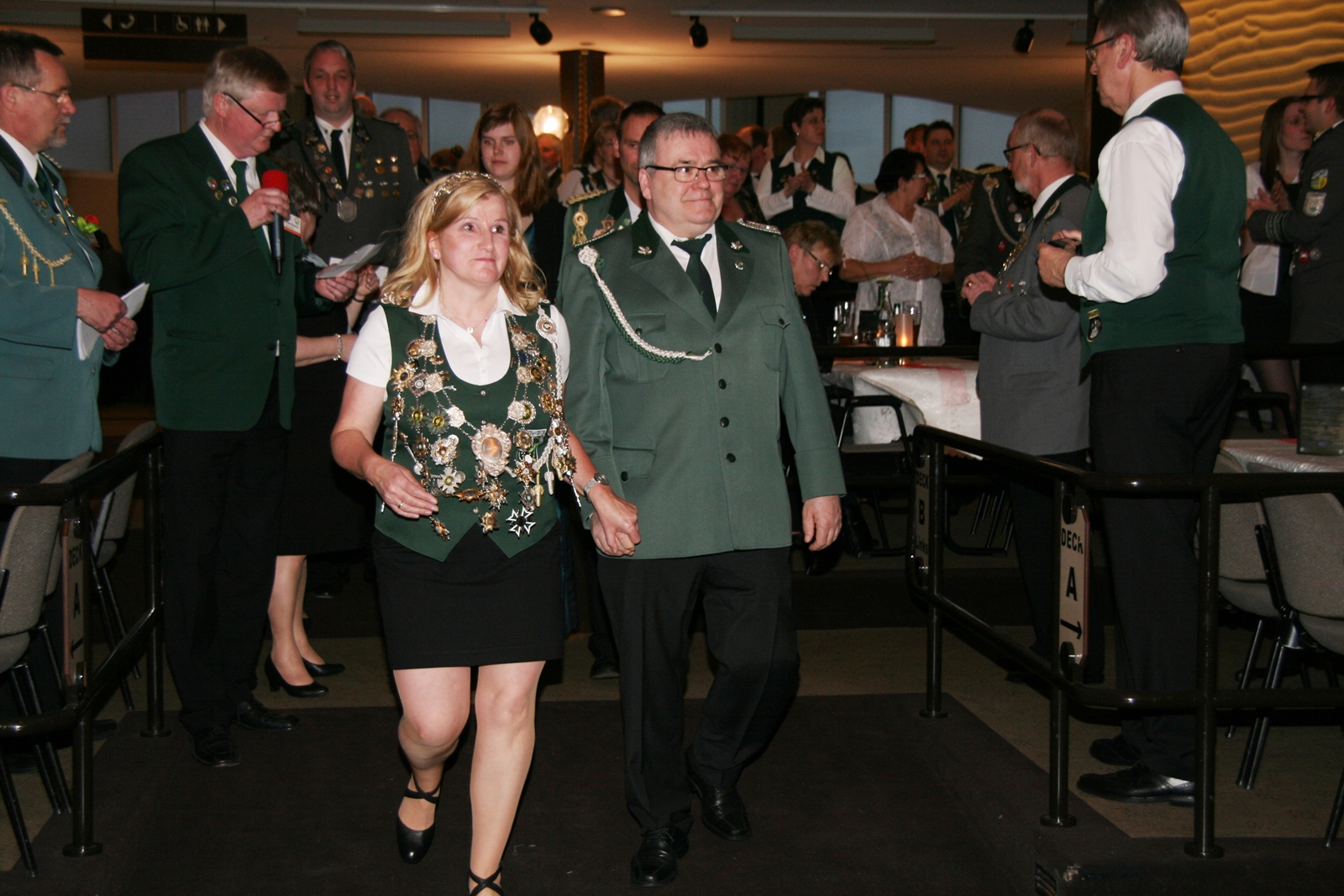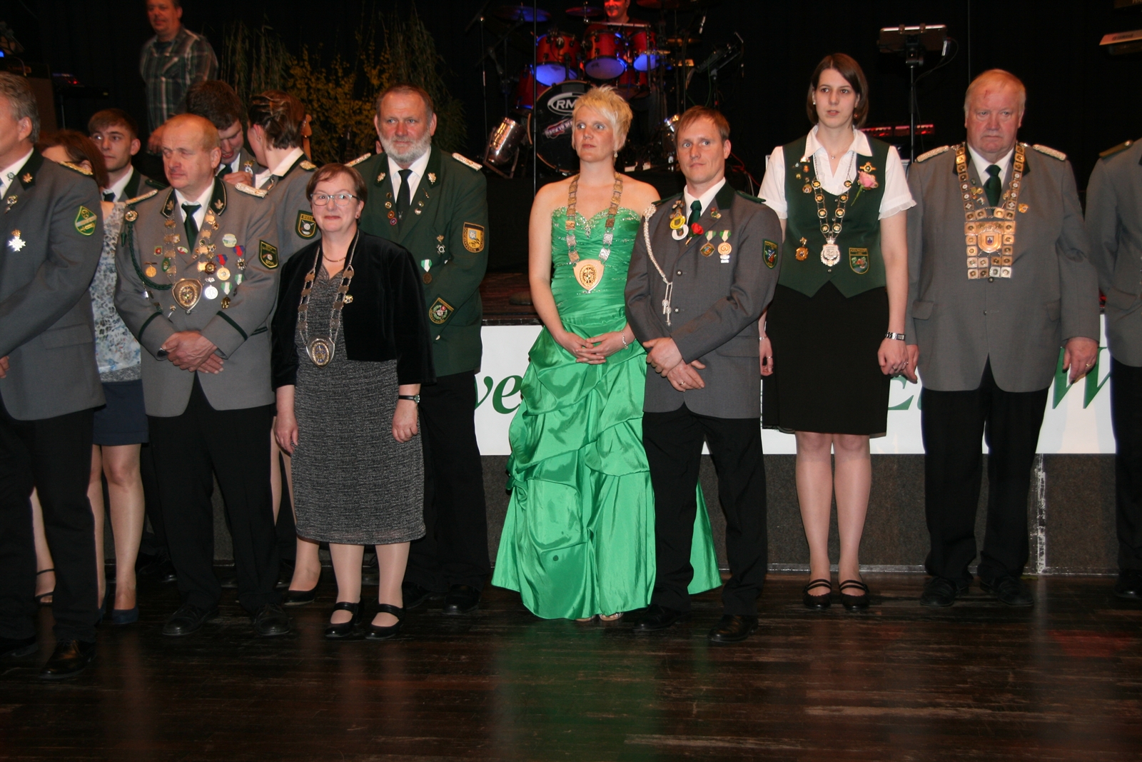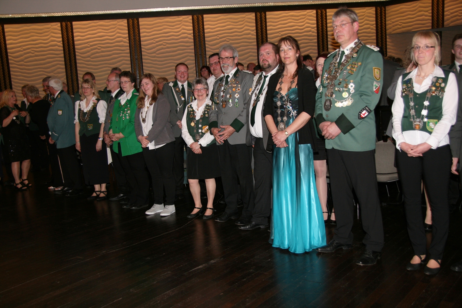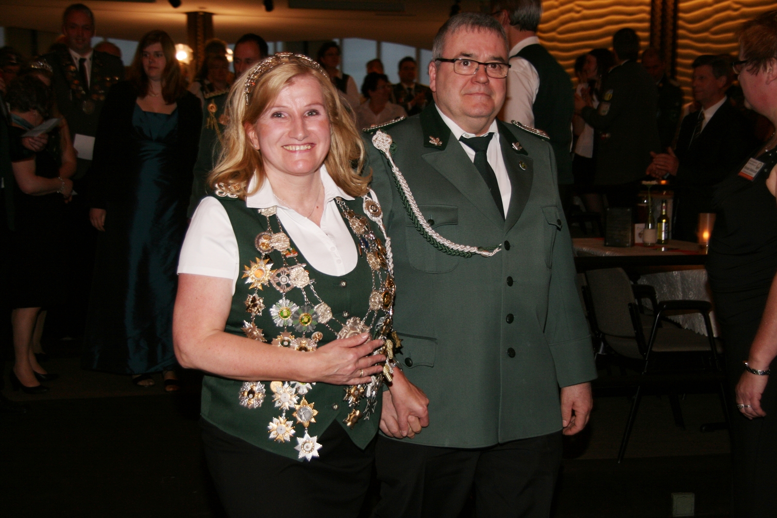 Birgit Nachtigall, "Die Entschlossene", amtierende Königin vom Schützenverein Kirchdorf, mit Prinzgemahl Reiner mit Gefolge, war zum Landeskönigsball angereist, ebenso Ex-Landes- u. Bundeskönigin Sabine Prochazka mit Ehemann Günther vom SV Blockwinkel.