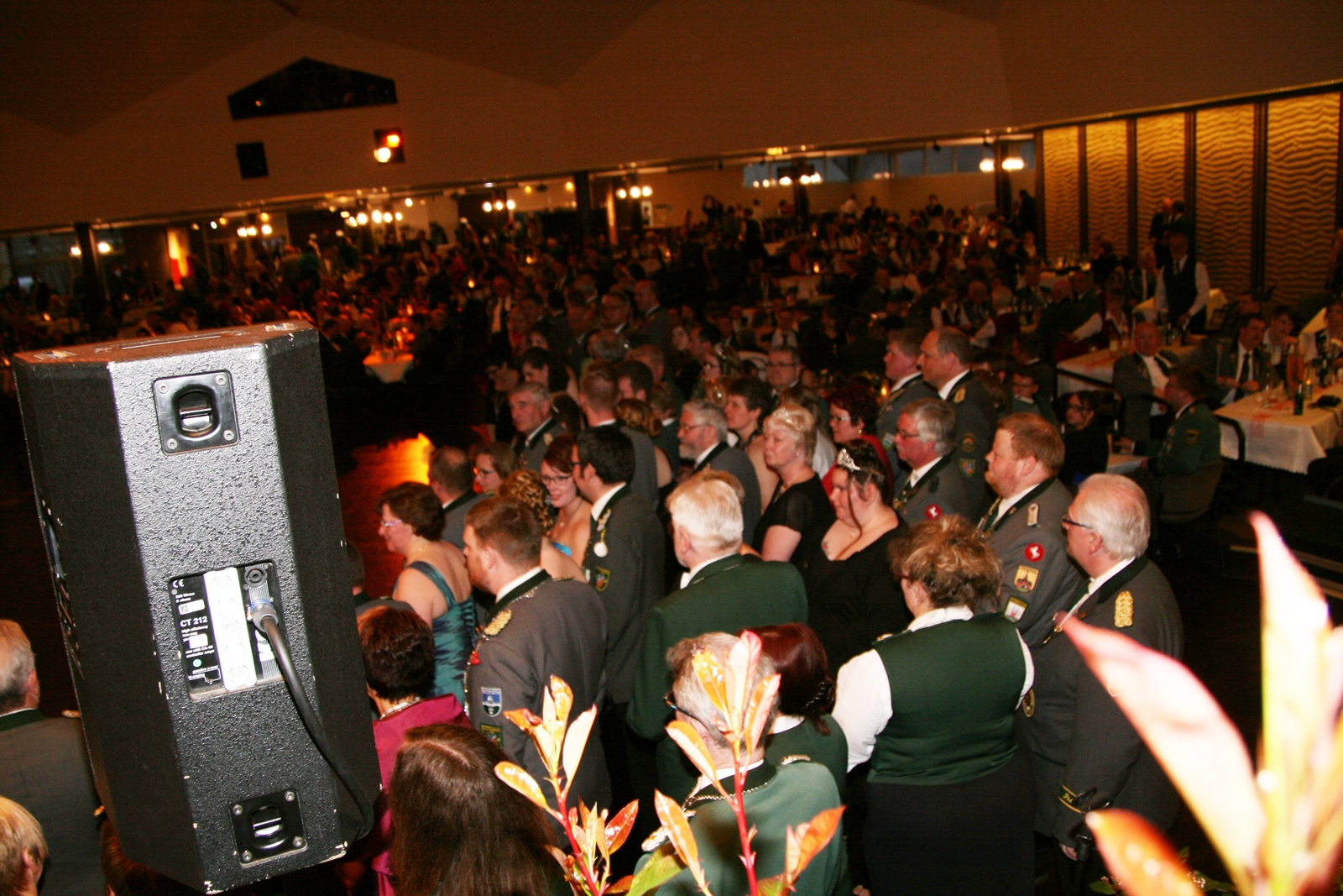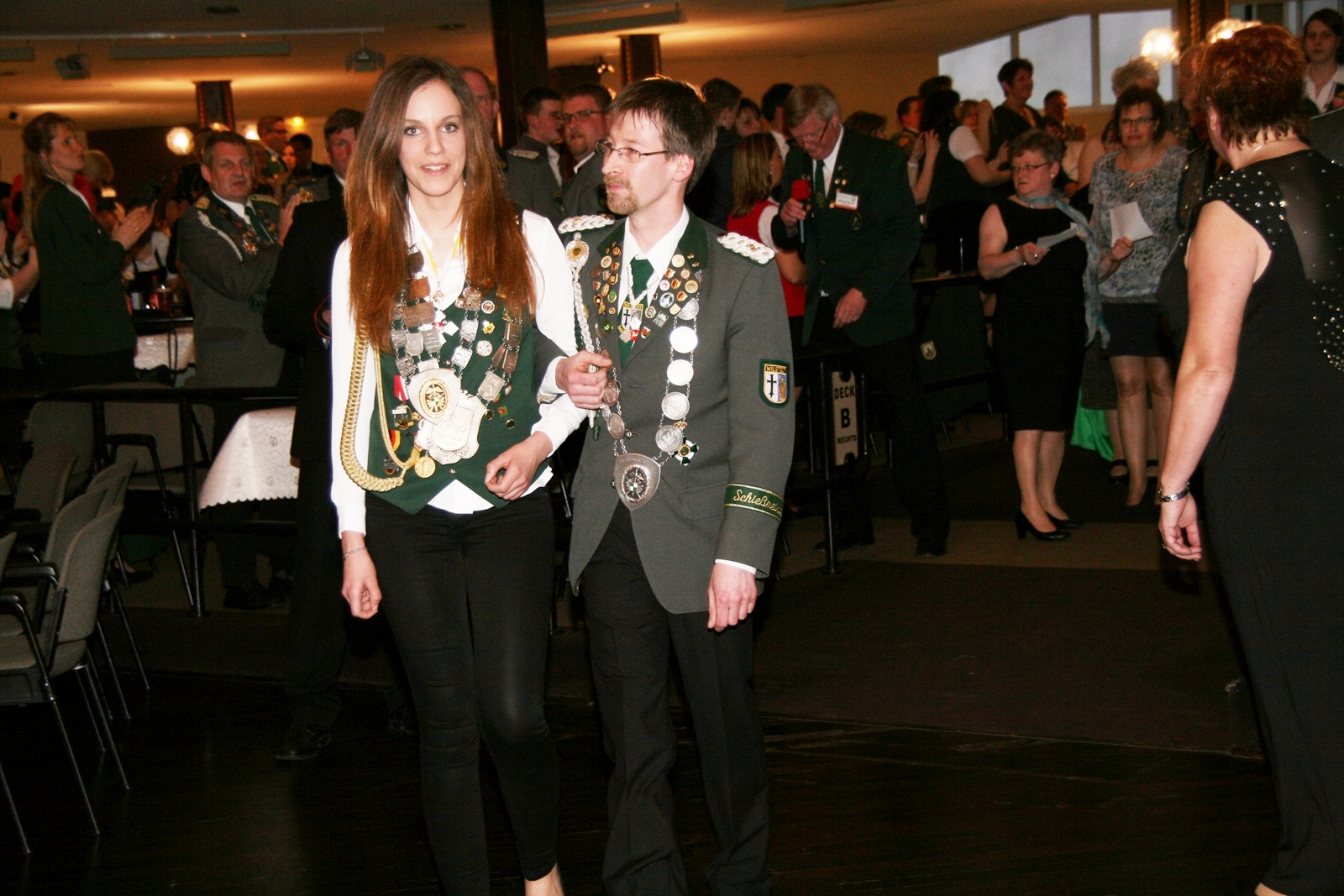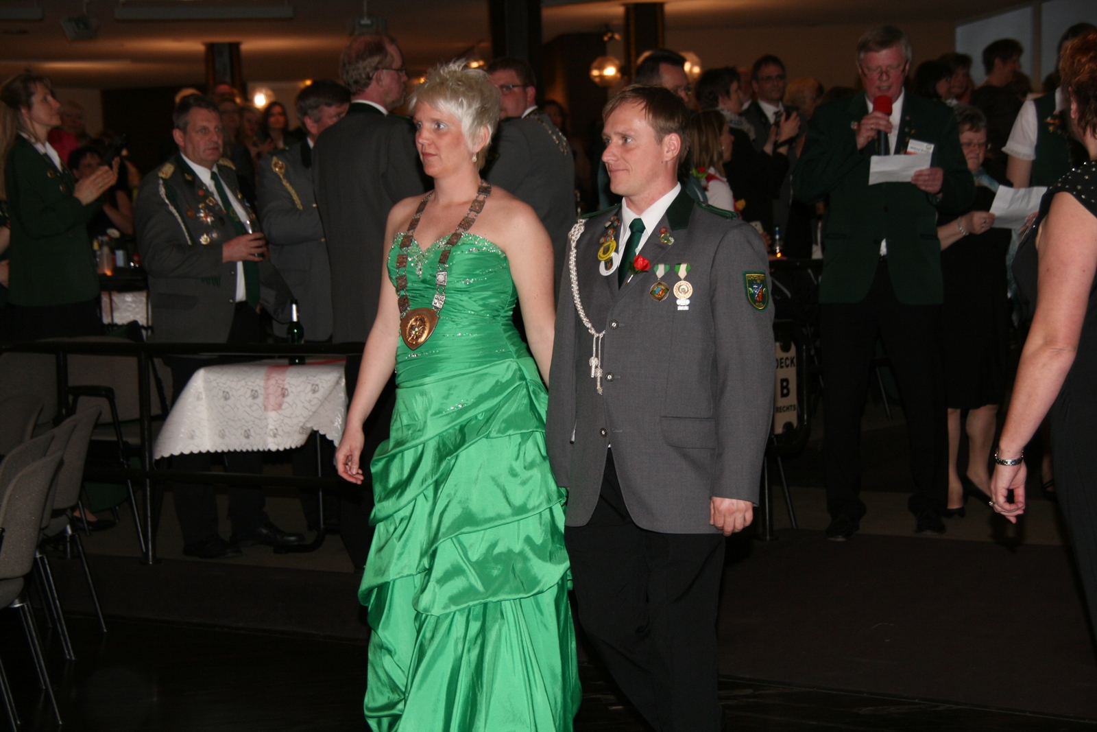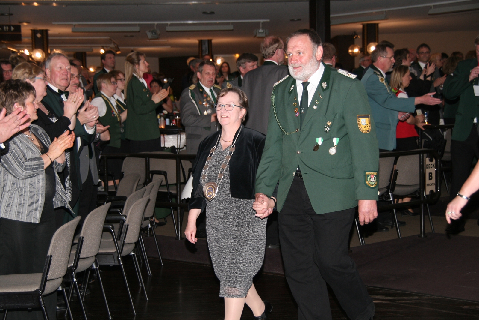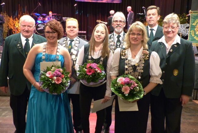 Birgit Nachtigall, "Die Entschlossene", amtierende Königin vom Schützenverein Kirchdorf, mit Prinzgemahl Reiner mit Gefolge, war zum Landeskönigsball angereist, ebenso Ex-Landes- u. Bundeskönigin Sabine Prochazka mit Ehemann Günther vom SV Blockwinkel.