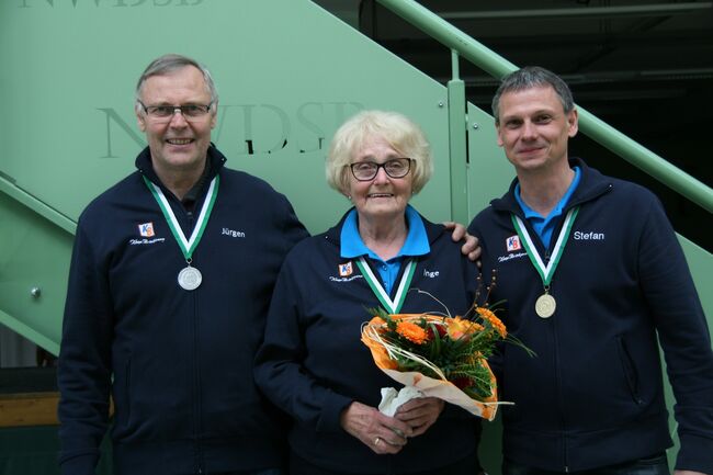 Glückliche Medaillengewinner: Jürgen Harzmeier, Inge Lübbers u. Stefan Runge vom SV Drebber von 1900