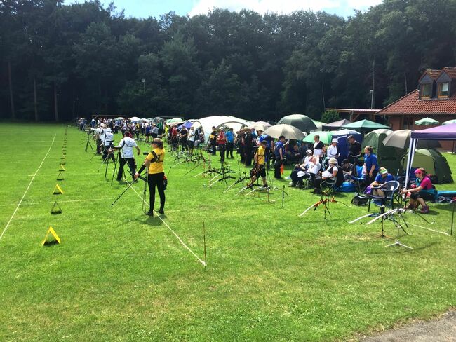 Zum Glück war der Sonntag ein prima "Sonnentag", nicht wie die Tage vorher mit Gewitter und Starkregen! Die Veranstalter hatten ganze Arbeit mit ihrem Team geleistet, das ganze Areal war super hergerichtet. Landesbogenreferent Axel Heemann lobte die Gastgeber, solch perfekte Bedingungen hier vorgefunden zu haben.