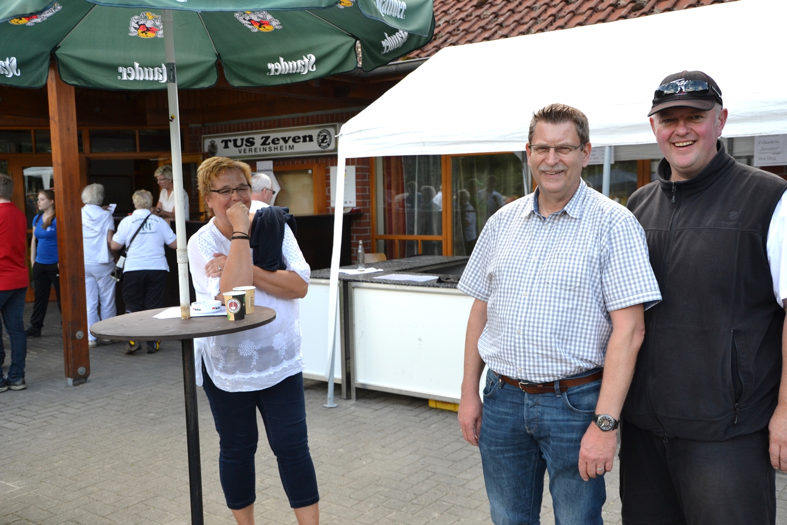 Auf dem Foto ist die eine Hälfte der Bogen-Sportler zu sehen. Andreas Schraubeck (497 R.)vom SV Schwaförden war auch Kampfrichter für Blankbogen, Hans-Georg Backhaus, Blankbogen (484 R.). Jürgen Vogt startete mit dem Recurvebogen (545 R.), Jessika ebenfalls (482 R.) und wurde von Papa Stefan Emker und den Dörrielohern Trainern begleitet. Eike Richter vom BS Diepholz startete auch mit dem Recurvebogen (559 R.)