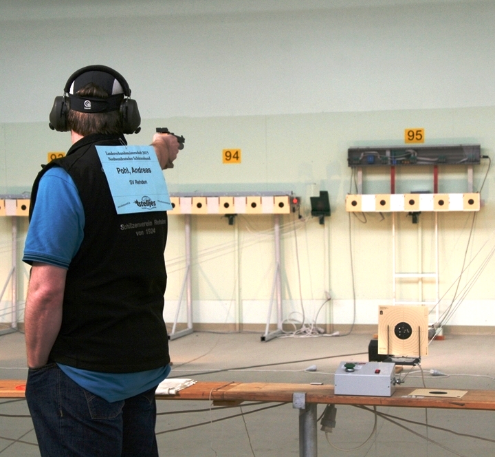 Bei dem Wettkampf mehrschüssige Luftpistole hörte man nur die schnelle Schußfolge, die Bekanntgabe der Treffer und die Kommandos zum Laden, in der Herrenklasse wurden 60 Schuß abgegeben. Andreas hatte abschließend in den 6 Zehnerserien die Treffer 5, 7, 6, 5, 6 und 5, also 34 Treffer, er war sicher zufrieden (natürlich hätte er noch gern mehr getroffen) immerhin hatte er 10 Treffer mehr als im Jahre 2014.