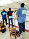 ...die Luftpistolenschützinnen u. -schützen vom SV Strange-Buchhorst waren, wie auch alle anderen LM Teilnehmer aus unserem Bezirk, gut "gestellt" - vor und nach ihrem Wettkampf! Zum größten Teil waren sie mit ihren Ergebnissen doch "fast" zu frieden, (ein paar Ringe mehr können es natürlich immer sein, aber man hat dabei auch wertvolle Erfahrungen sammeln können) von links: Jan Dammeier (349), Karen Kunst (350), Marc Wiegmann (341), Saskia Runge (322), Malte Wiegmann (353), Danica Kynast (321). Die Damenmannschaft vom SV Strange-Buchhorst kam mit 984 Ringen auf Rang 4 von 7 und die Herrenmannschaft mit 1043 Ringen nahm Rang 9 von 19 teilnehmenden Mannschaften ein.