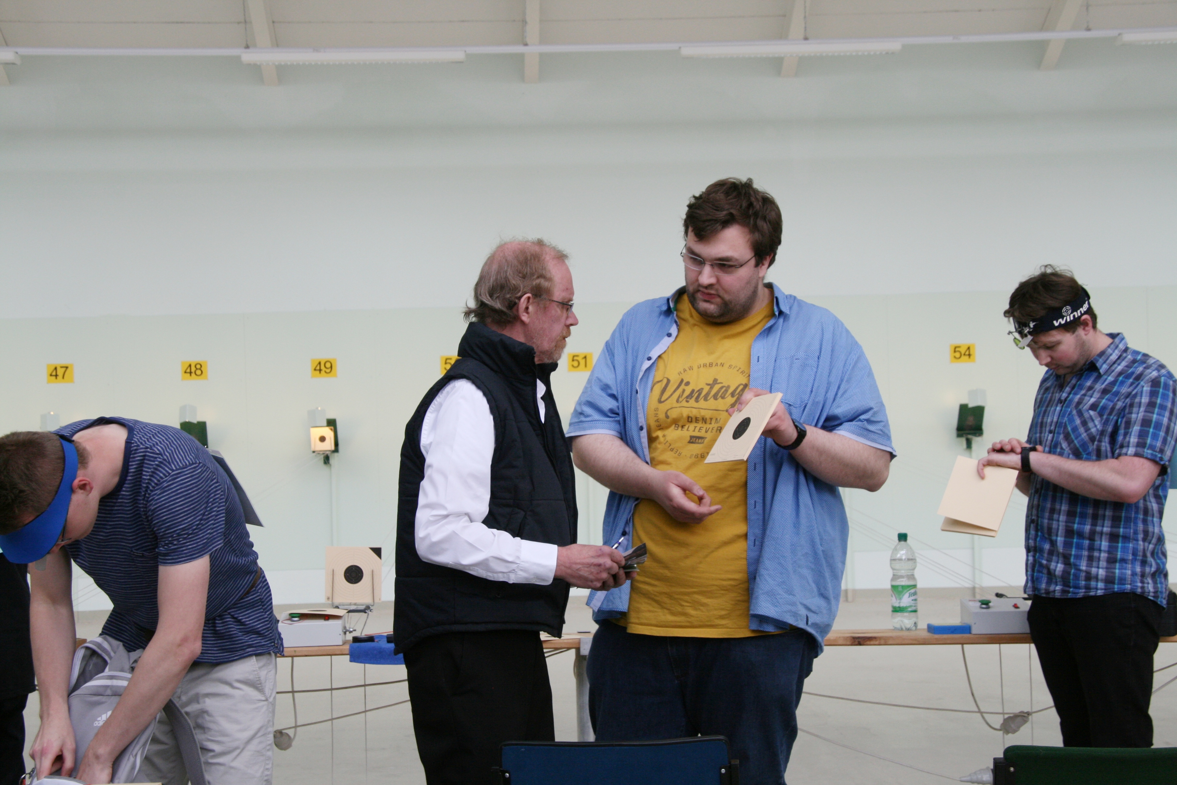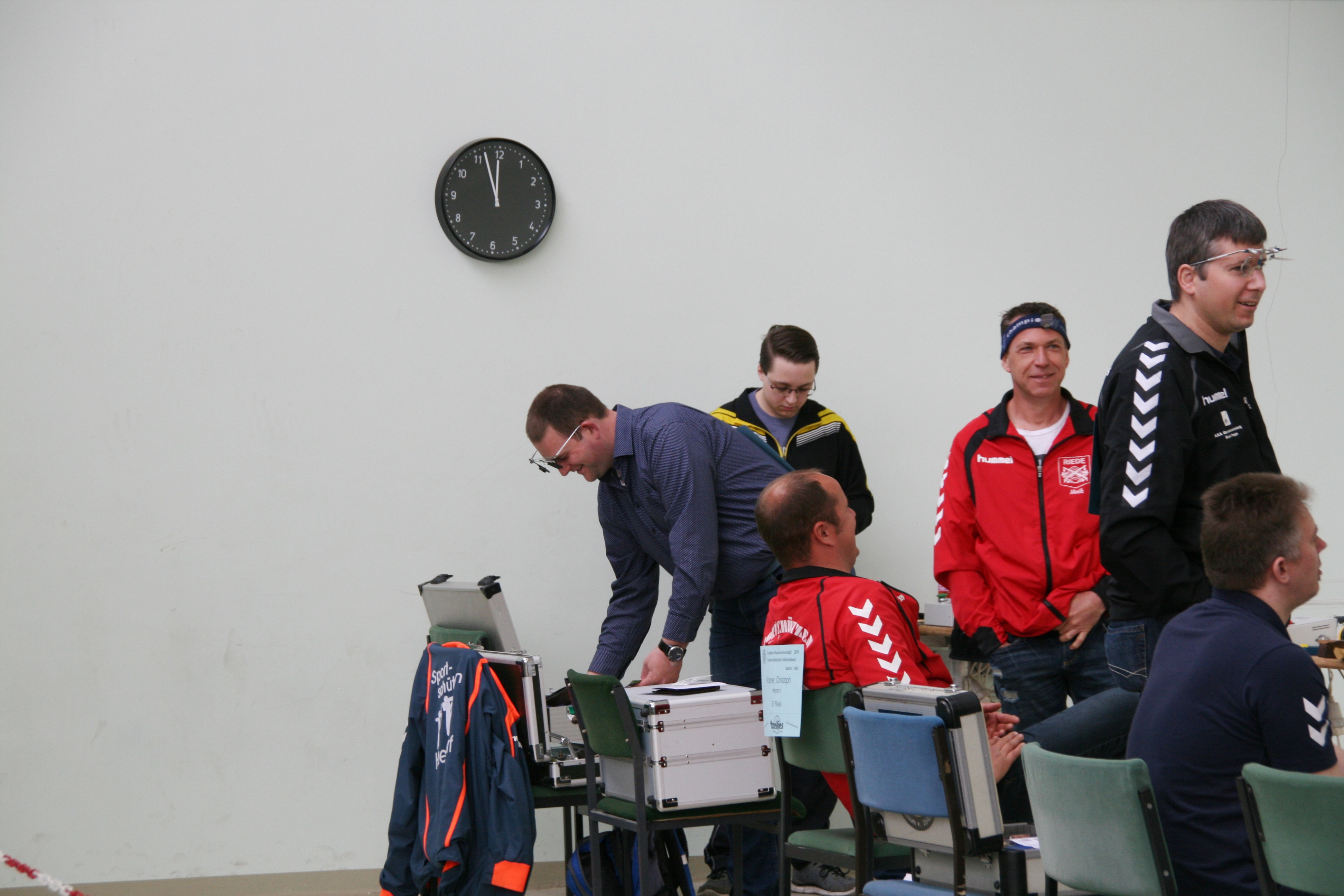 Einer kam durch am Samstag vom "Freihand-Wochenende" - Sascha Sandmann vom SV Kirchdorf hat sich mit 372 Ringen mit der Luftpistole an die Spitze gesetzt, nach dem Titelgewinn im letzten Jahr holte er sich erneut die Goldmedaille mit der Luftpistole bei den Herren II nach Kirchdorf. Dicht gefolgt von Christian Brandt vom SV Anderlingen, ebenfalls mit 372 Ringen, aber Sascha's letzte Serie von 93 war um 2 Ring besser, Maik Ritter vom SV Schirumer Leegmoor erzielte 371 Ringe, wie auch Jens Frieling vom SV Haendorf.