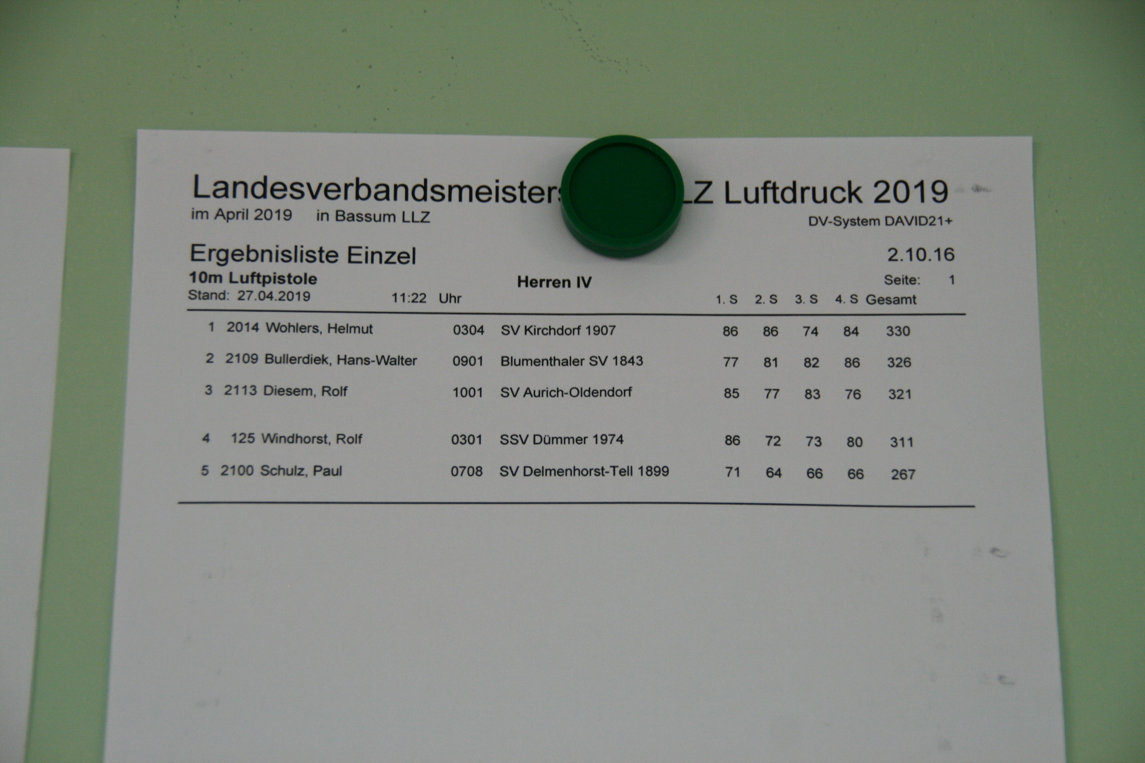 Die Landesverbandsmeisterschaft (LM) 2019 Luftdruck Herren und Damen im Landesleistungszentrum (LLZ) des Nordwestdeutschen Schützenbundes (NWDSB) am 27. u. 28. April in Bassum, war mit rund 1000 Teilnehmern der Treffpunkt der Sportschützen, um beste Leistungen in ihren Disziplinen abzurufen. Dabei hatten sie das Ziel im Auge, das Limit für die Deutsche Meisterschaft in München-Hochbrück zu erreichen.
