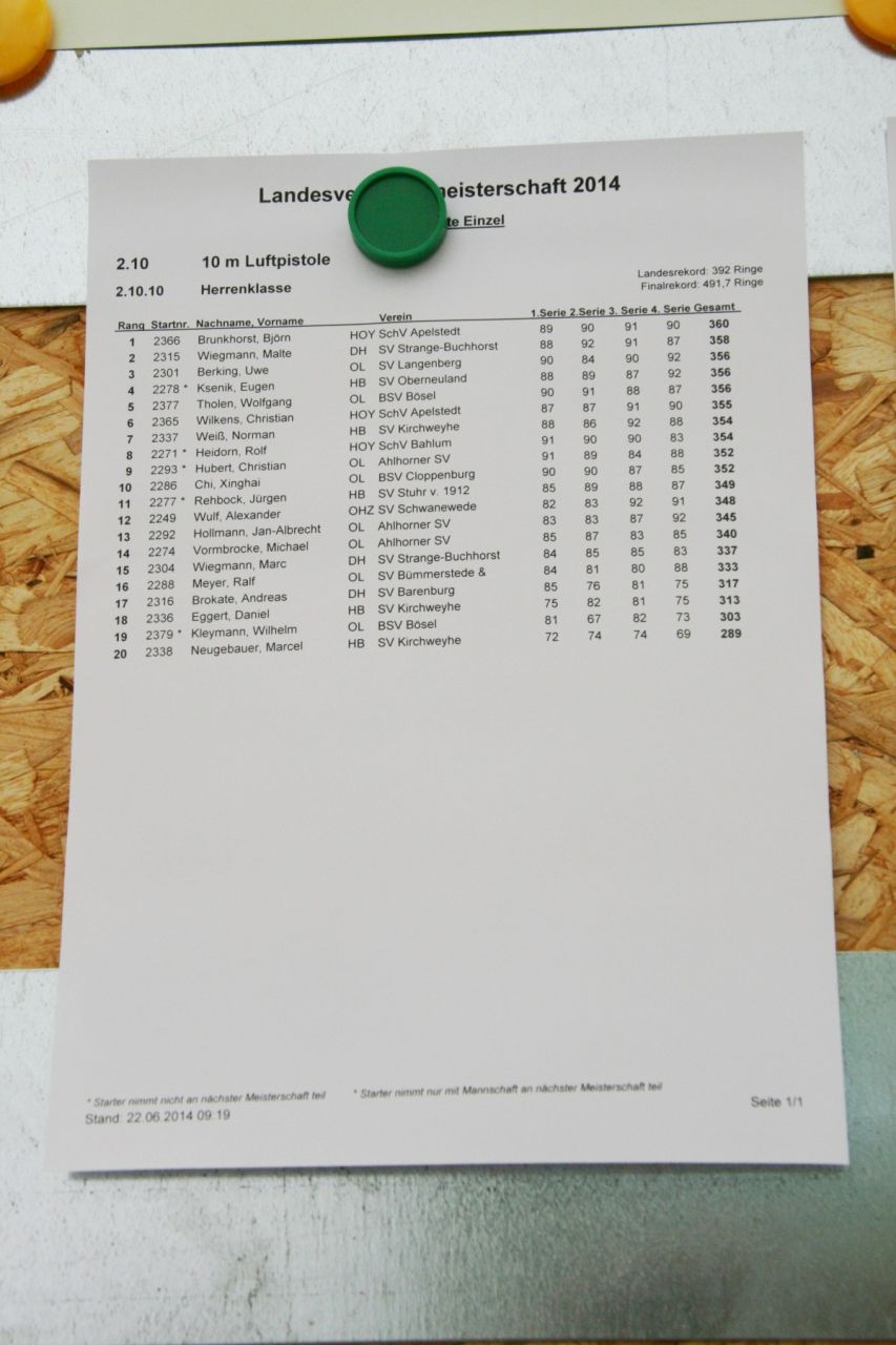 Mit 351 Ring beendete Bianca Kuls vom SV Rehden ihren LP-Wettkampf, Sina Mohrlüder vom SV Ehrenburg und Silke Ahlers vom SV Strange-Buchhorst (sie war das erste Mal bei der LM), konnten dieses Mal die "Schallmauer" von 300 Ring nicht "überwinden". Aber wie bei vielen Sportschützen, zählt bei ihnen sicher mit der olympische Gedanke. Also nur nicht entmutigen lassen...