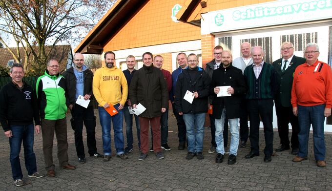 Markus Sowade und Lars Steinmüller vom SV Hagewede-Marl, Mirco Sparmeier SV Ossenbeck, Frank Grieme KSV Ströhen, Sascha Langhorst SV Rehden, Andre` Neuhaus SV Schwaförden, Michael Lehmann und Florian Willnat vom SK Diepholz, Horst Meins SV Wetschen und Heiko Siemers vom SV Wohlstreck.