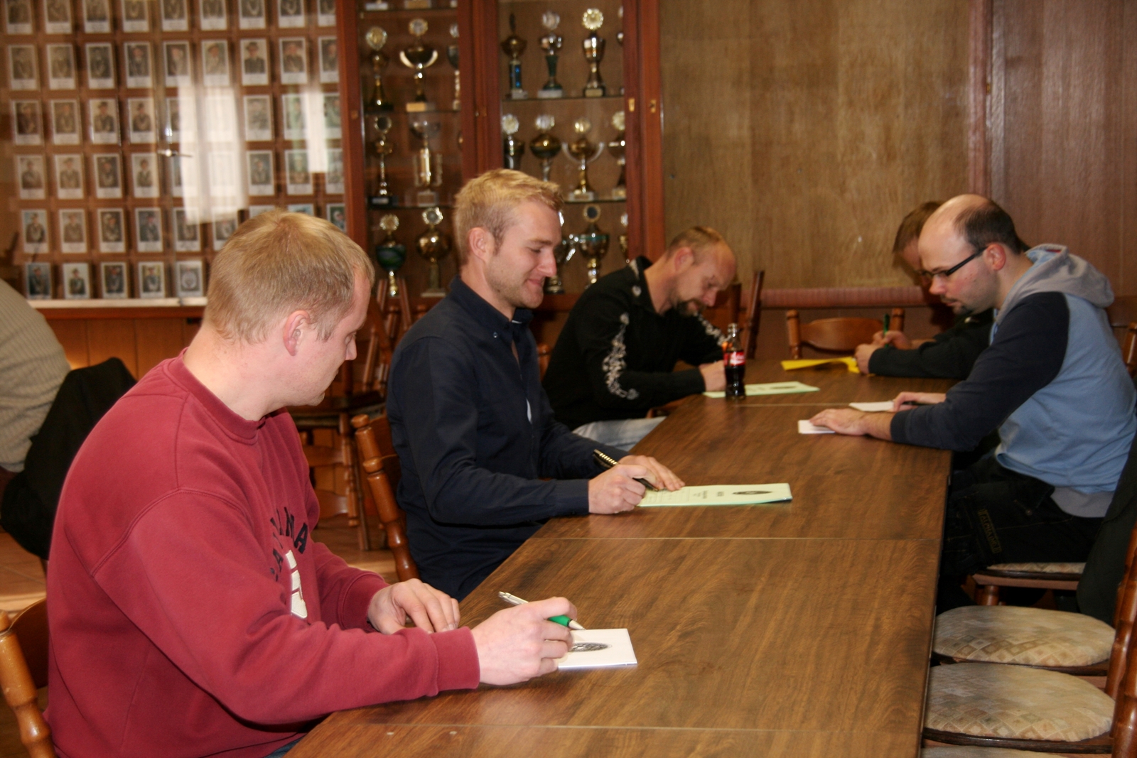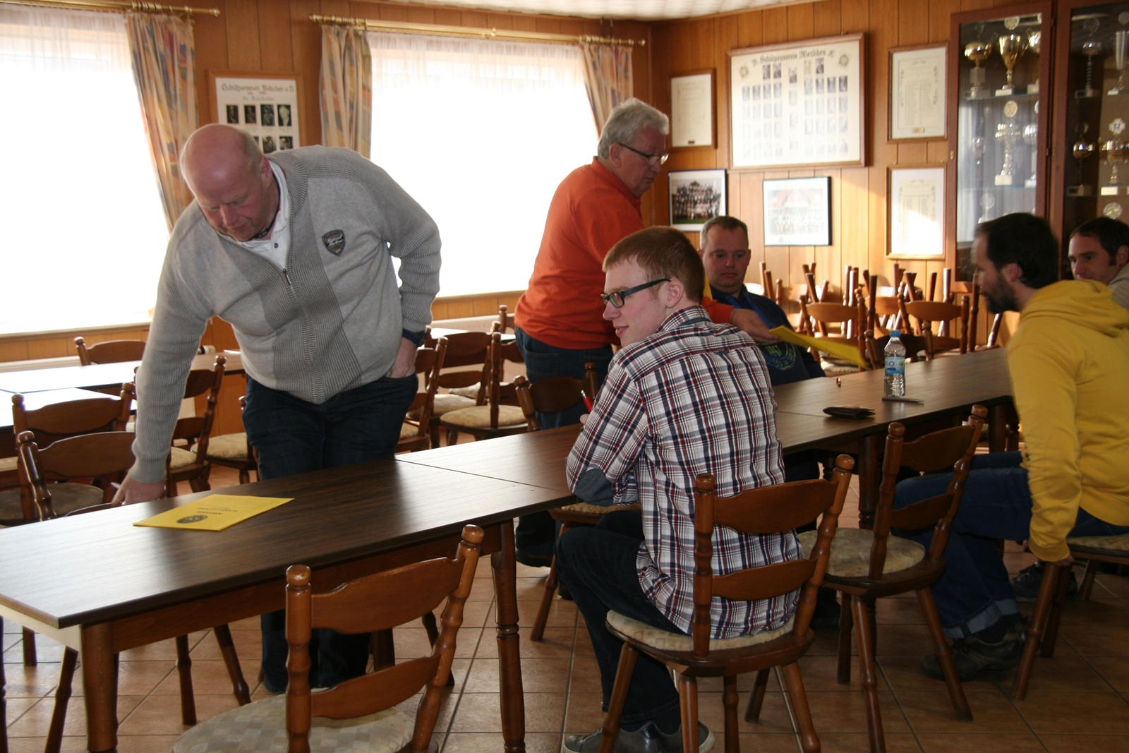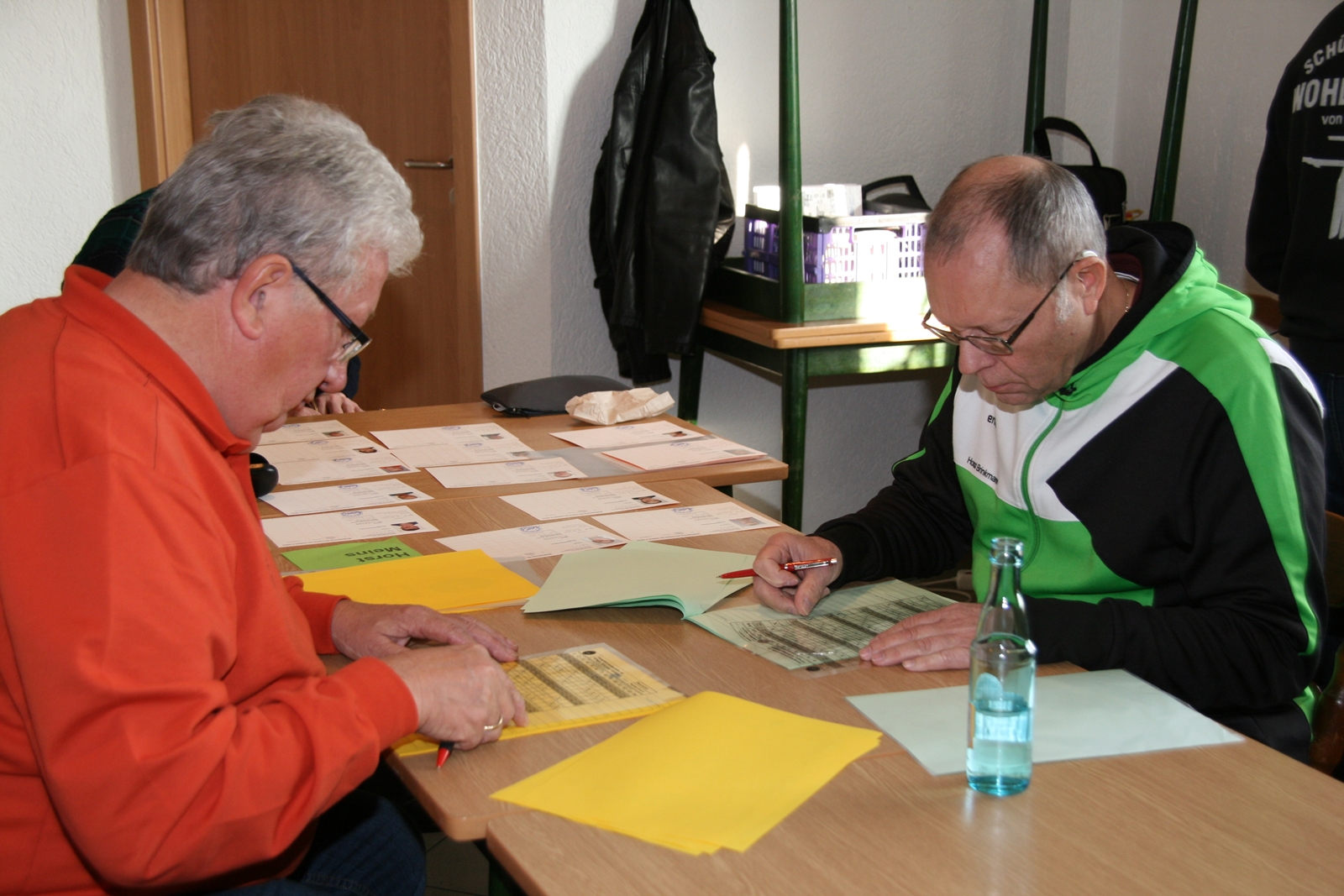 Horst Brinkmann, Friedel Kelkenberg und Siegfried Kemmsis verteilten anschließend die verschiedenfarbigen Fragebögen (grün, gelb u. weiß) für die schriftliche Prüfung. Dann wurde es „ernst“, nun mussten die Kreuzchen an der richtigen Stelle gemacht werden. 90 Fragen wurden auf diese Weise beantwortet.