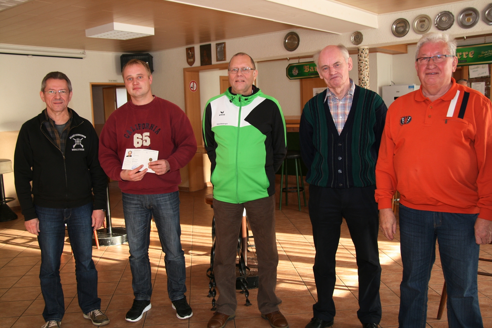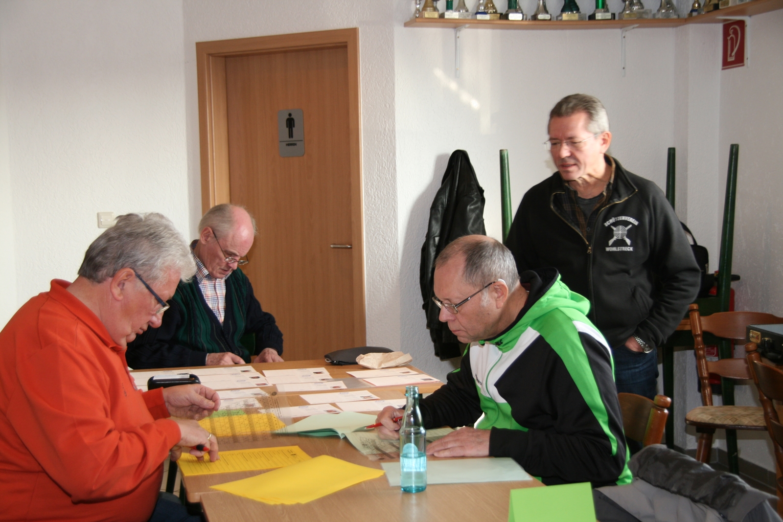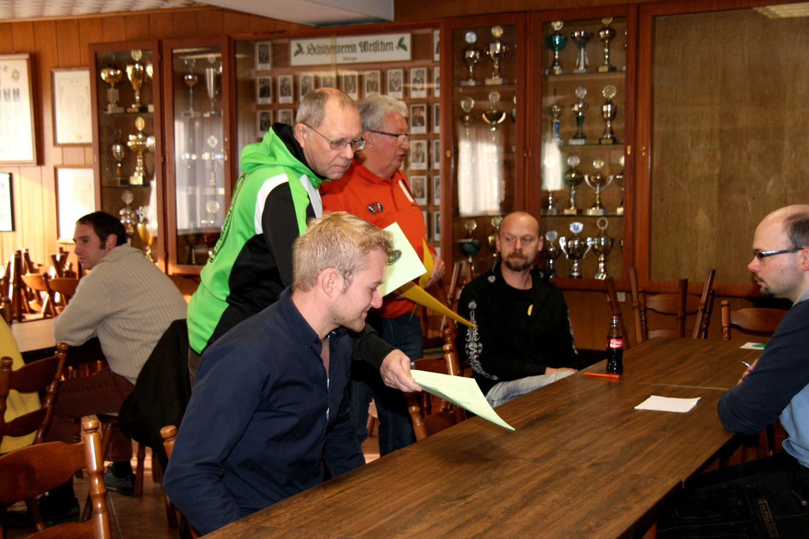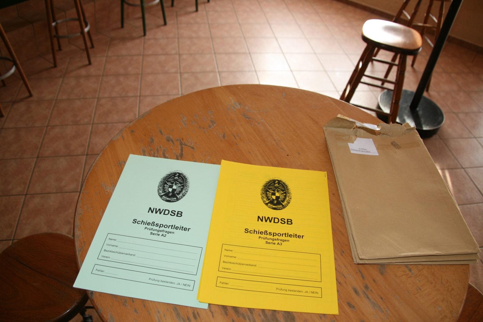 Hans-Dieter Asbrock vom Nordwestdeutschen Schützenbund, nahm die Prüfung vor, Horst Brinkmann und Friedel Kelkenberg werteten die Prüfungsbogen aus.