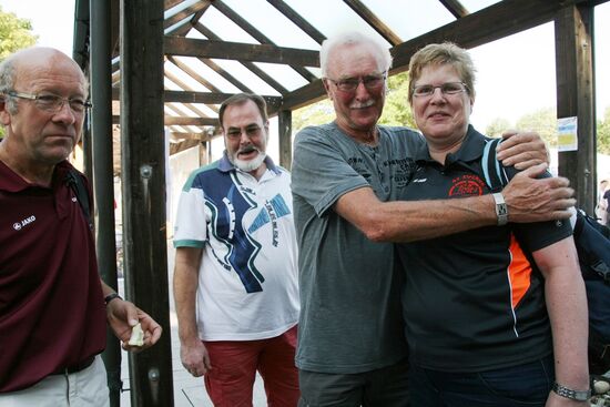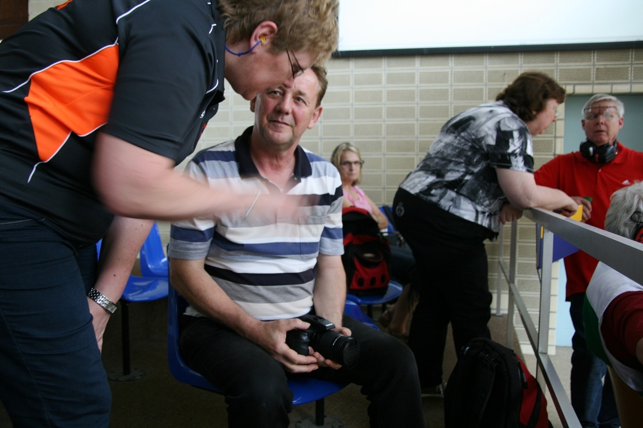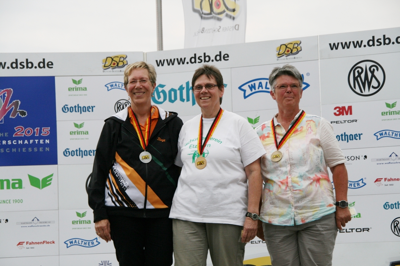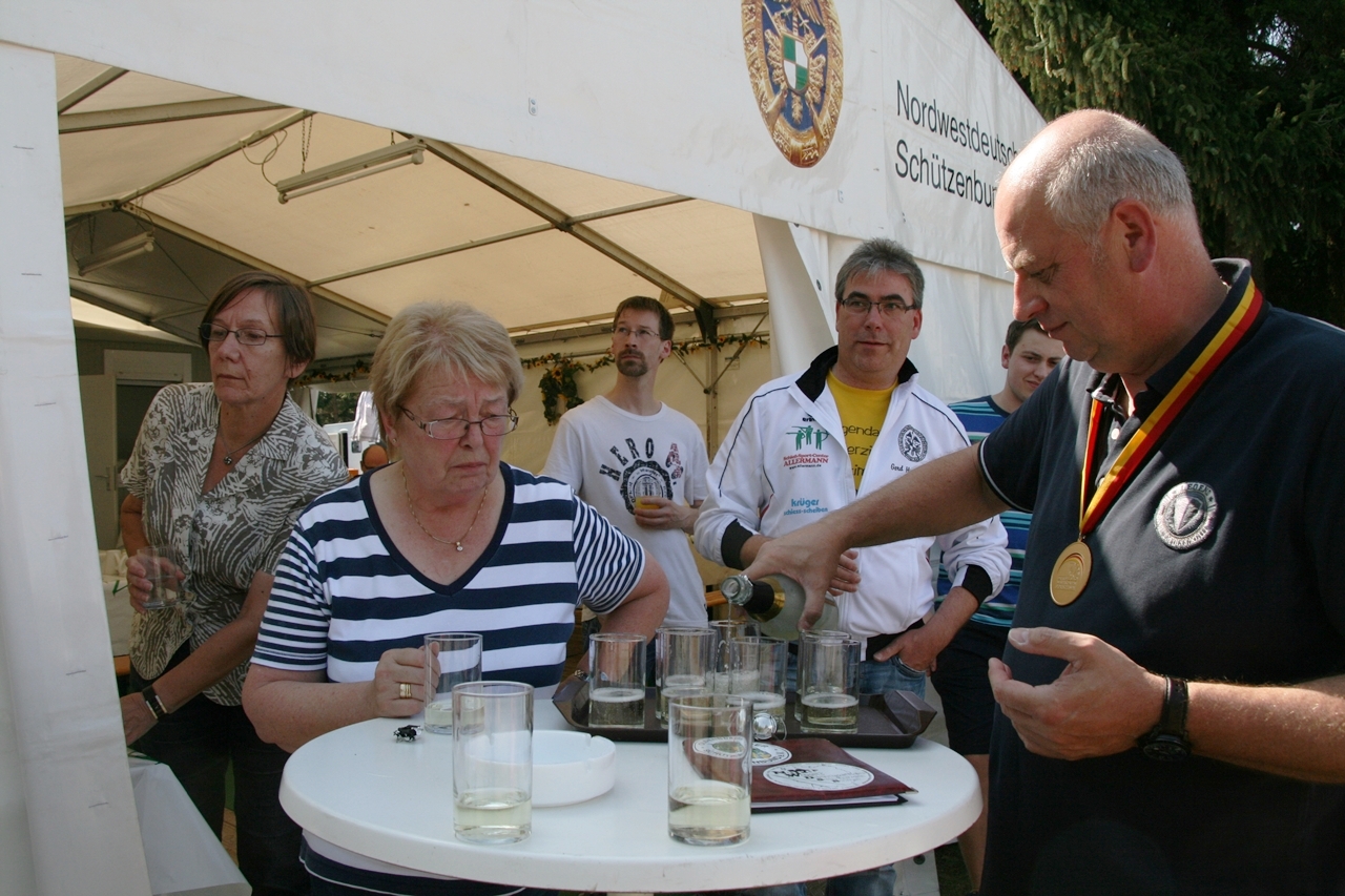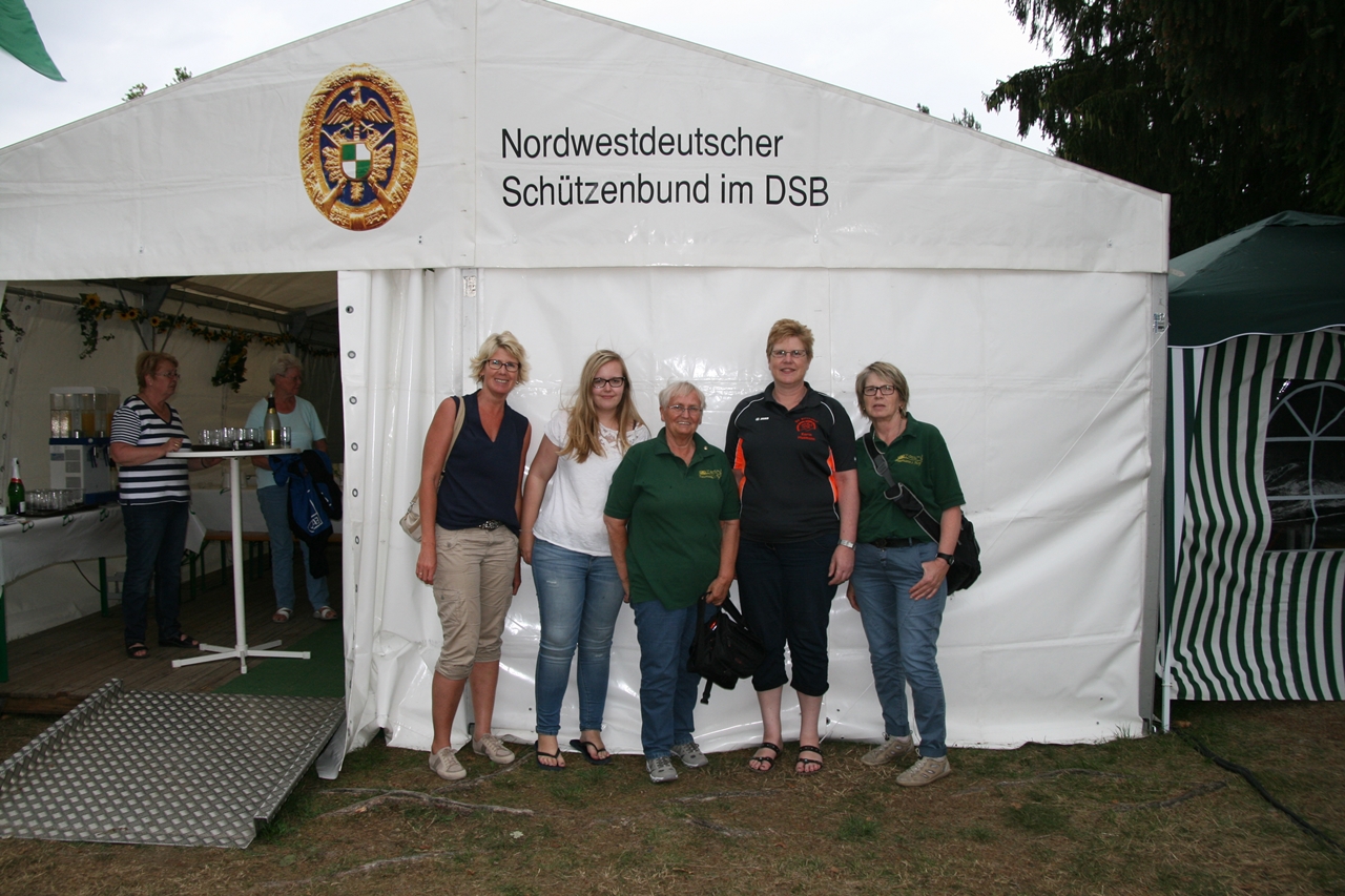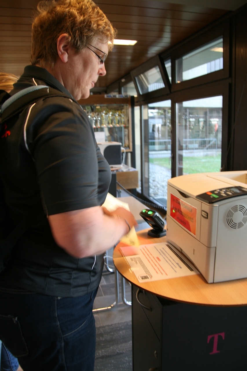 Zuerst die Startnummer ausdrucken und laminieren, dann mit der Luftpistole zur Waffenkontrolle. Da liefen uns schon die ersten Bekannten über den Weg, unter ihnen auch Horst Senkler und Ingrid Sommer mit ihren Mannschaftskolleginnen Rita Müller und Anette Teckemeyer (sie hatten die gleiche Startzeit wie Karin:13:30 Uhr).