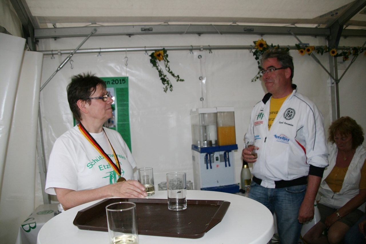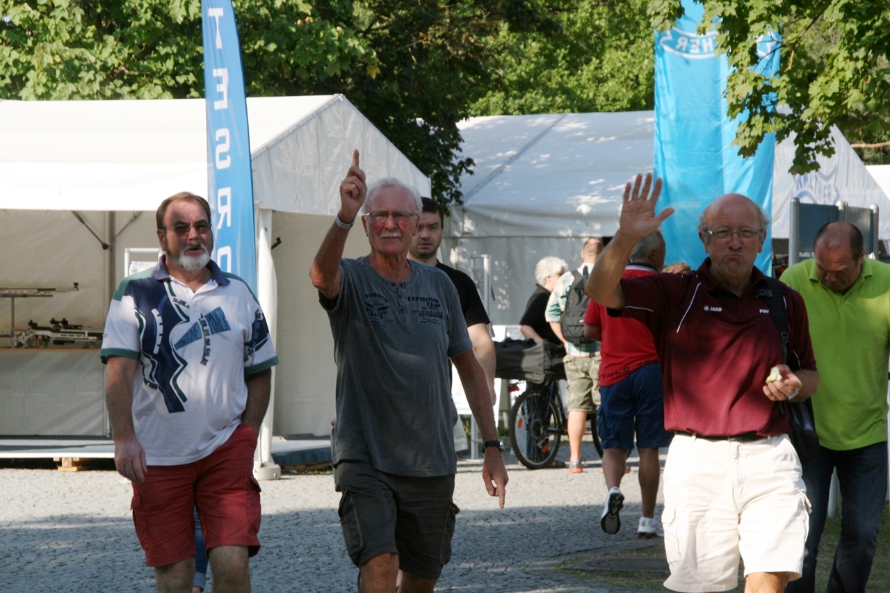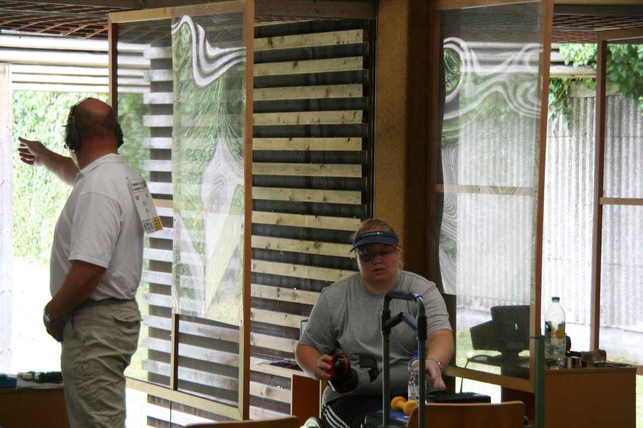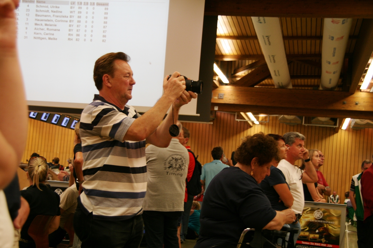 Karins Start um 13.30 Uhr war nicht nur für sie kein "Zuckerschlecken", die Aussentemperaturen lagen zwischen 30° u. 34°, das Handtuch musste so manches Mal ihre verschwitzen Hände trocknen. Die Getränkeflasche war für viele Schützinnen ein "Muss". Ihr Landesmeisterschaftsergebnis von 358 Ringen konnte sie an diesem Tag leider nicht erreichen, 336 Ring war ihr Endresultat. Das Daumendrücken ihrer "Heimatfans" hatte dieses Mal nicht geholfen. Im nächsten Jahr wird sie aber wieder versuchen mit einem guten Ergebnis die "Fahrkarte" nach München zu lösen.
