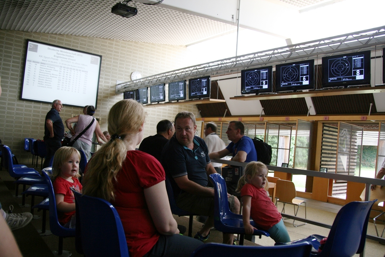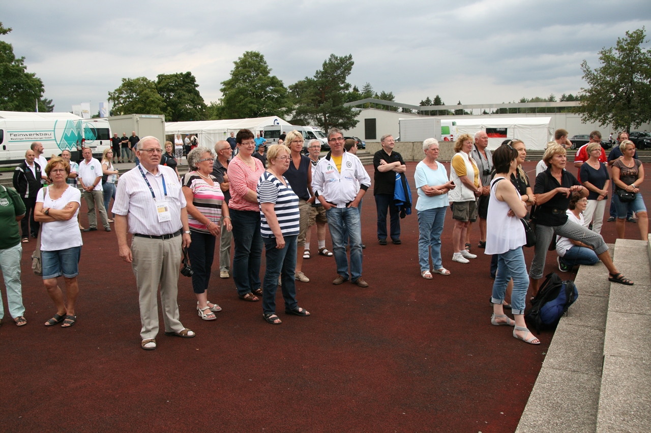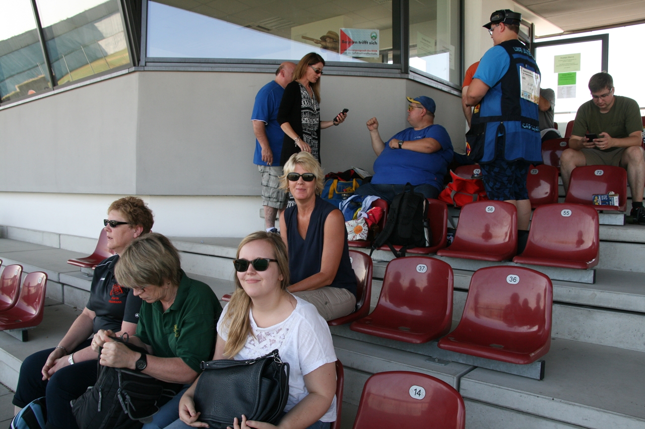 Der Wagen war mit DM-Schützin Karin Husmann, Nichte Denise, Schwester Inge Blohme und Marianne Vallan als "Schlachtenbummler" besetzt. Auf der Reise am Montag um 8:00 Uhr nach München mit Ankunft 16:00 Uhr, waren Sonnenschein und Temperaturen bis 34° "Reisebegleiter", zum Glück haben die Autos ja Klimaanlagen. Es folgte ein Rundgang über das Gelände, ein paar Beobachtungen bei den Kleinkaliber Liegendschützen, in der Final- und Luftdruckhalle und die Ohren "dicht" in der Spopihalle. Gerd Harzmeier mit Ehefrau Christina waren mit die ersten Bekannten, die uns am Dienstag begrüssten.Gerd Harzmeier war dort als NWDSB-Helfer schon seit Freitag vor Ort.