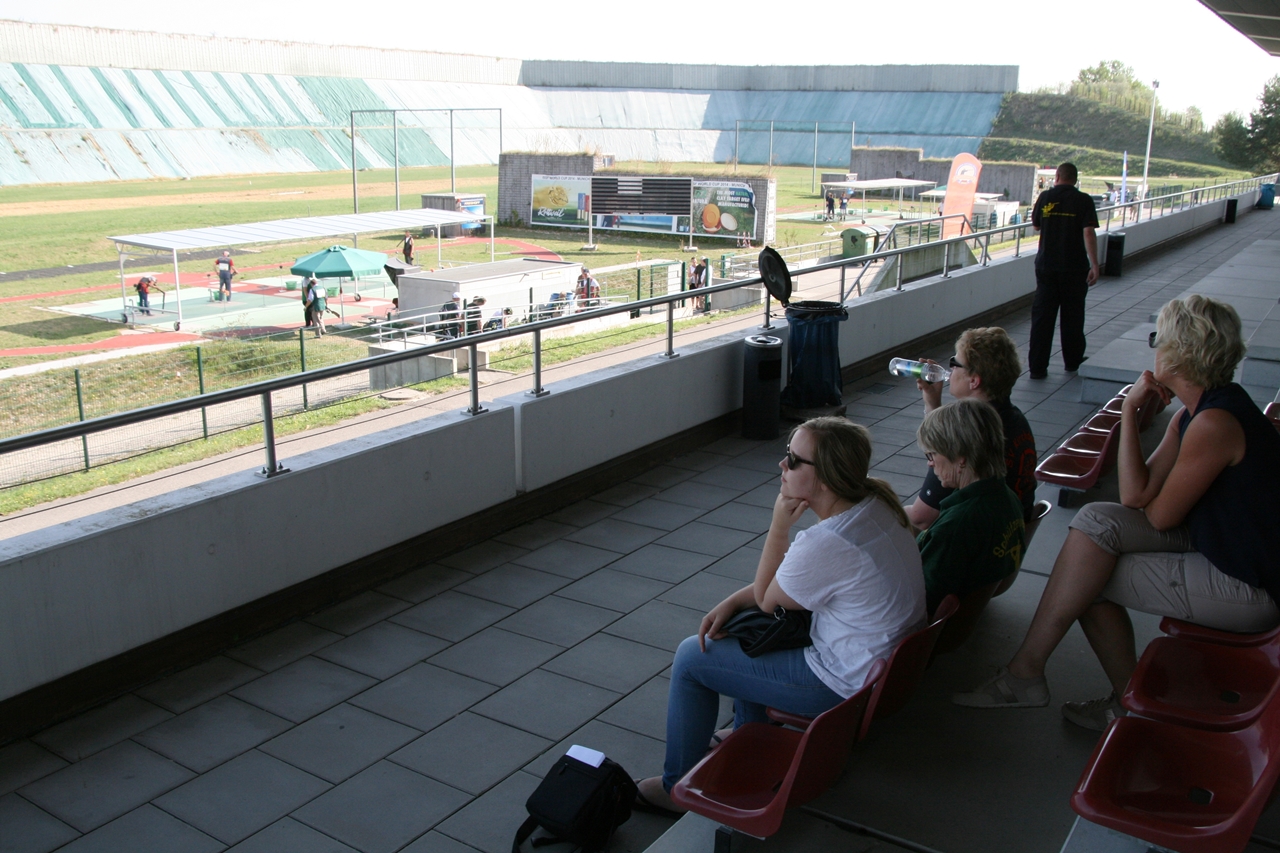 Da bis zu Karins LP-Start noch Zeit war, beobachteten wir im Schatten sitzend die Wurfscheibenschützen, die hatten bei den hohen Temperaturen auch ein Handtuch dabei.