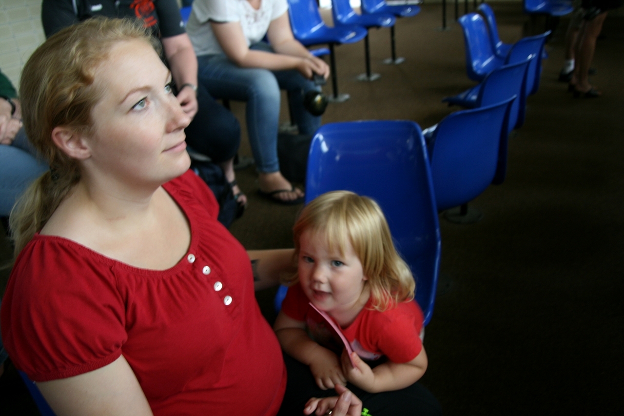 Karin mit ihren Fans nach dem Wettkampf vor dem NWDSB-Zelt...