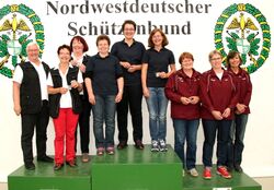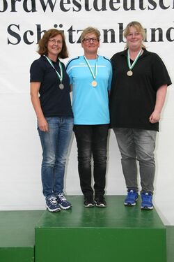 Die Luftpistolenschützinnen vom SV Strange-Buchhorst stellten in der Altersklasse keinen Landesrekord auf, dafür gewann Heike Kynast mit 354 Ring die SILBERMEDAILLE. Die Altersschützinnen Heike Kynast, Anke Rohlfs (351 R.) und Elke Bulk (341 R.) "holten" sich aber als Mannschaft mit 1046 Ringen dazu noch die GOLDMEDAILLE!!
