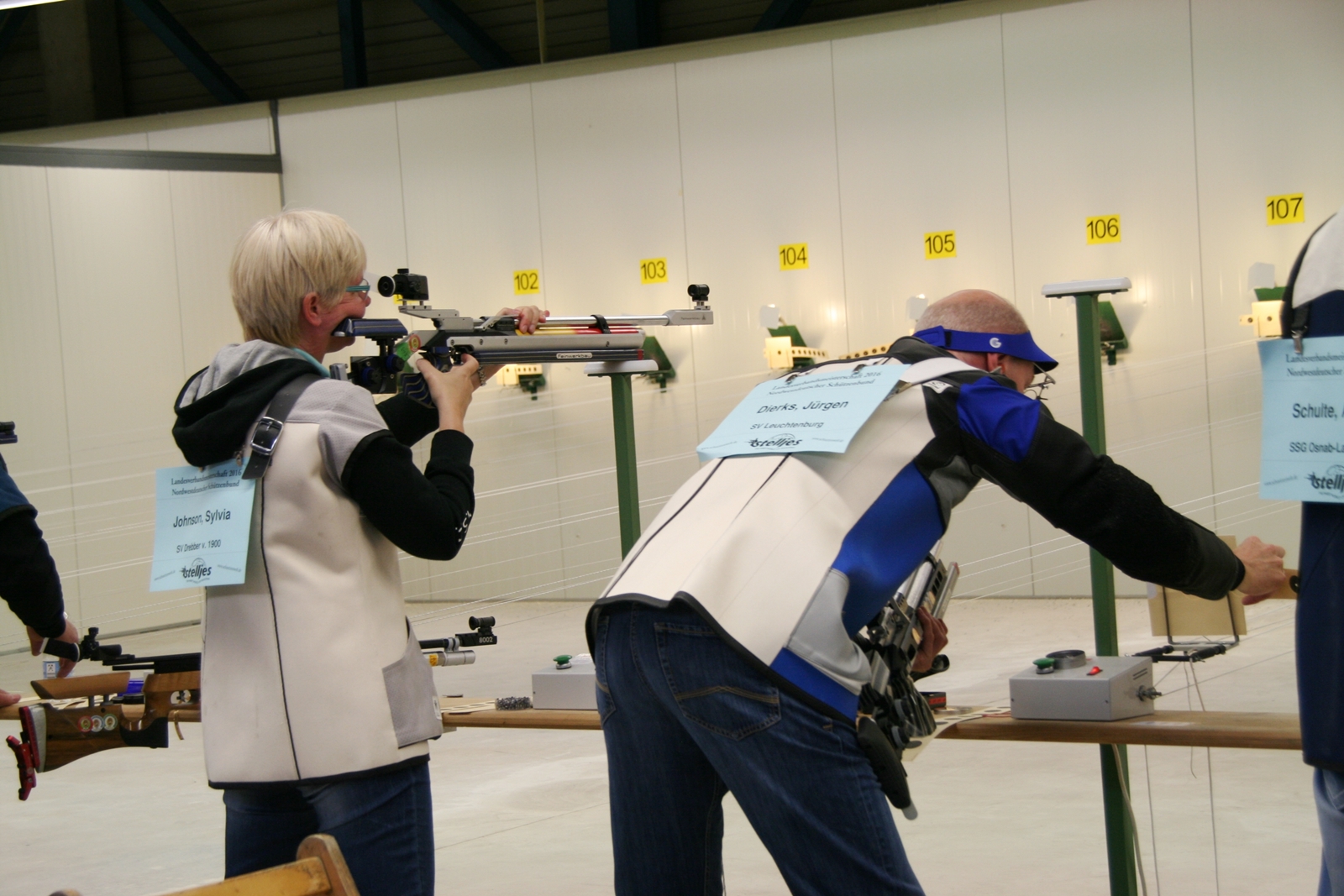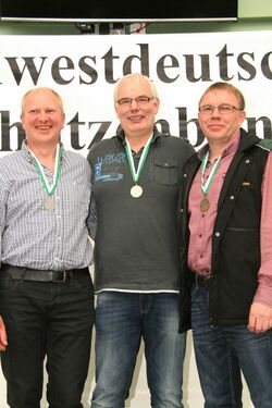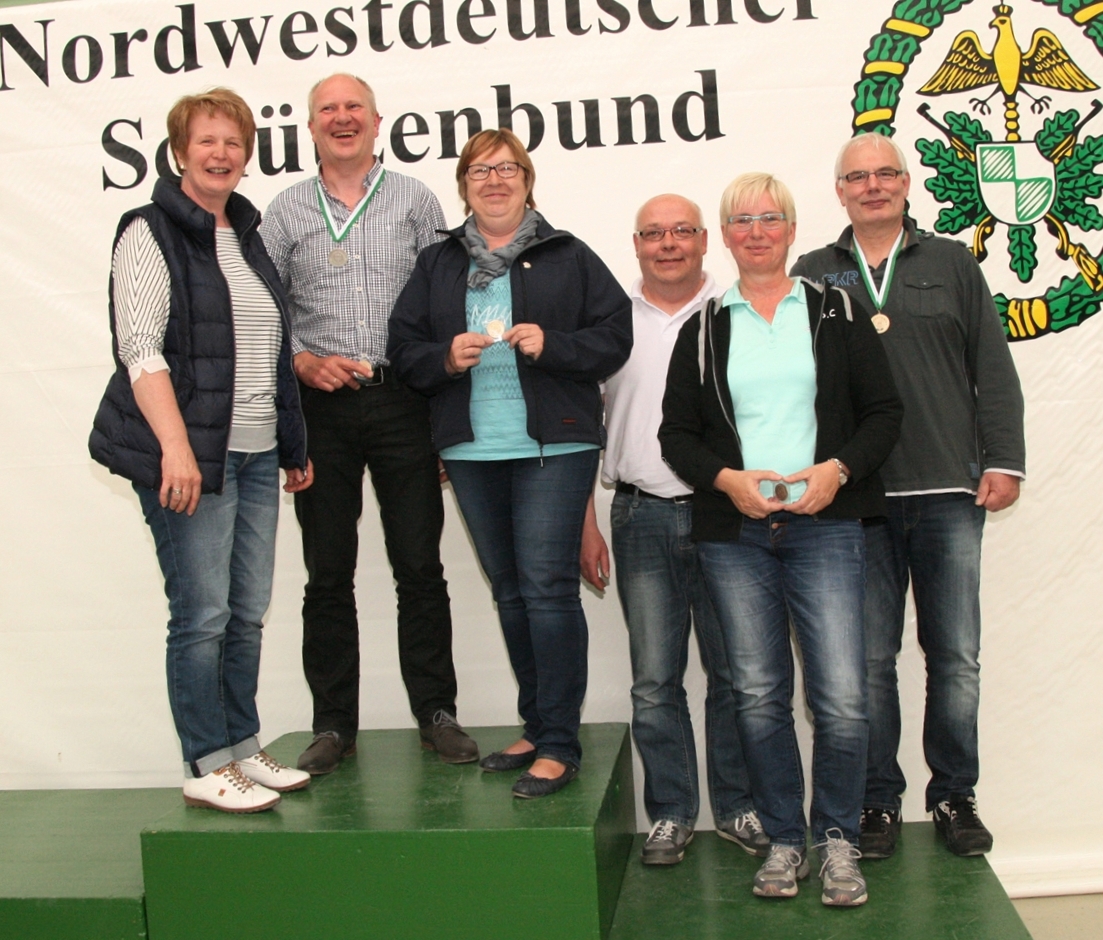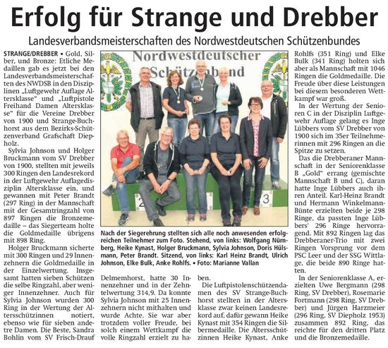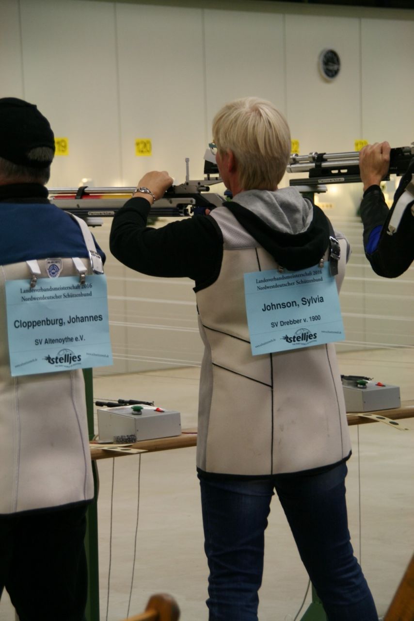 Sylvia Johnson und Holger Bruckmann vom SV Drebber stellen mit jeweils 300 Ringen den Landesrekord in der Luftgewehr Auflagedisziplin Altersklasse ein, und gewinnen mit Peter Brandt (297 R.) in der Mannschaft mit der Gesamtringzahl von 897 Ringen die BRONZEMEDAILLE! (Die Goldmedaille ging mit 898 Ring "weg"...)