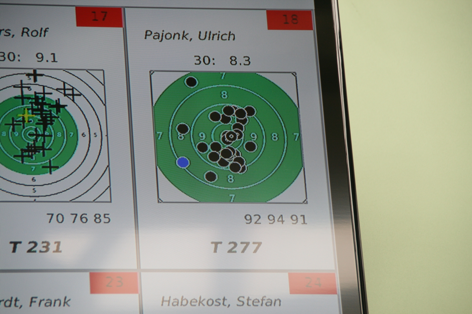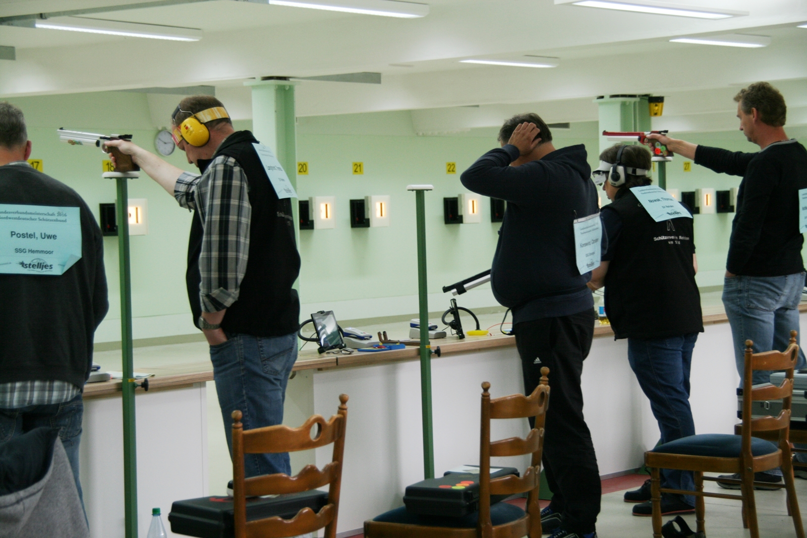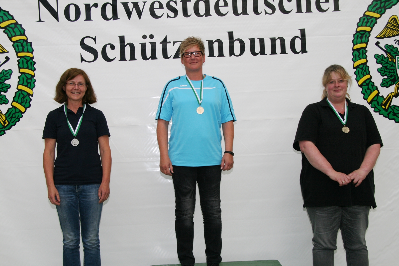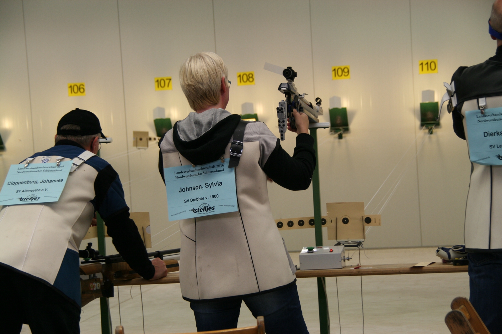 Holger Bruckmann erzielte mit seinen 300 Ringen und 29 Innenzehnern die GOLDMEDAILLE, insgesamt hatten sieben Schützen die gleiche Ringzahl, aber weniger Innenzehner. So viel Glück hatte Sylvia Johnson nicht, sie gehörte zu acht Altersschützinnen mit 300 Ringen. Die Beste, Sandra Bohlin vom SV Frisch-Drauf Delmemhorst, hatte 30 Innenzehner und in der Zehntelwertung 314,9. Da konnte Sylvia mit 25 Innenzehnern nicht mithalten und wurde Achte, sie war aber trotzdem voller Freude, bei solch einem Wettkampf die volle Ringzahl erzielt zu haben.