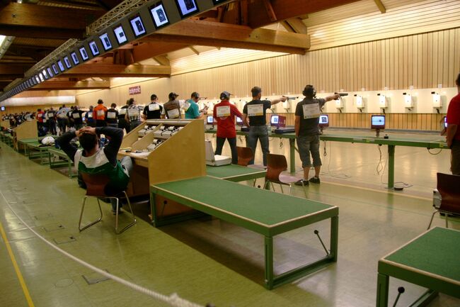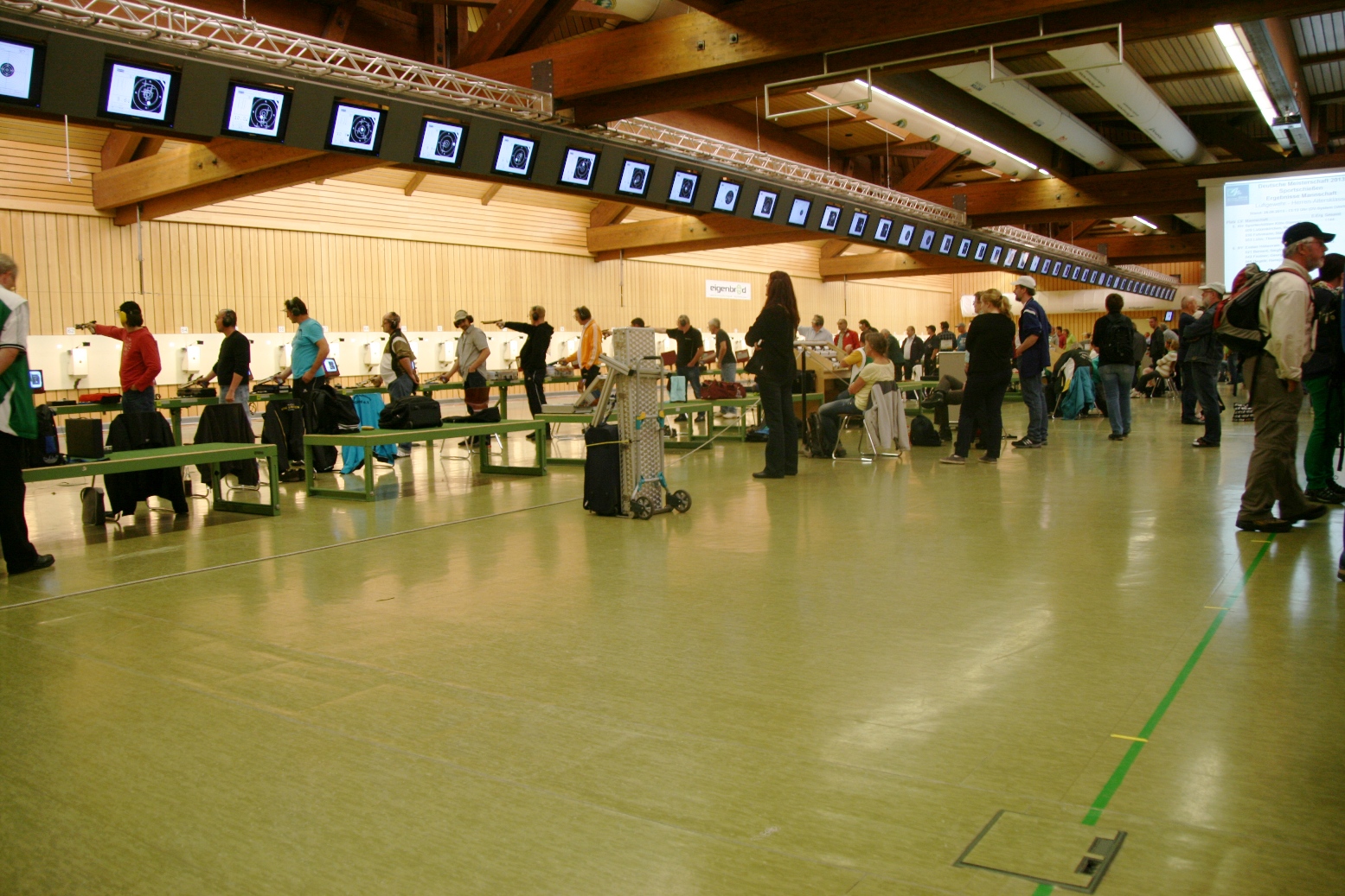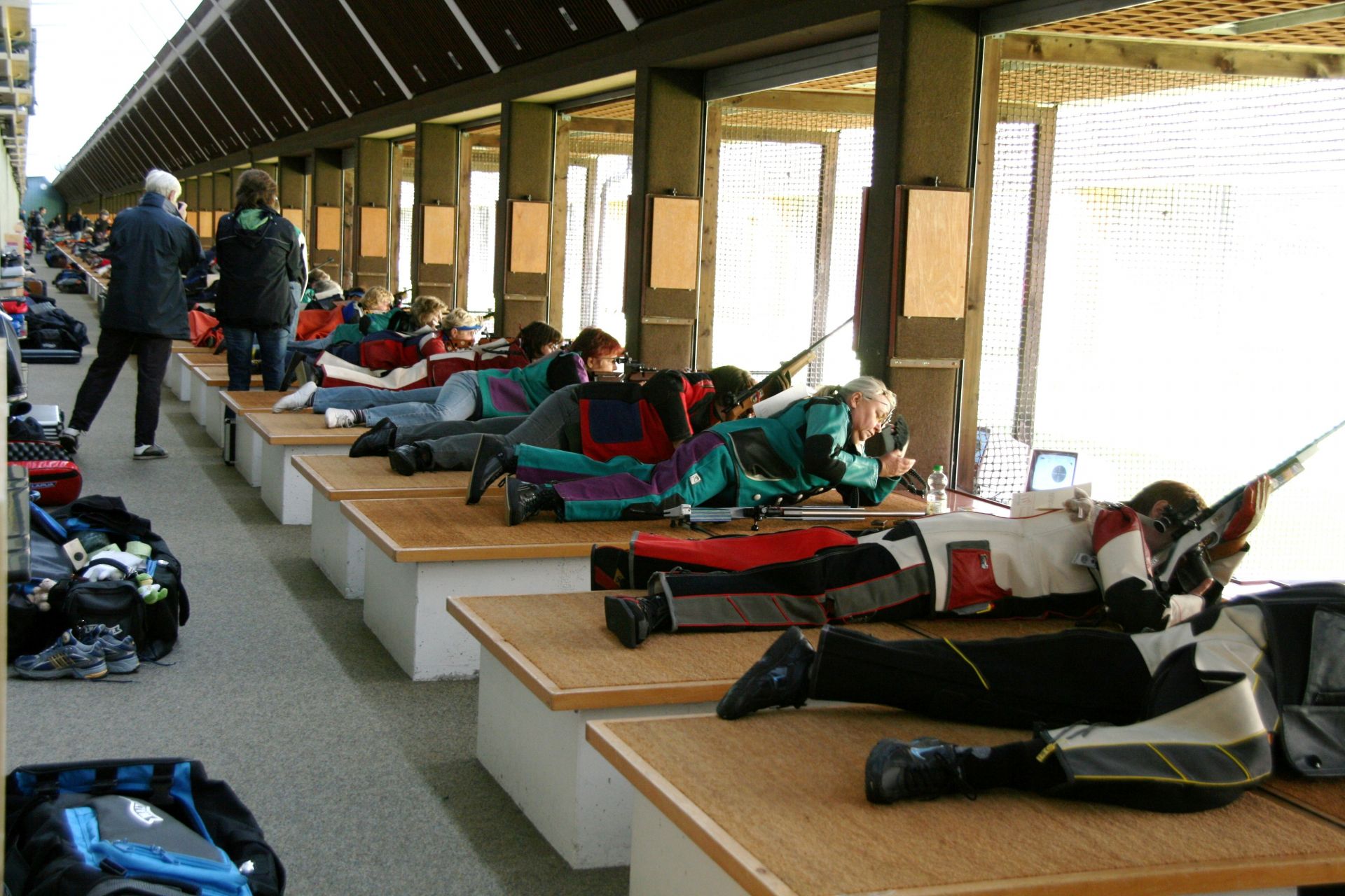 Der Kleinkaliberstand mit 100 elektronischen Ständen in einer Reihe.
