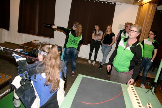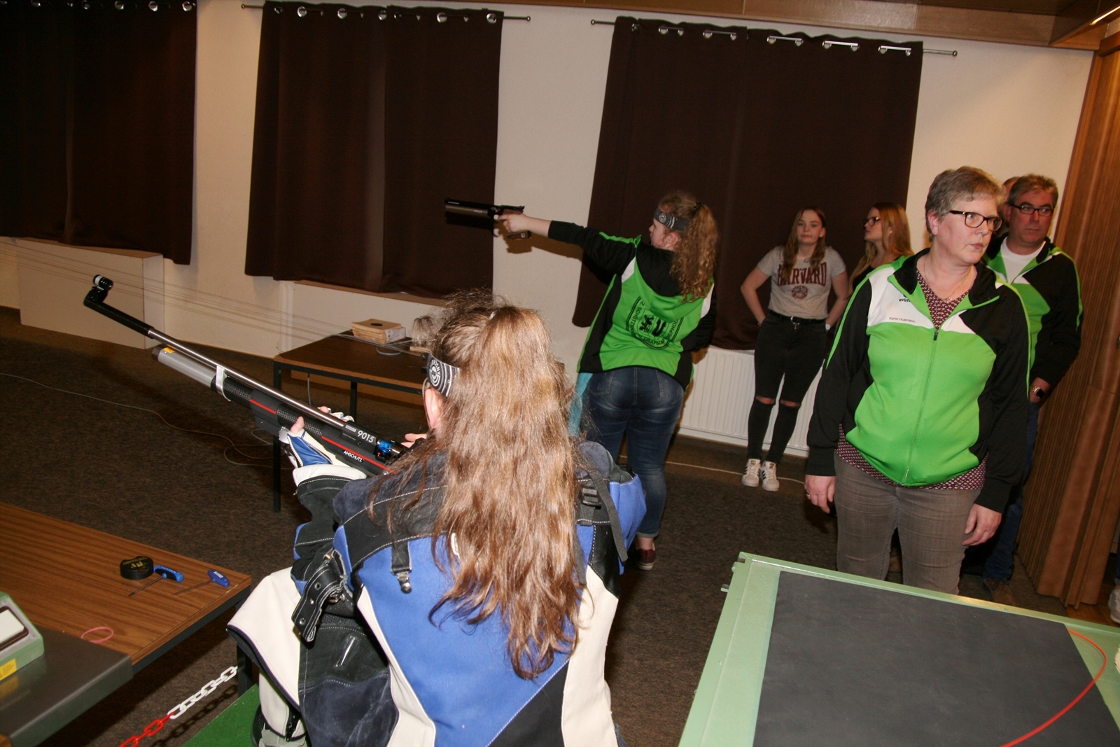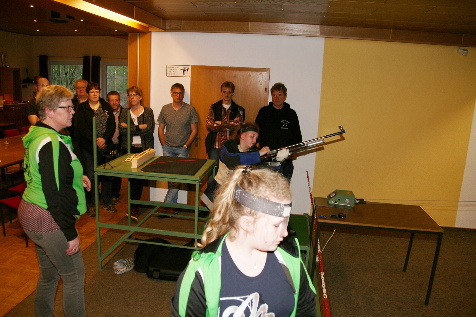 Lena Löhmann zeigte ihr Können beim Luftpistolen Mehrkampf, erst die Schüsse Präzision dann Duell – alle auf Papierscheiben. Die Zeit für die Schüsse regelte sie auf einer Stoppuhr. Auf diese Weise wurde dargestellt, was braucht der Schütze bzw. der Verein an Ausstattung oder auch nicht, was ist vielleicht vorhanden und kann genutzt werden.