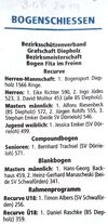 Eike Richter bedankte sich bei allen Teilnehmern für ihren fairen Wettkampf und nach den vorliegenden Ergebnissen, dürften wohl einige das Limit (laut Limitzahlen 2018) zur Landesverbandsmeisterschaft am 30. Juni 2019 in Zeven erreicht haben. Die Mannschaft vom BS Diepholz mit den Schützen Eike Richter, Ingo Jüdes und David Molitor hat mit 1566 Ringen das Vorjahreslimit von 1520 übertroffen. So wünschen wir allen Bogensportlern, welche ihr "Kreuzchen" zur LM-Teilnahme gemacht haben, "Alle ins Gold" !