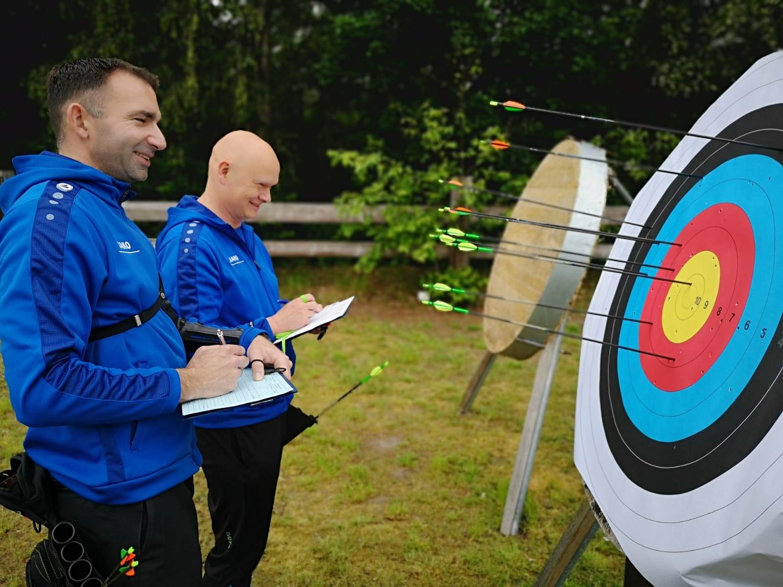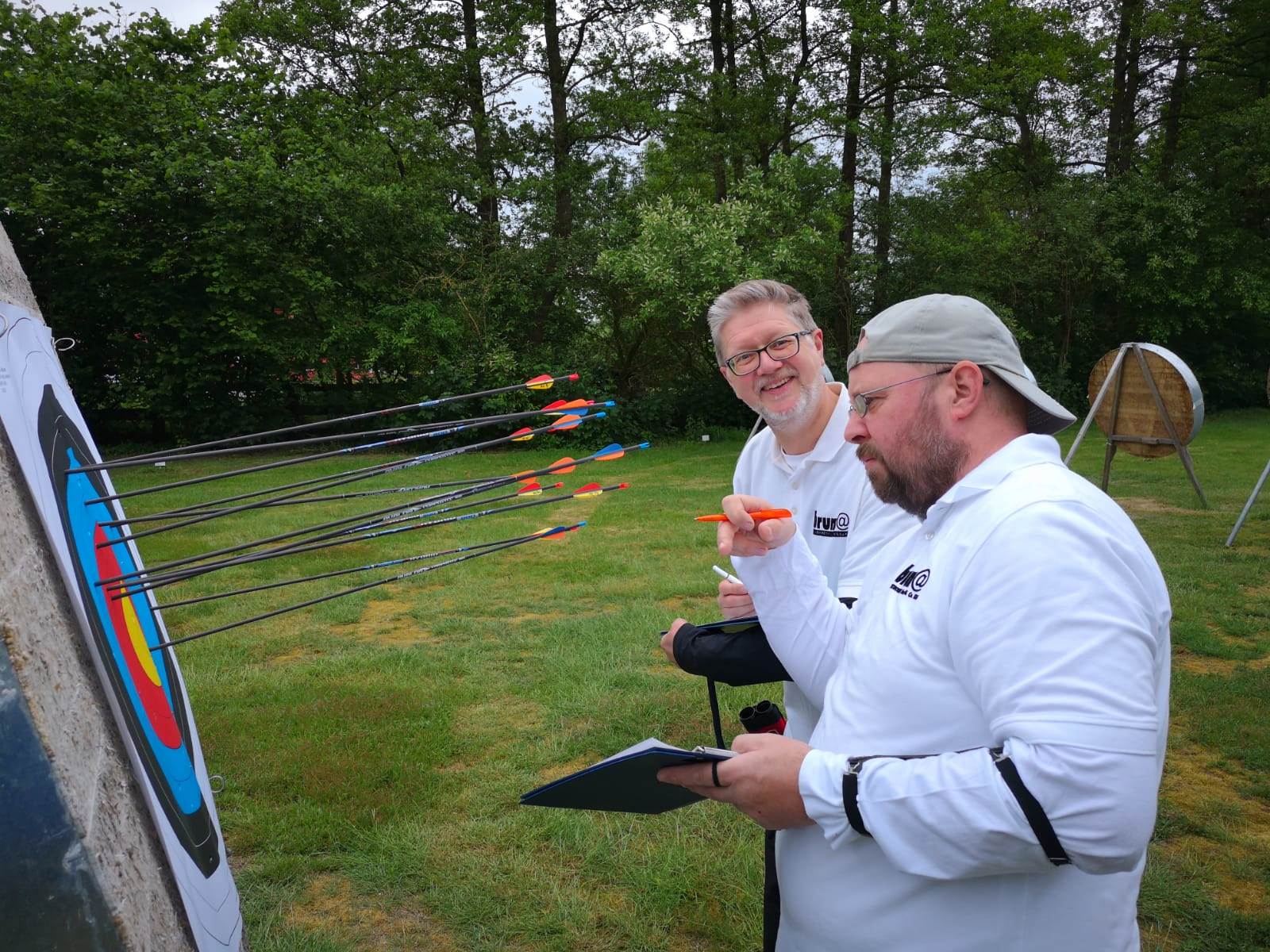 Vor dem Einschießen gab es die Bogen- und Passkontrolle, um 10:00 Uhr begann der Wettkampf. Es wurde mit Recurve-, Compound- und Blankbogen um die Bezirksmeisterschaft gekämpft. Zusätzlich gab es ein Rahmenprogramm für Schützen und Schützinnen, welche einen Einblick in den Wettkampfablauf bekommen möchten. Die Klasseneinteilung hierfür nennt sich "U 18" und "Ü 18". Timon Albers vom SV Schwaförden und Daniel Raschke vom BS Diepholz nahmen dieses Angebot gern an, ihre Ergebnisse können sich durchaus sehen lassen. Alle Bogenschützen schossen in ihren Klassen auf unterschiedlich große Auflagen, je 2 mal 36 Pfeile ab, nach Möglichkeit alle ins Gold. Bezirks-Bogenreferent Eike Richter hatte mit Kampfrichter Andreas Schraubek einen versierten Wettkampfleiter, der ruhig und kompetent die Durchgänge leitete. Auswertung und Siegerehrung wurde dann von Eike Richter und Andreas Schraubek durchgeführt. Natürlich war auch für das leibliche Wohl gesorgt - "Gegrilltes" stand unter anderem auf dem Speiseplan.