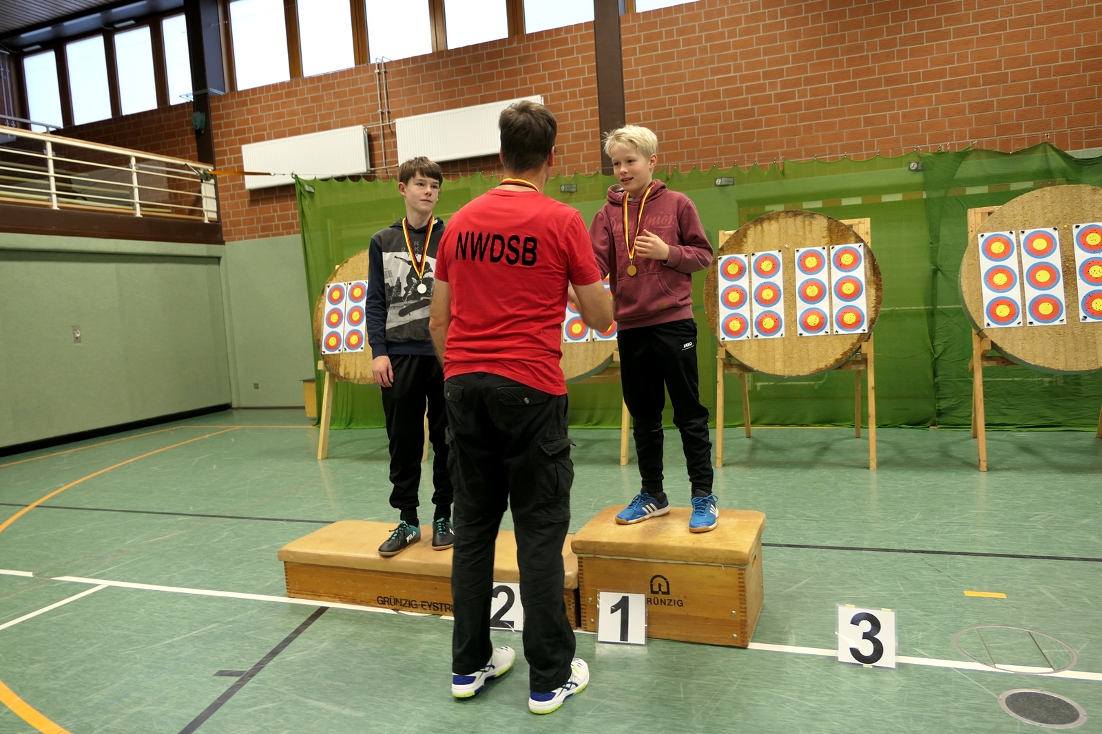 Das Rahmenprogramm U 18 für "Neulinge" wurde auf die gleiche Entfernung geschossen, aber mit einer großen Auflage von 80 cm. Die Siegerehrung übernahmen Andreas Schraubek und Eike Richter. Die Platzierten freuten sich bei der Siegerehrung sehr über ihre Medaillen, welche ihnen Andreas Schraubek für ihre guten Leistungen umhängte.