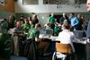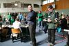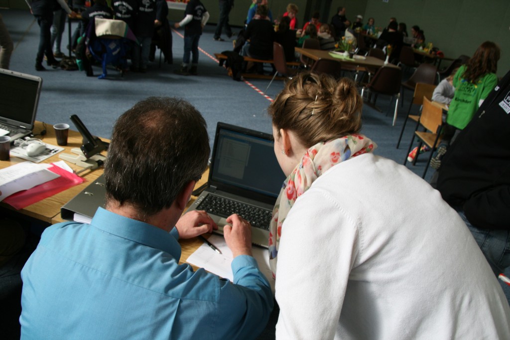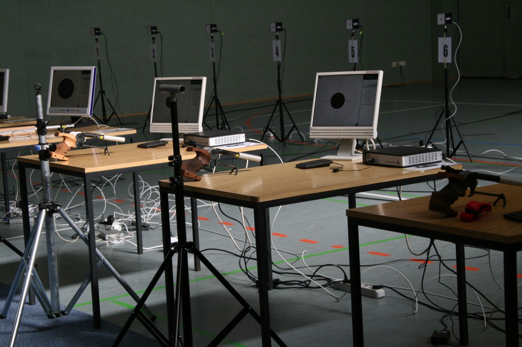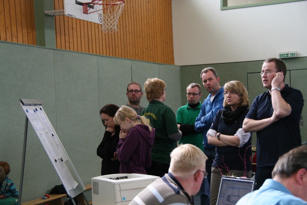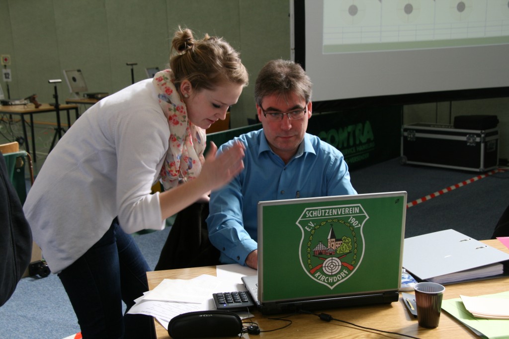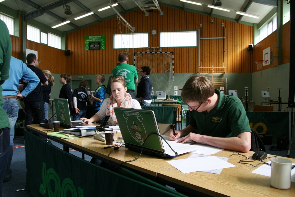Die Turnhalle war der ideale Austragungsort für die diesjährige Bezirksmeisterschaft Lichtpunkt. Nicht nur aus dem Vorstand des KV IV kamen die Helfer, auch aus dem Schützenverein Groß Lessen war alles auf den "Beinen". An den PCs hatte Gerd Harzmeier super Hilfe von Alicia Schur, Nico Harzmeier und Cord Borchers-Rohde. Die Ergebnisse wurden nicht nur auf einer Leinwand übermittelt, sondern wurden nach jedem Durchgang ausgedruckt und an eine "Pinnwand" geheftet, diese war fast immer "umlagert". Da hörte man so manches mal:" Mensch sieh mal, ich bin immer noch "Erster" oder aber, ooch nun bin ich nur noch "Zweiter"!