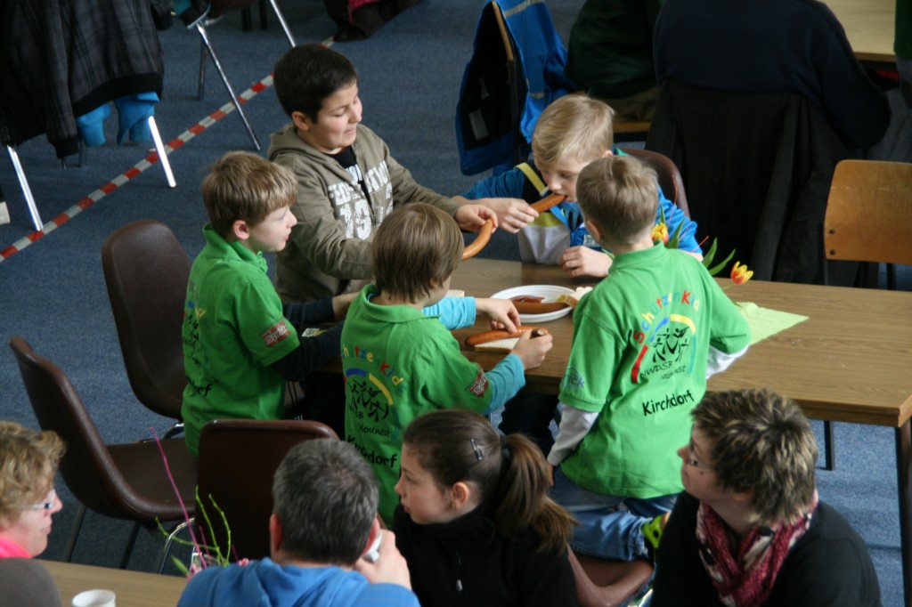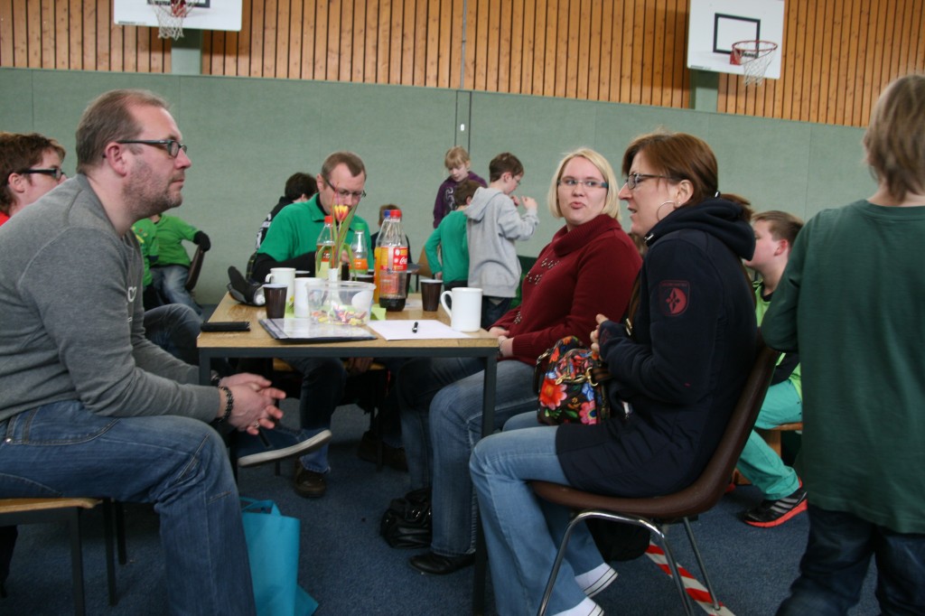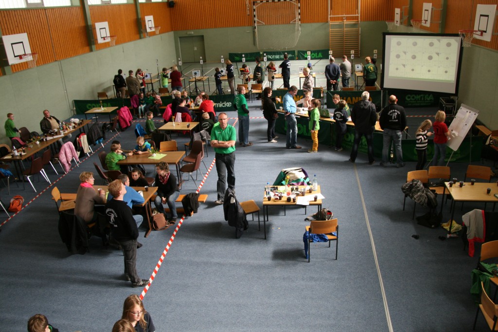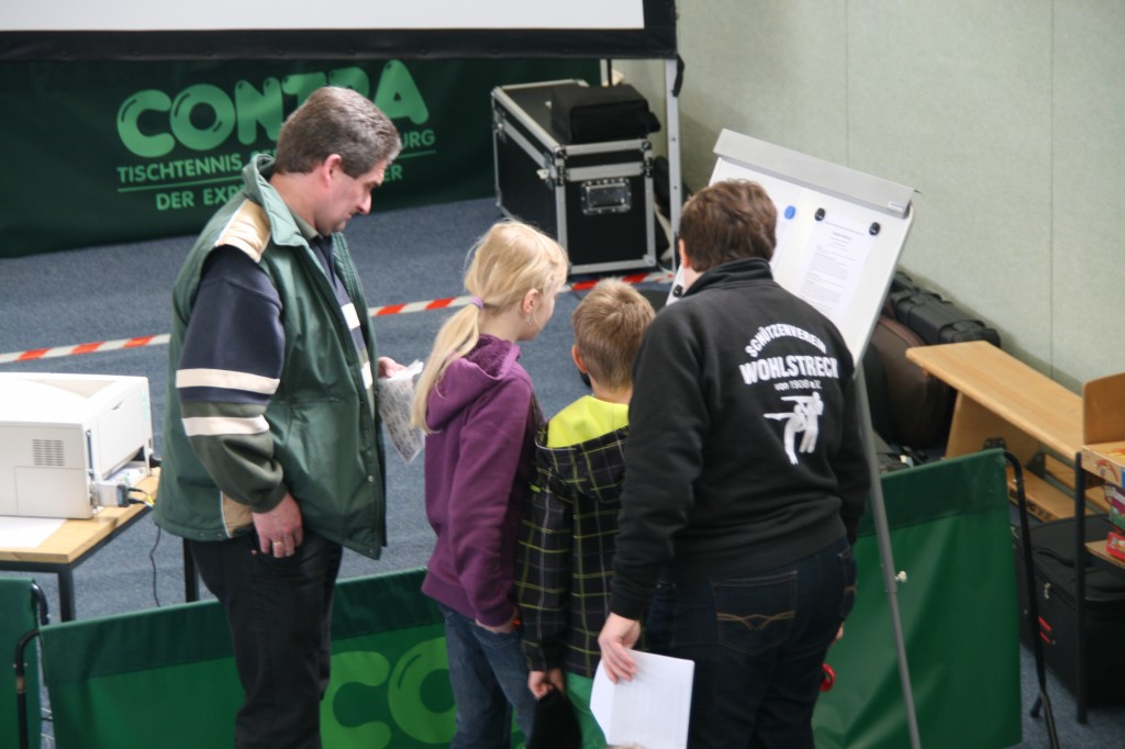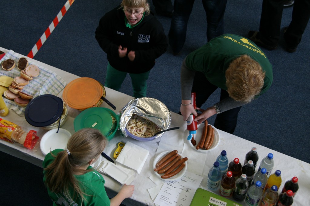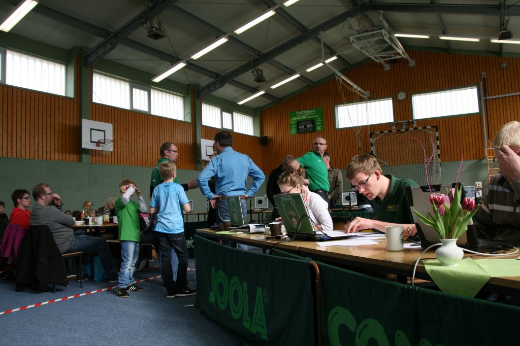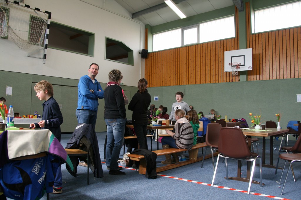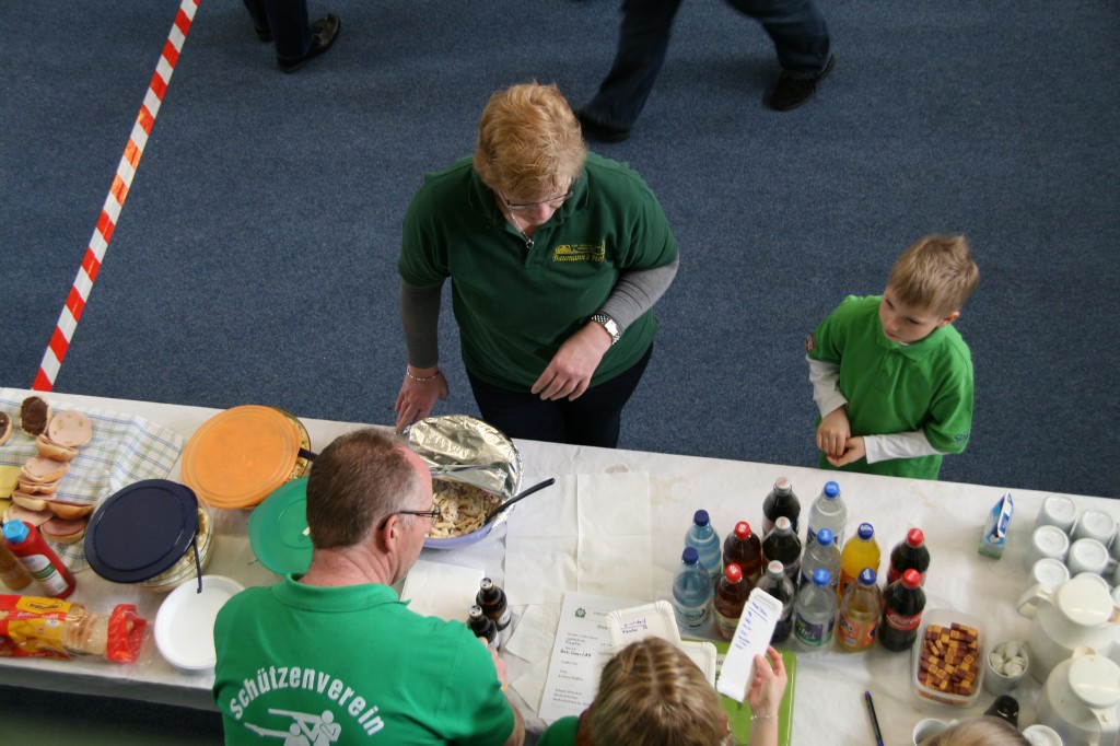 Für die Verpflegung aller Teilnehmer und Betreuer war hier Bestens gesorgt: über Waffeln, Würstchen mit verschiedenen Salaten, Süssigkeiten und Getränken konnten Hunger und Durst nach Wunsch gestillt werden. Verschiedene Brettspiele verkürzten die kurze Wartezeit, es gab ja festgesetzte Startzeiten: die geschlossenen Starts wurden vom stellvertretenden Bezirkssportleiter Gerd Harzmeier präszise angesagt, alles klappte wunderbar.