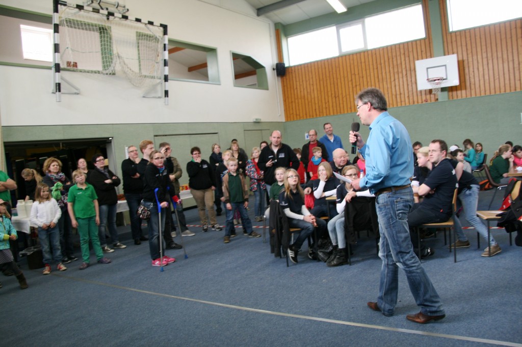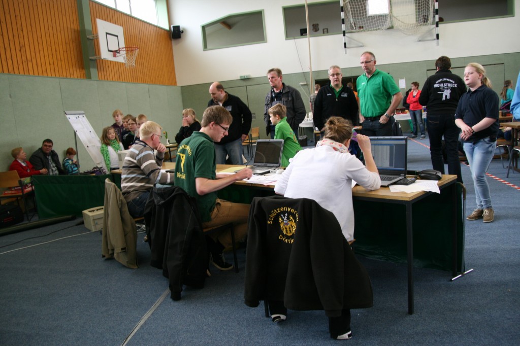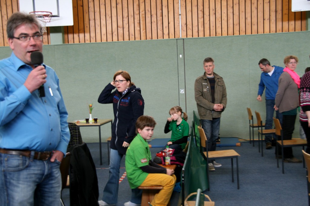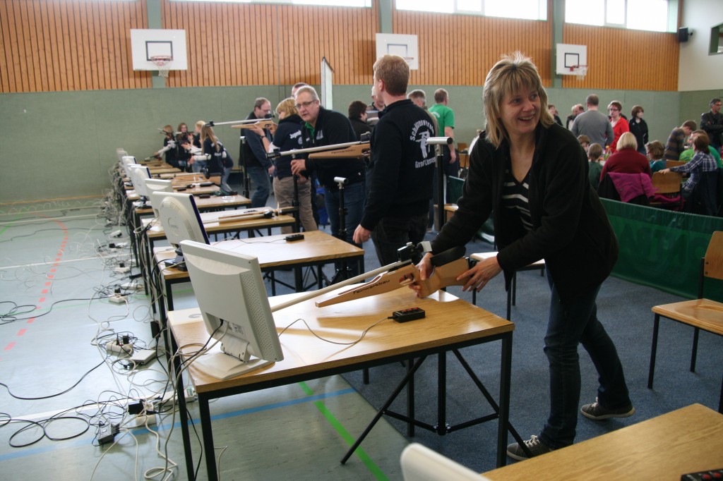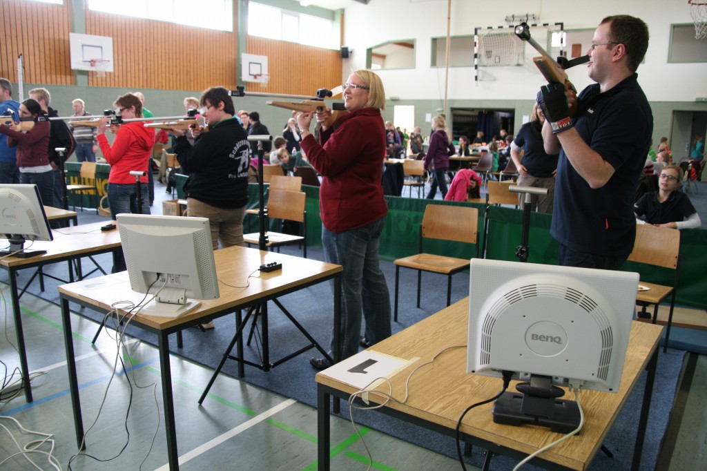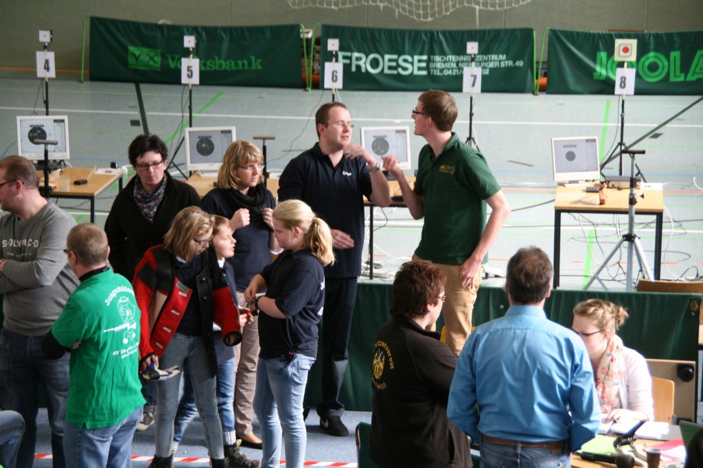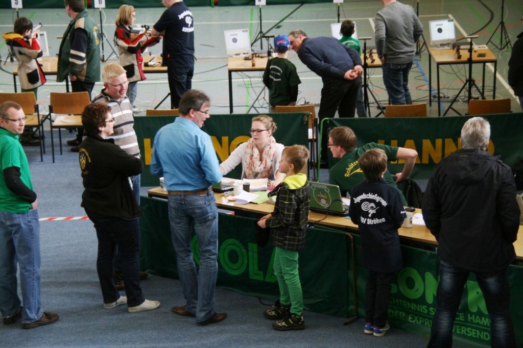 Vor der Siegerehrung bedankte sich Gerd Harzmeier recht herzlich beim gastgebenden Verein Groß Lessen für die tolle Organisation, speziell auch beim Sportverein für die Bereitstellung der Turnhalle. Viele Helfer waren dabei, die Turnhalle in eine "Schießhalle" umzubauen.