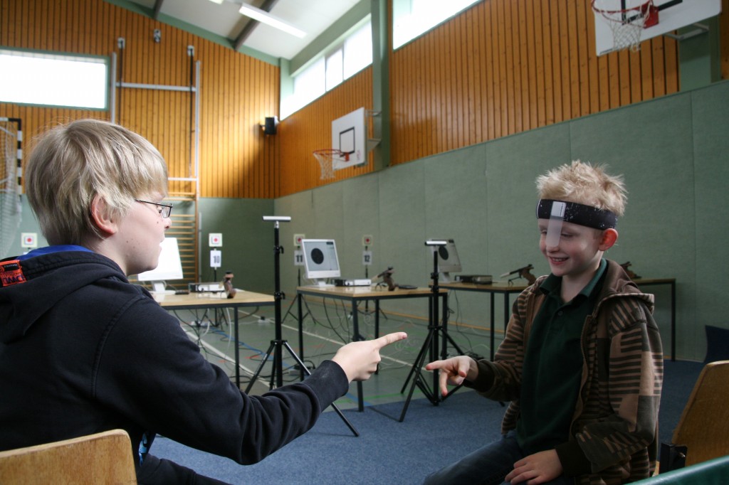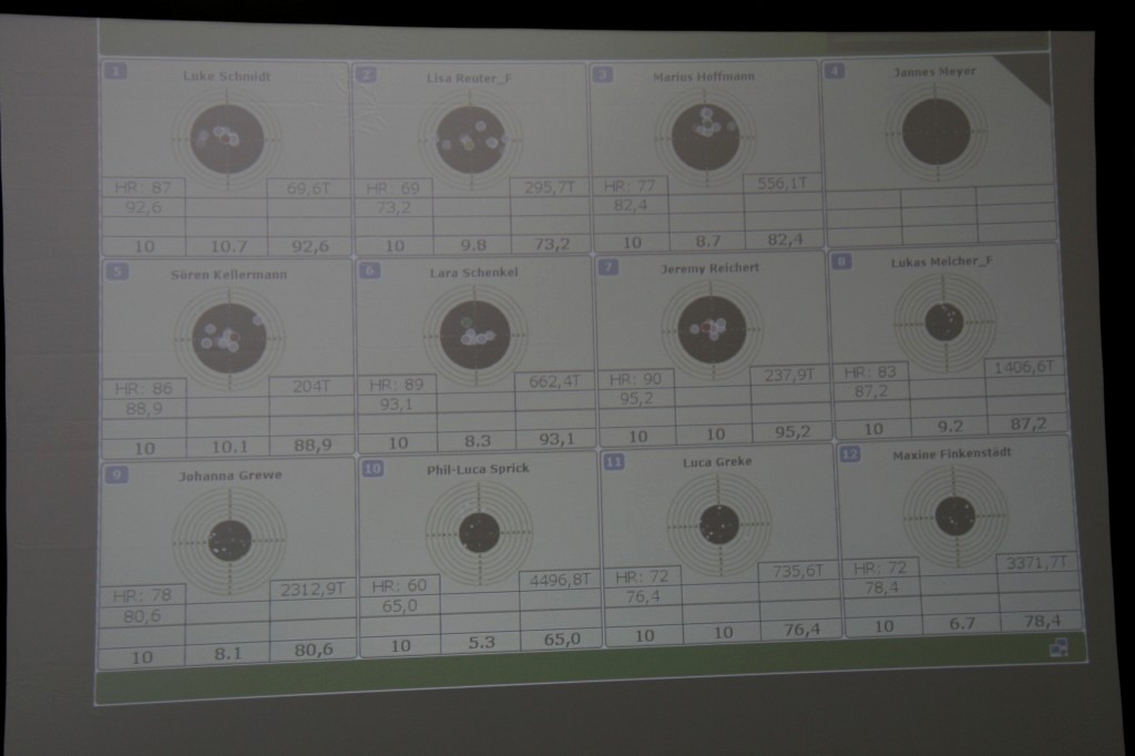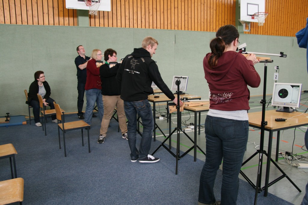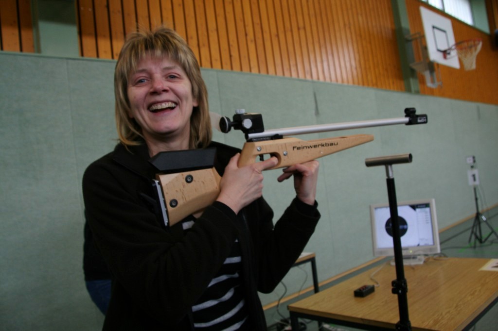 Nach dem letzten Durchgang durften Betreuer und Gäste mit den Sportgeräten, sprich Lichtpunktpistole oder Lichtpunktgewehr, versuchen Freihand oder mit T-Auflage die Ziele zu treffen, einige waren erstaunt, dass es gar nicht so einfach ist die "Zehn" zu treffen.