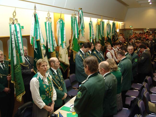 Ehrungen und Berichte bestimmten den Delegiertentag des Bezirksschützenverbandes Grafschaft Diepholz, der im Haus Herrenweide in Diepholz durchgeführt wurde. Vom Spielmannszug des SV Diepholz von 1953 unter der Leitung von Henning Blumenthal musikalisch eingestimmt, wurde der Delegiertentag mit einem Fahneneinmarsch eröffnet. Präsident Karl-Friedrich Scharrelmann freute sich über eine sehr gute Beteiligung, mit den Delegierten und Spielmannszug waren fast 300 Schützen/innen anwesend, und begrüßte besonders stv. Landrat Wilhelm Evers, stv. Bürgermeister Werner Schneider, Bez.-Ehrenpräsident Eberhard Langer, vom NWDSB Vize-Präsident Heinz Rösseler, vom Oldenburger Schützenverband Präsident Jupp Rolfes und vom Fachverband Schießsport Uwe Drecktrah. Zu einem ehrenden Gedenken an die verstorbenen Mitglieder erhob man sich von den Plätzen.