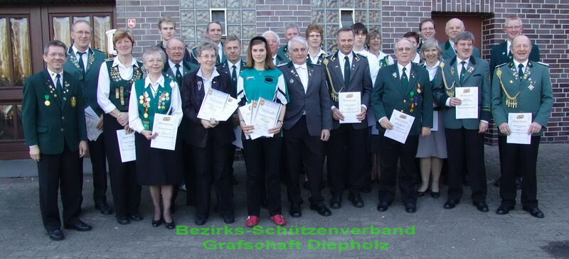 Die Goldene Ehrennadel des Bezirks erhielten: Christian Alscher, Ulrike Engelhardt, Gabriela Lokatis, Jörg Szymansky, Carsten Zeidler, Gerhard Koldewei, (alle Diepholz), Heiner Gräber (Bogensport Diepholz), Helmut Blumberg (Bockstedt), Ulrich Bogdan (Varrel), Klaus Bollhorst, Gabi Bünte (Rehden), Heike Bürger (Ströhen), Irmgard Cascioli, Ulrich Hibbeler (Dörpel), Martin Dießelberg, Petra Dießelberg, Ralf Meyer, Helga Normann, Maike Labbus (alle Blockwinkel), Hartmut Drieling, Manfred Nelson, Heiko Simon, (alle Barenburg) Gerda Borstelmann, Harry Kaiser (Sulingen), Meike Felstehausen (Drebber), Luise Flachmeier, Ralf Müller (Maifeier St. Hülfe-Heede), Heinrich Hustedt (Dörrieloh), Holger Just(Hagewede-Marl), Ulrike Labbus, Jürgen Lober, Dörthe Martens, Heiner v.d. Behrens (alle Brake), Rainer Mittendorf (Ossenbeck), Jörg Motzner (Klein Lessen), Günter Lübker, Monika Vogt (Brockum), Sylia Renner (Mallinghausen), Heiner Schilling, Hartmut Wiehe (Stemshorn), Wilfried Schlüter (Hemsloh), Inge Schomburg (Scharringhausen, Willi Sillmann (Aschen), Regine Tinnemeier (Groß Lessen), Torsten Struck (Kirchdorf), Corinna Witte (Strange-Buchhorst)