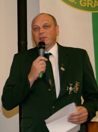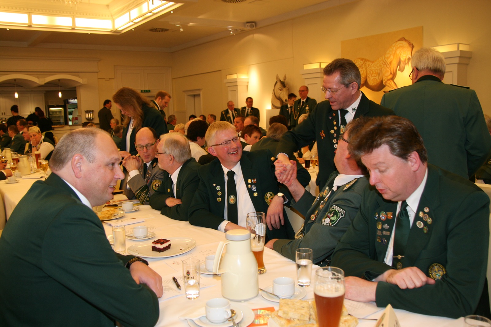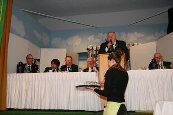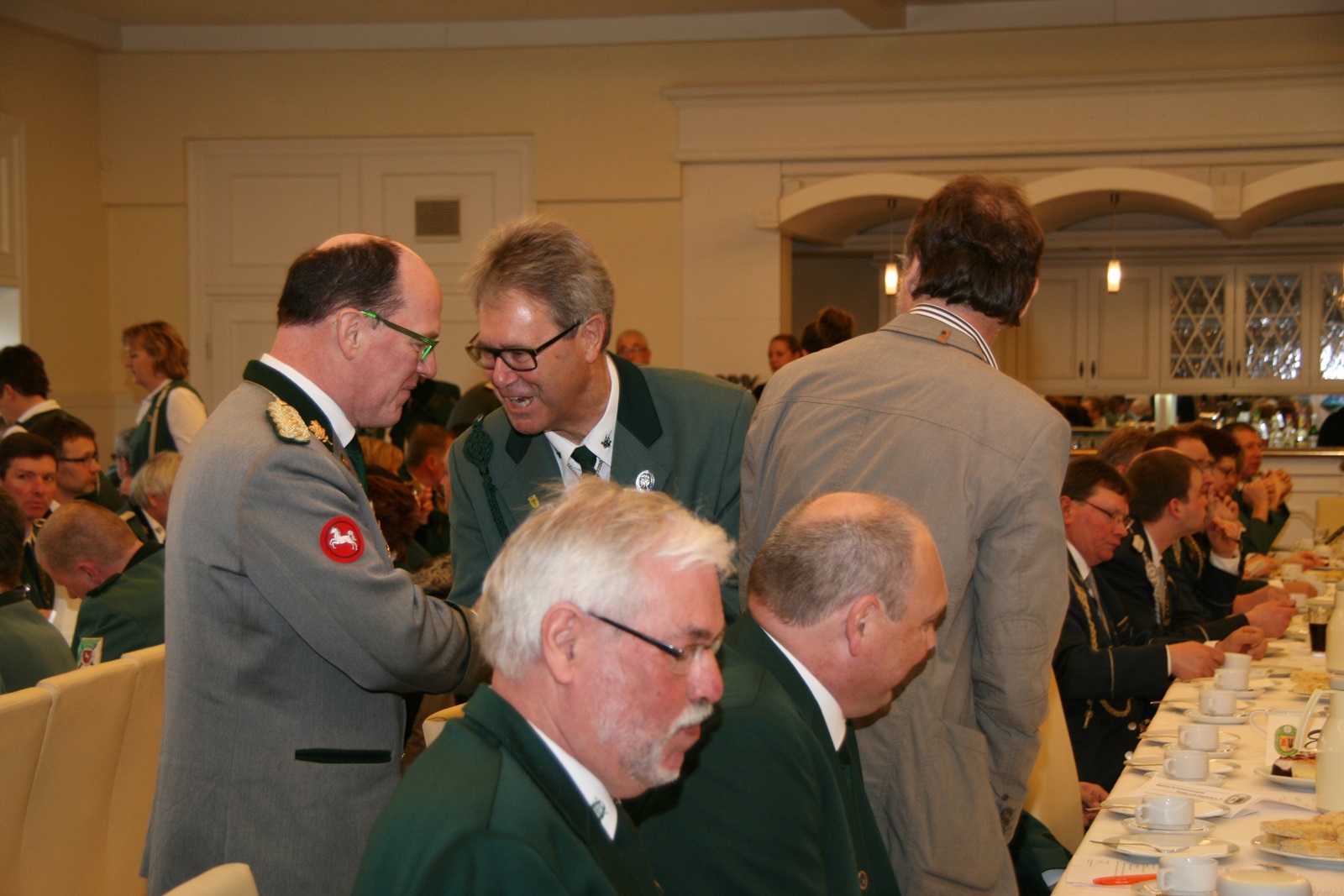 Samtgemeindebürgermeister Hartmut Bloch dankte im Namen der Samtgemeinde Rehden für die Einladung, und es freue ihn, dass der Delegiertentag hier stattfindet. Man spürt es, dass das Schützenwesen hier in der Samtgemeinde einen hohen Stellenwert hat. Es gibt hier ca. 6000 Einwohner und sechs sehr rege Schützenvereine, das spricht schon für sich. Sie sind sehr wichtig für die dörfliche Gemeinschaft und das Gemeinwohl. Dazu gehören nicht nur das sportliche Schießen, sondern natürlich auch die Schützenfeste. In diesem Jahr ist das Kreiskönigstreffen am 11. September in Rehden der Höhepunkt des Schützenwesens. Hartmut Bloch sprach über die Landesschützentage, welche er in „seinem“ Königsjahr besucht habe, er wäre in Aurich und Lüneburg dabei gewesen, in diesem Jahr ist ja Cuxhaven angesagt. Er habe den Kontaktabend und den Landeskönigsball in seiner Gemeinde Rehden noch in sehr guter Erinnerung. Er wünschte abschließend dem Bezirks-Schützenverband all Zeit ein „Gut Schuß“.