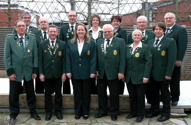 von links: Stellvertretender Geschäftsführer Dietrich Lampe, Stellvertr. Sportleiter Gerd Harzmeier, Ex-Stellvertr. Geschäftsführer Hein Lüesse, Sportleiter Siegfried Brockmann, Schatzmeister Detlef Imsande, Jugendsportleiterin Britta Löhmann, Damensportleiterin Verena Wieling-Schröder, Vizepräsident Günter Herzig, Stellvertr. Jugendsportleiterin Anja Klanke-Luzniack, Pressewartin Marianne Vallan, Vizepräsident Friedel Kelkenberg, Geschäftsführer Thomas Novak, Präsident Karl-Friedrich Scharrelmann