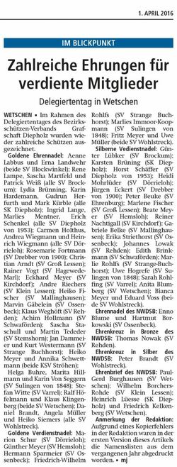 Der gut besuchte Delegiertentag 2016 mit 210 Teilnehmern aus 26 von 27 Mitgliedsvereinen, fand im Saal des Gasthauses Recker in Wetschen statt, im Kreisverband I.
