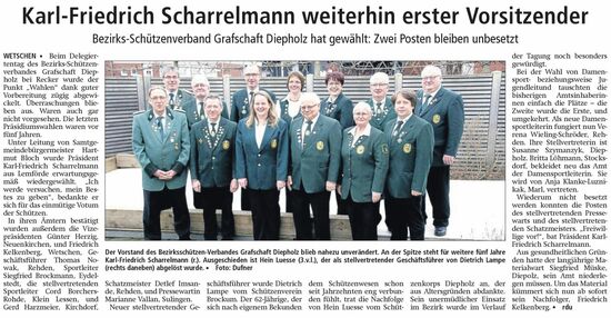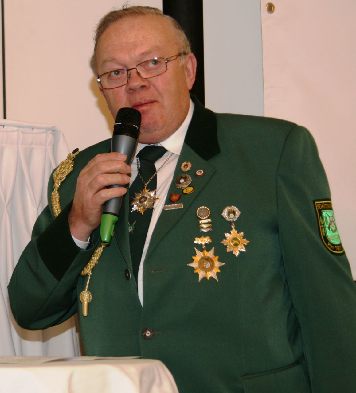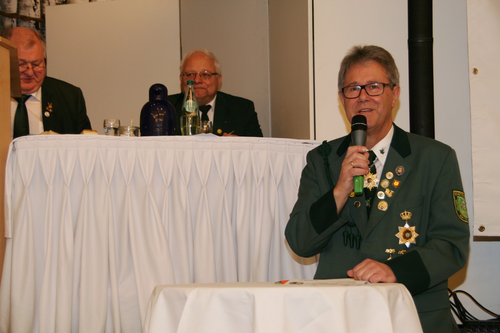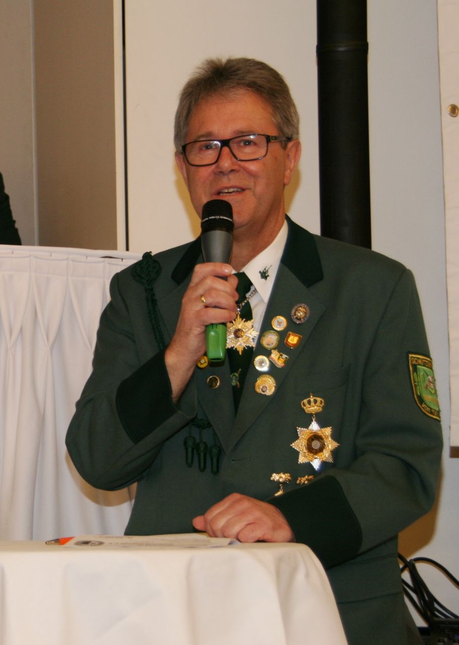 Der Bericht des BZ-Präsidenten Karl-Friedrich Scharrelmann wurde von ihm in etwas kürzerer Form vorgetragen, da ja auch noch turnusmäßig die Wahlen des Präsidiums anstanden. In seinem Jahresbericht schnitt er kurz die Arbeit des Bezirkspräsidiums an und auch die Höhepunkte, er dankte seinem Präsidium, den Fachreferenten und allen Mitstreitern auf Kreis- und Vereinsebene. Sie haben durch ihre Arbeit und Einsatz im Wesentlichen zur Pflege der Schützentradition beigetragen.
