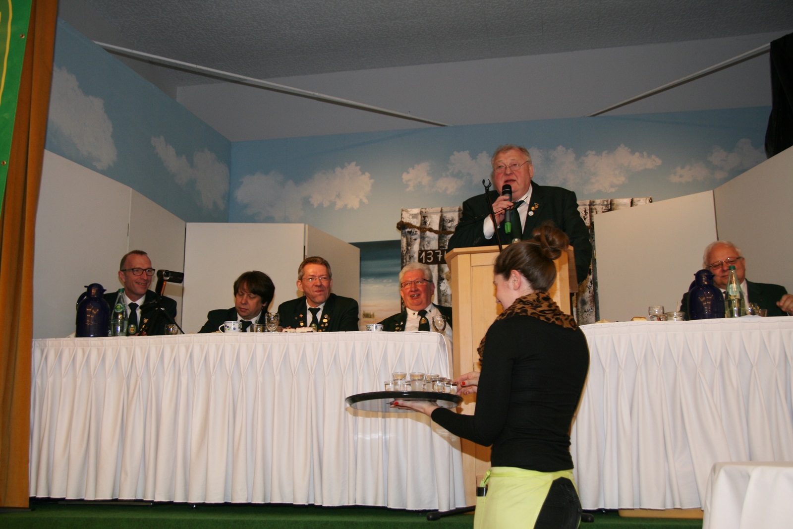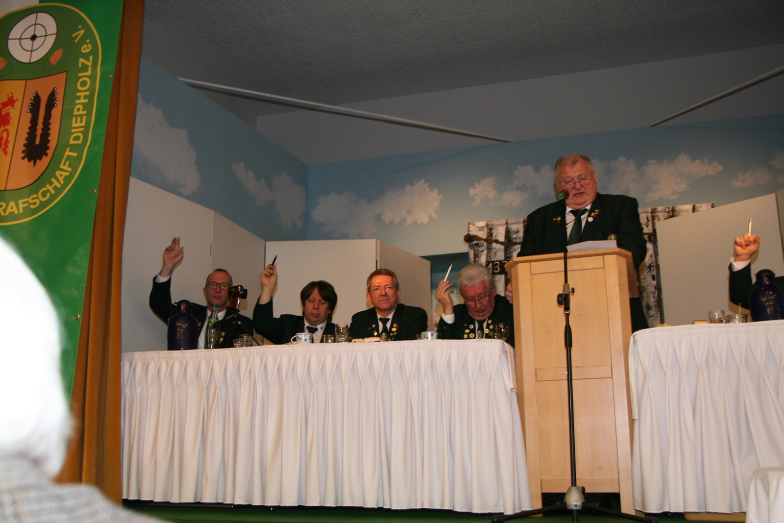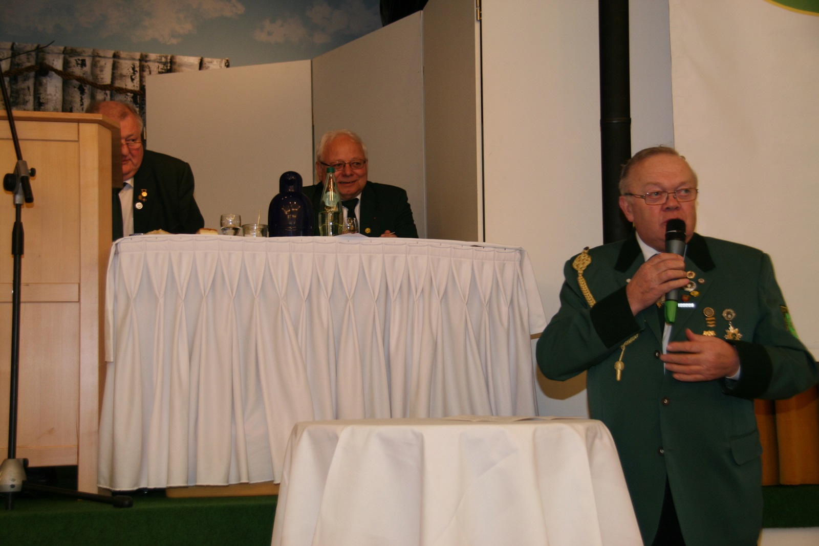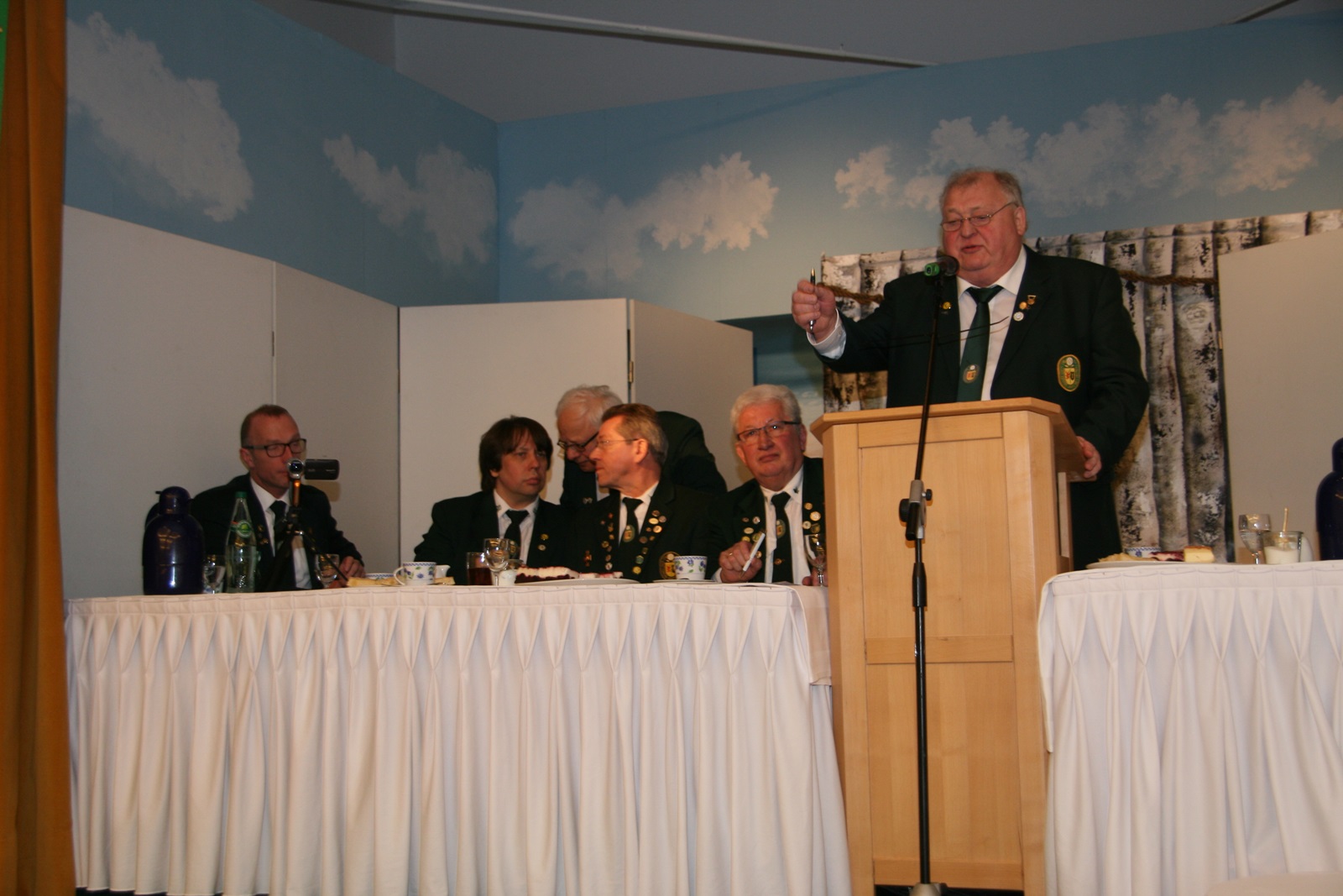 Der Bericht des BZ-Präsidenten Karl-Friedrich Scharrelmann wurde von ihm in etwas kürzerer Form vorgetragen, da ja auch noch turnusmäßig die Wahlen des Präsidiums anstanden. In seinem Jahresbericht schnitt er kurz die Arbeit des Bezirkspräsidiums an und auch die Höhepunkte, er dankte seinem Präsidium, den Fachreferenten und allen Mitstreitern auf Kreis- und Vereinsebene. Sie haben durch ihre Arbeit und Einsatz im Wesentlichen zur Pflege der Schützentradition beigetragen.
