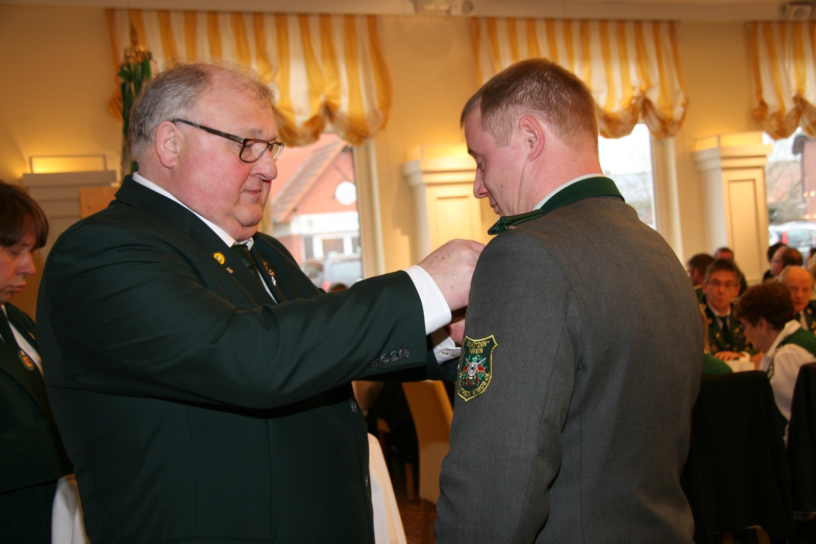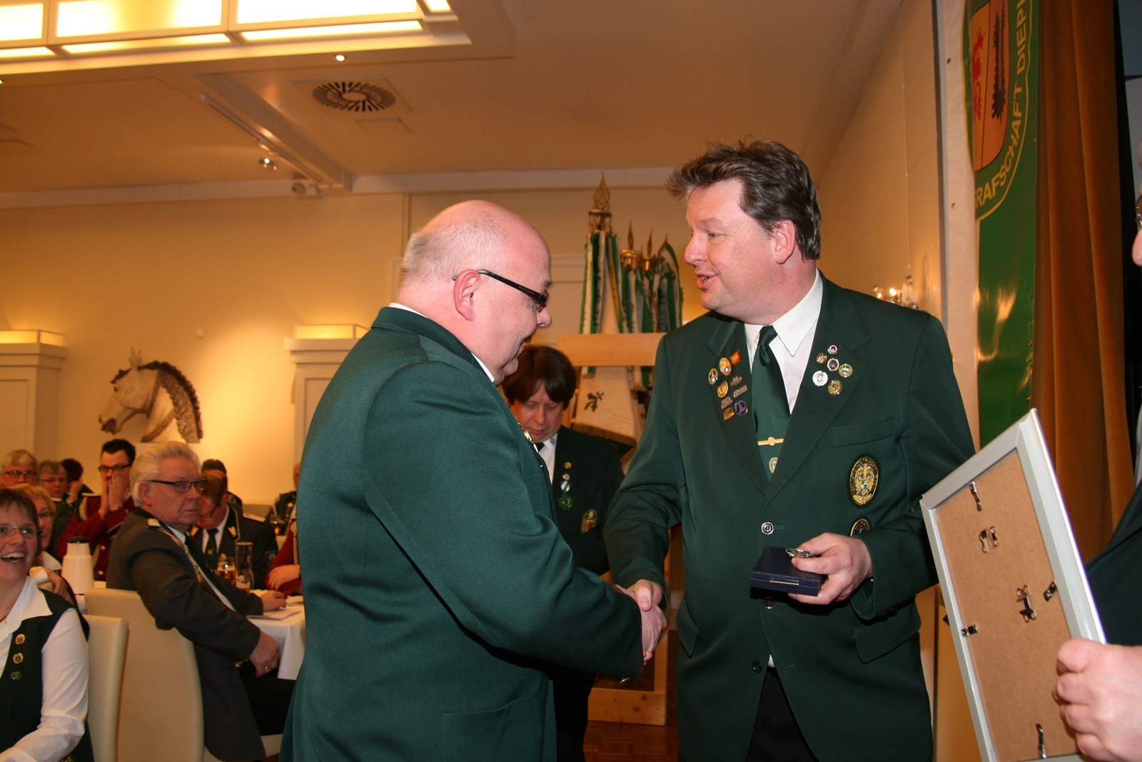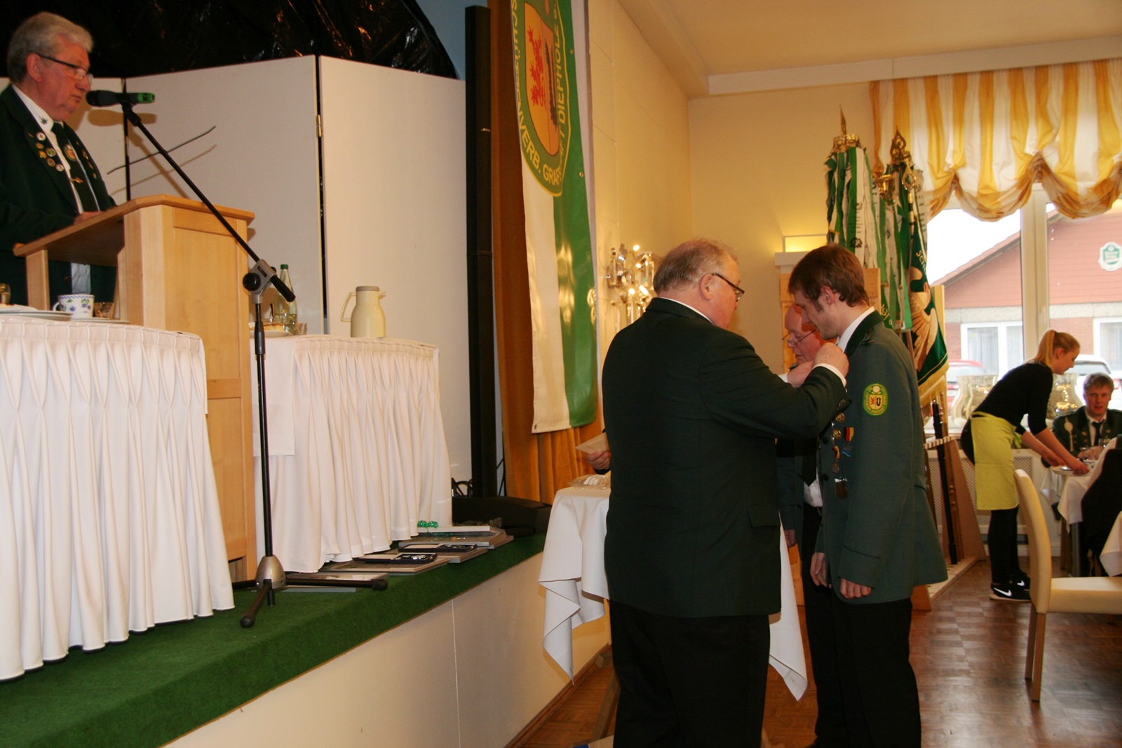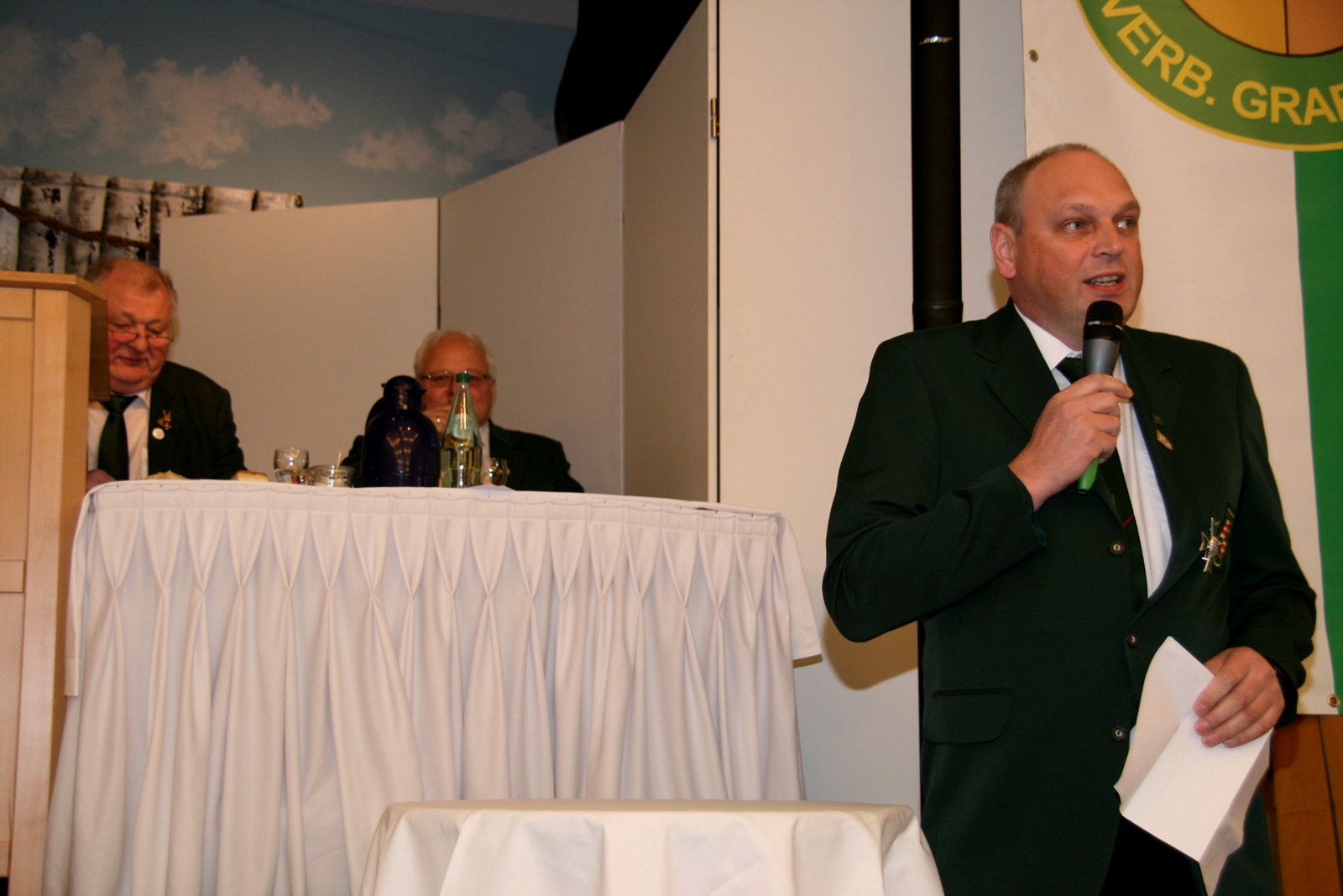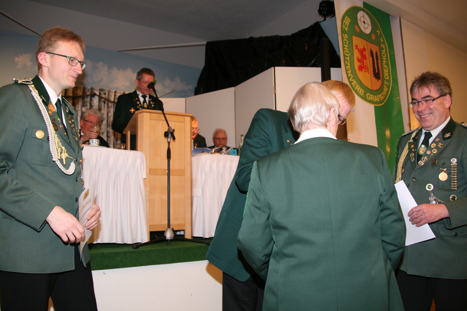 Stefan von Aschwege, überbrachte die besten Grüße nicht nur als Vizepräsident vom Oldenburger Schützenbund, sondern auch die Grüße aller Nachbarbezirke. Solche Delegiertentage nehme man gern zum Anlaß die nachbarschaftliche Unterstützung zu bekunden, denn gemeinsam sind wir stark. Bei der Regionalkonferenz Ende Mai im LLZ Bassum sollen unter anderen Themen, auch die Schießstandabnahmen besprochen werden. Zum Teil beurteilen Behörden Schießstände immer noch unterschiedlich, obwohl es ja Verordnungen gibt. Mitgliederwerbung wird auch ein Thema bei der Konferenz sein. Es ist gut, dass wir die Traditionsschützen haben, ohne sie gäbe es auch kein Weltkulturerbe. Weiter führte er aus, dass es wichtig ist, gemeinsame Ziele zu erklären und weiterzuverfolgen. Freuen wir uns auf eine gute Zusammenarbeit, er wünschte eine gute Versammlung mit weisen Beschlüssen.