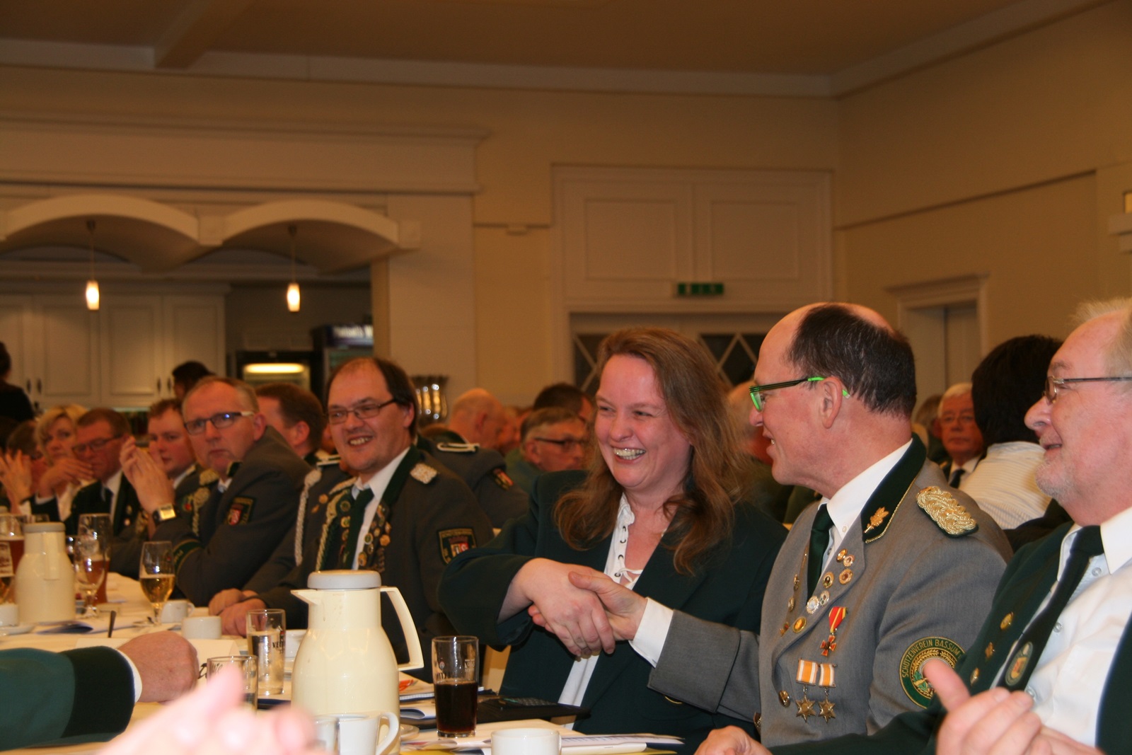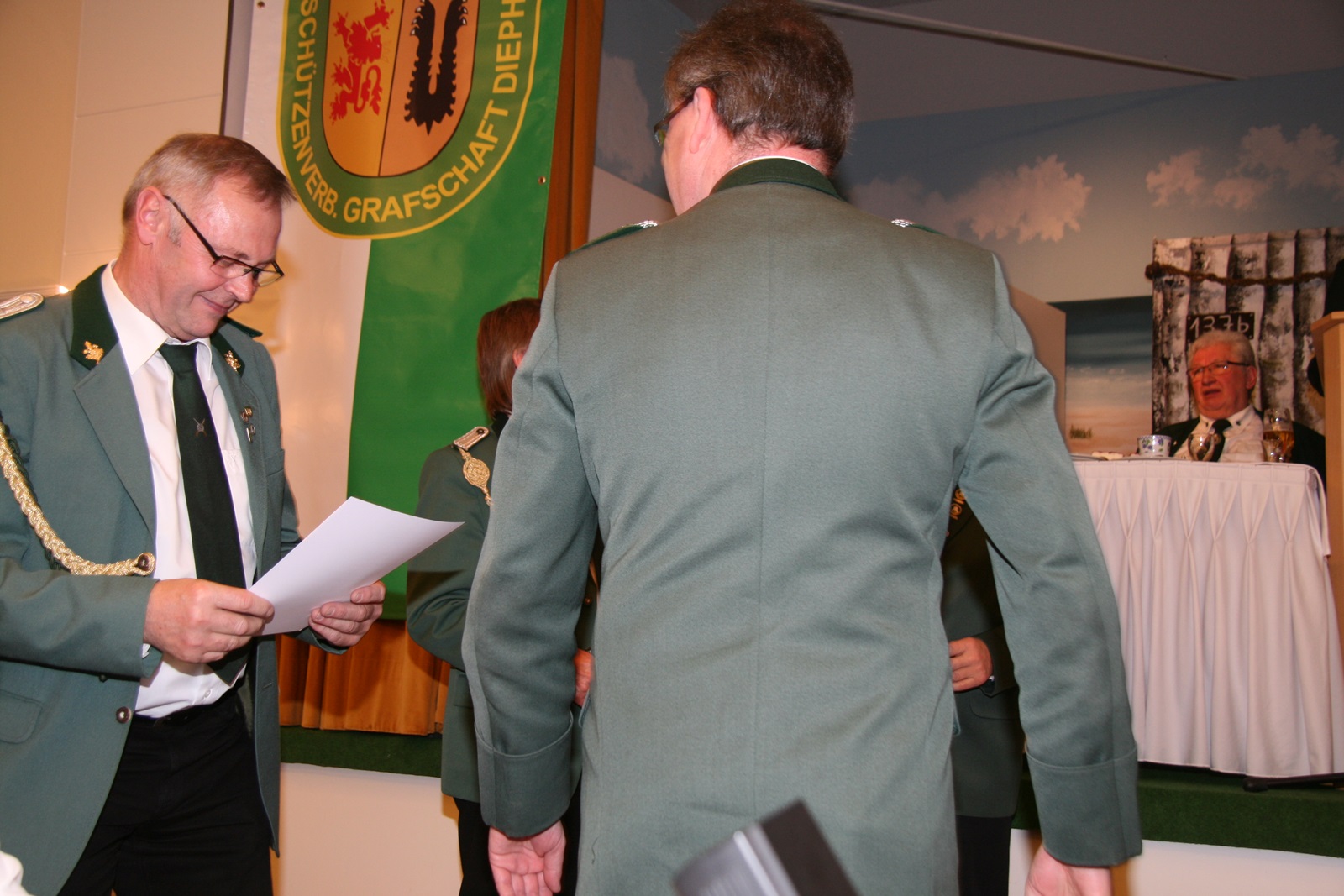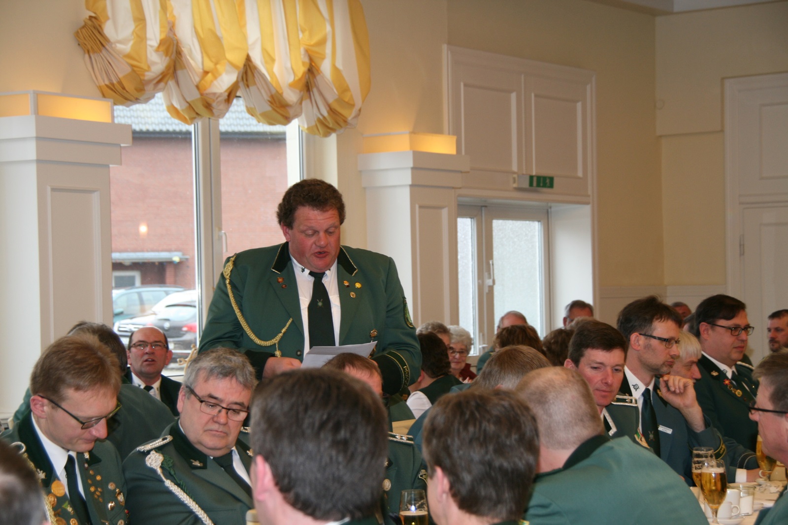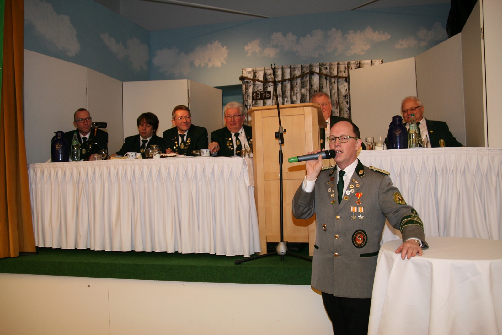 Den Reigen der Grußworte eröffnete Ulf Schmidt. Er überbrachte die Grüße des Landkreises in Vertretung von Landrat Bockhop. Die Schützenvereine im Landkreis Diepholz würden wichtige Aktivitäten im Sinne der Dorfgemeinschaft übernehmen und sind damit Garanten lebendiger Tradition. Ihnen gelingt es hervorragend die Geselligkeit auf der einen Seite, den Wettkampf und den Sport auf der anderen Seite zu verbinden. Nicht zu vergessen sei der Beitrag der Schützenvereine in der Jugendarbeit, die gerade in der heutigen Zeit sehr wichtig ist. Er möchte sich im Namen des Landkreises Diepholz, insbesondere für diese Arbeit ganz herzlich bedanken, das Ehrenamt sei noch nie so wichtig gewesen wie heute. Er machte darauf aufmerksam, dass das Schützenwesen in Deutschland im Dezember 2015 in das Bundesweite Verzeichnis des immateriellen Kulturerbes aufgenommen wurde.