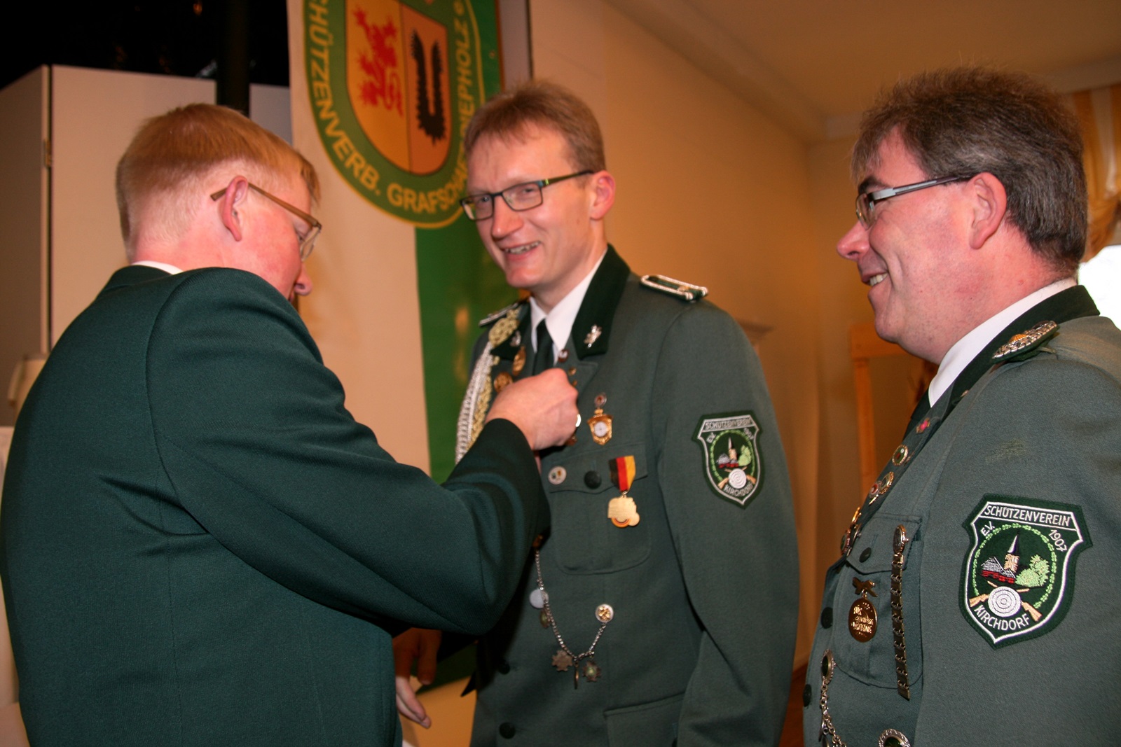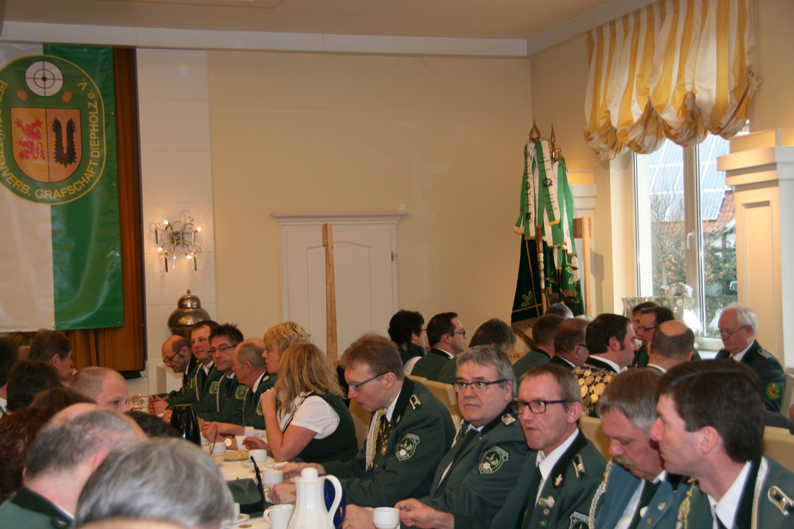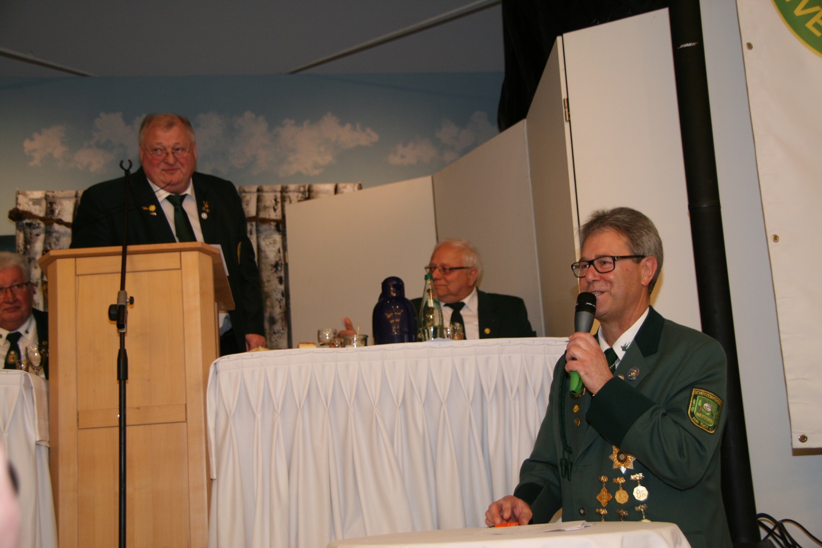 Den Reigen der Grußworte eröffnete Ulf Schmidt. Er überbrachte die Grüße des Landkreises in Vertretung von Landrat Bockhop. Die Schützenvereine im Landkreis Diepholz würden wichtige Aktivitäten im Sinne der Dorfgemeinschaft übernehmen und sind damit Garanten lebendiger Tradition. Ihnen gelingt es hervorragend die Geselligkeit auf der einen Seite, den Wettkampf und den Sport auf der anderen Seite zu verbinden. Nicht zu vergessen sei der Beitrag der Schützenvereine in der Jugendarbeit, die gerade in der heutigen Zeit sehr wichtig ist. Er möchte sich im Namen des Landkreises Diepholz, insbesondere für diese Arbeit ganz herzlich bedanken, das Ehrenamt sei noch nie so wichtig gewesen wie heute. Er machte darauf aufmerksam, dass das Schützenwesen in Deutschland im Dezember 2015 in das Bundesweite Verzeichnis des immateriellen Kulturerbes aufgenommen wurde.