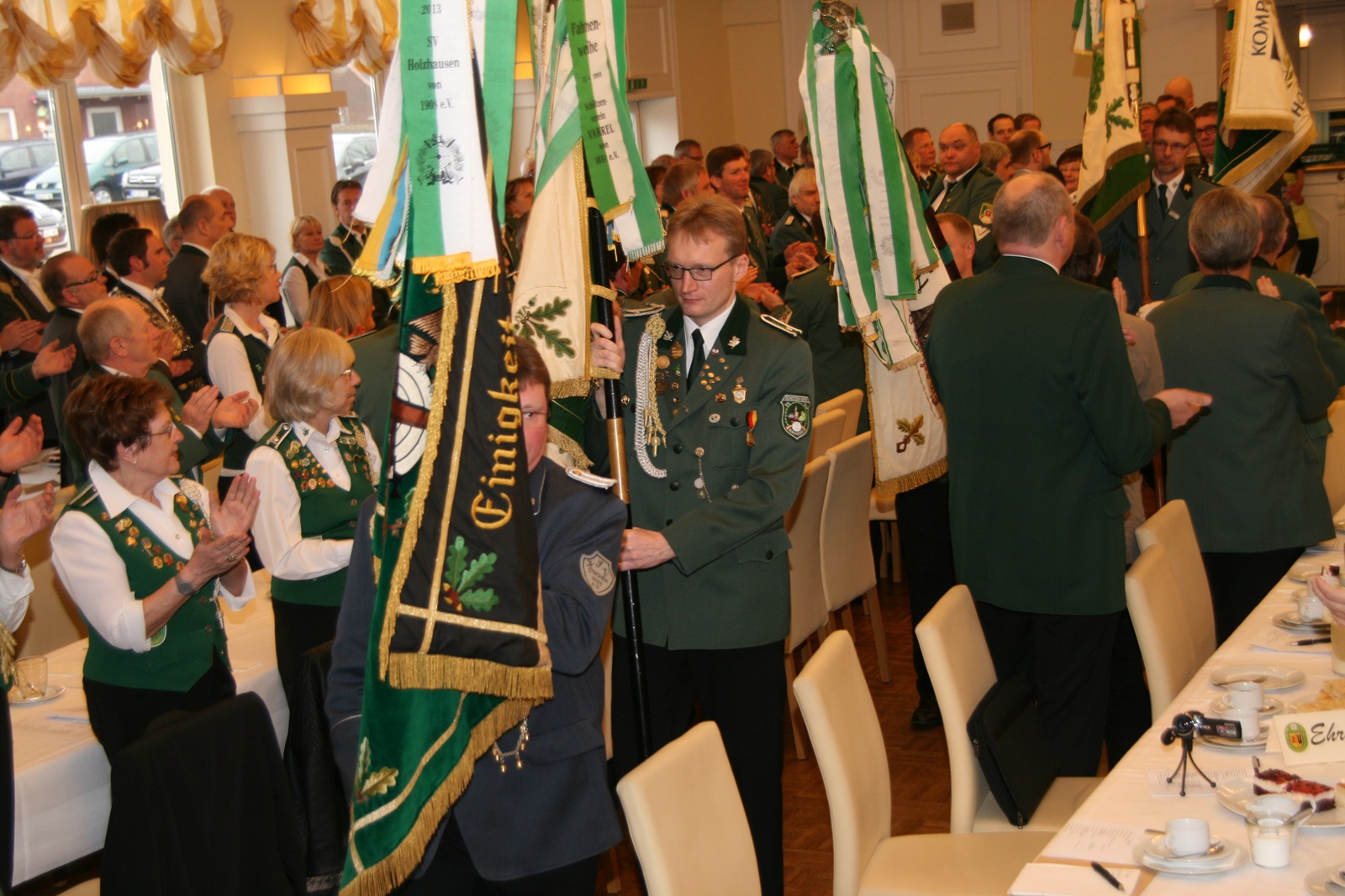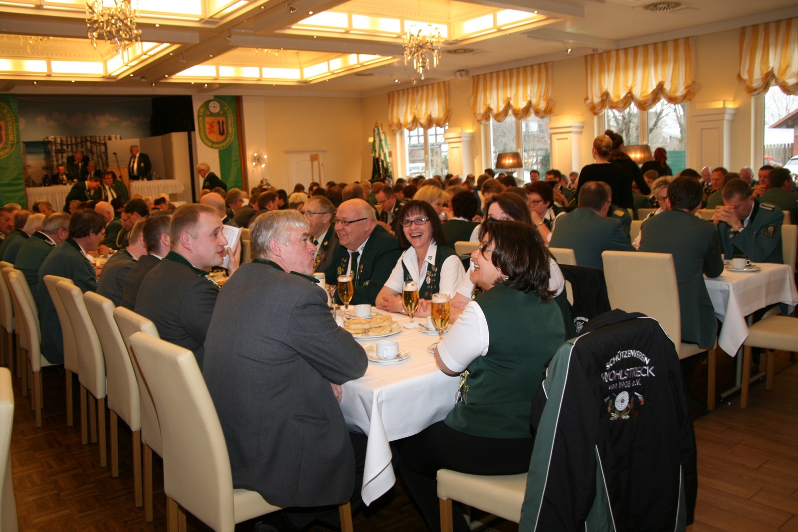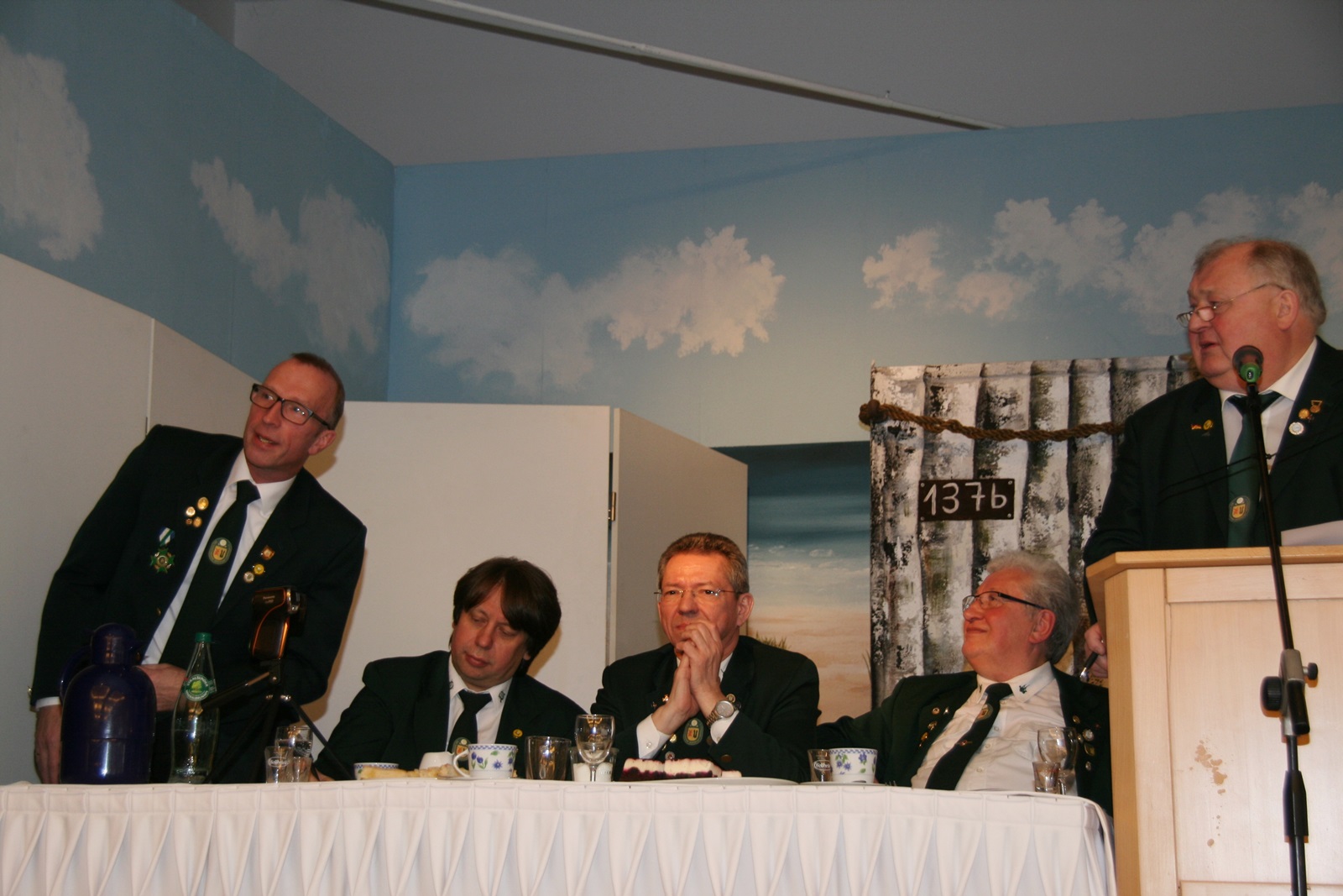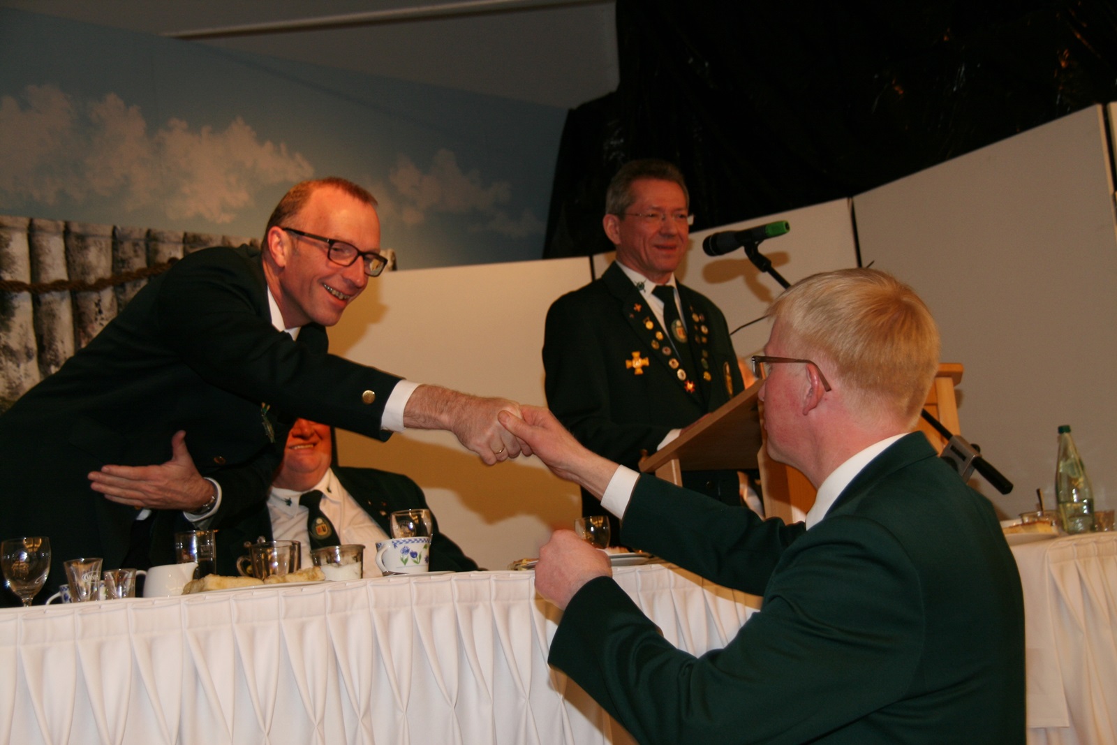 Den Reigen der Grußworte eröffnete Ulf Schmidt. Er überbrachte die Grüße des Landkreises in Vertretung von Landrat Bockhop. Die Schützenvereine im Landkreis Diepholz würden wichtige Aktivitäten im Sinne der Dorfgemeinschaft übernehmen und sind damit Garanten lebendiger Tradition. Ihnen gelingt es hervorragend die Geselligkeit auf der einen Seite, den Wettkampf und den Sport auf der anderen Seite zu verbinden. Nicht zu vergessen sei der Beitrag der Schützenvereine in der Jugendarbeit, die gerade in der heutigen Zeit sehr wichtig ist. Er möchte sich im Namen des Landkreises Diepholz, insbesondere für diese Arbeit ganz herzlich bedanken, das Ehrenamt sei noch nie so wichtig gewesen wie heute. Er machte darauf aufmerksam, dass das Schützenwesen in Deutschland im Dezember 2015 in das Bundesweite Verzeichnis des immateriellen Kulturerbes aufgenommen wurde.